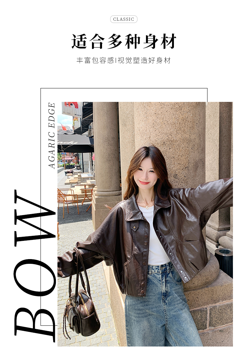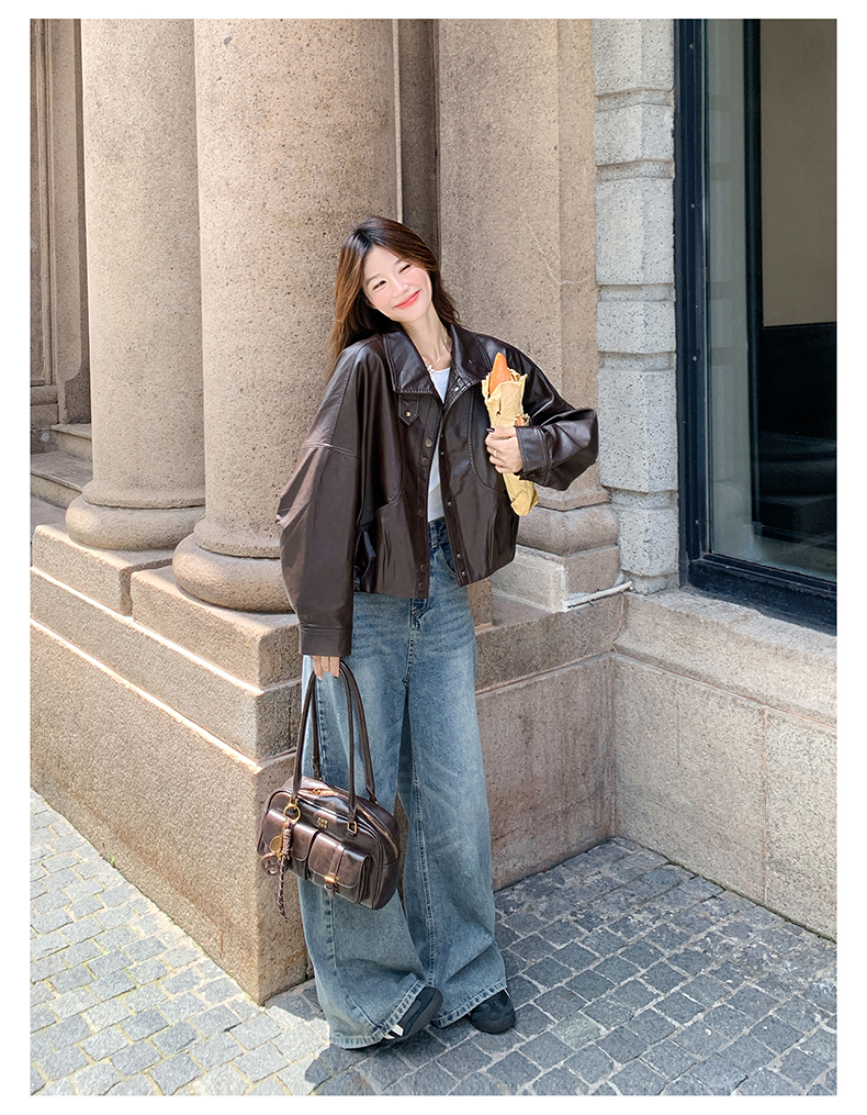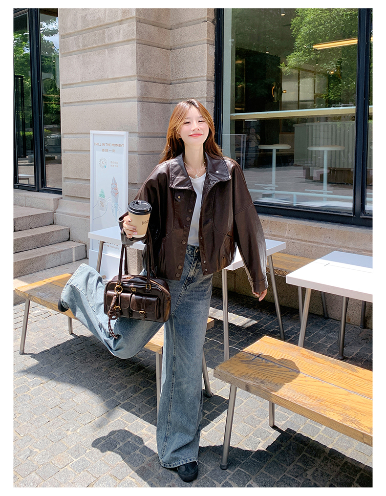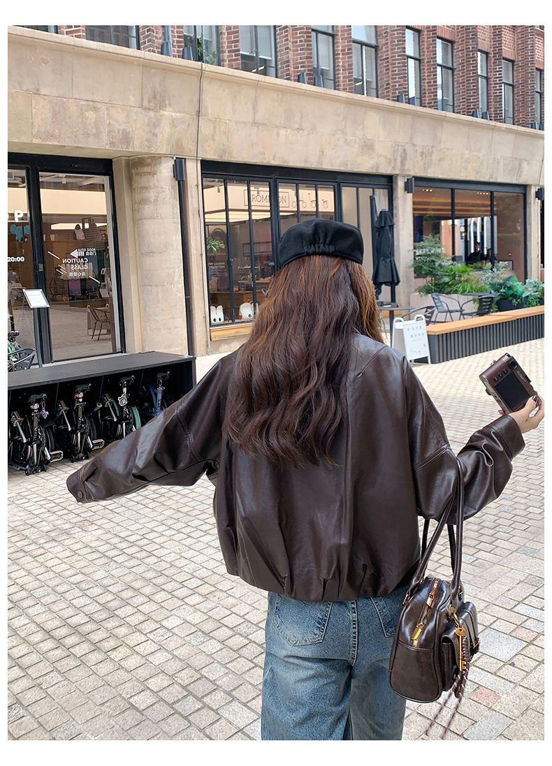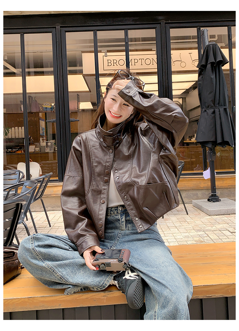 Maillard Curry Collar Leather Outwear Women's Autumn 2025 New arrival Retro Fancy Fried Arcade Clothing jacket