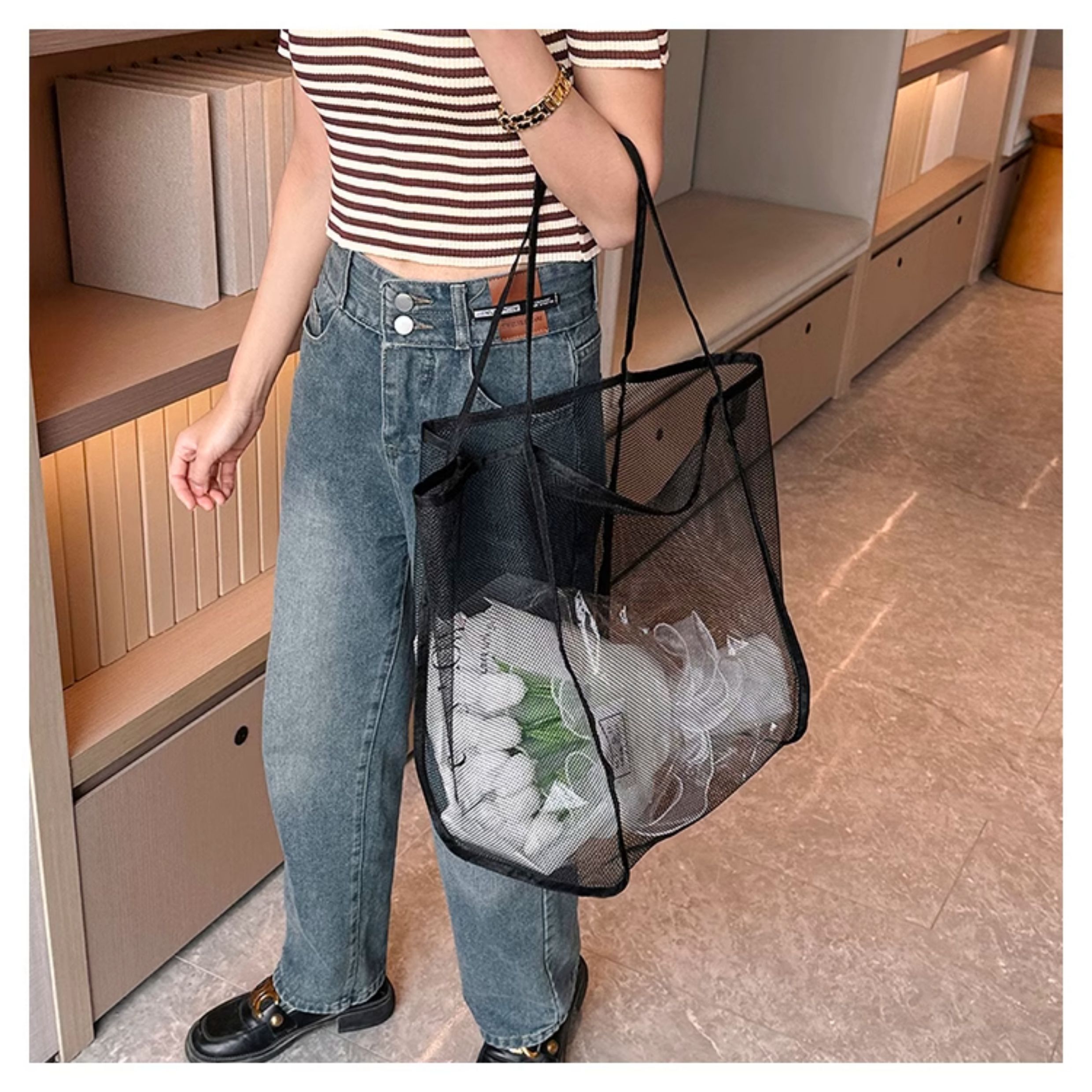 Children's Beach Toy Storage Bag, Large Capacity Mesh Bag, Swimming, Outdoor, Beach Sand Play Tools, ins Pack Mesh Bags