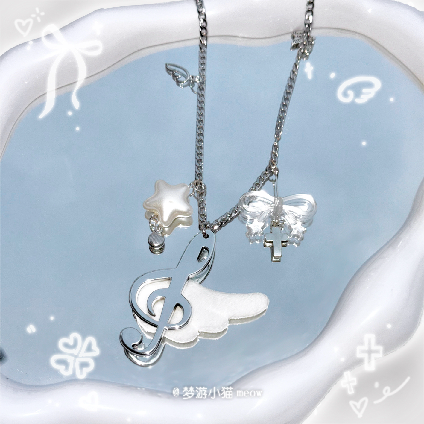 Dreamwalking Kitten/Ancient Angel Musical Note Wings Girl Necklace Versatile Sweet Plush Sweater Chain Pendant Accessory