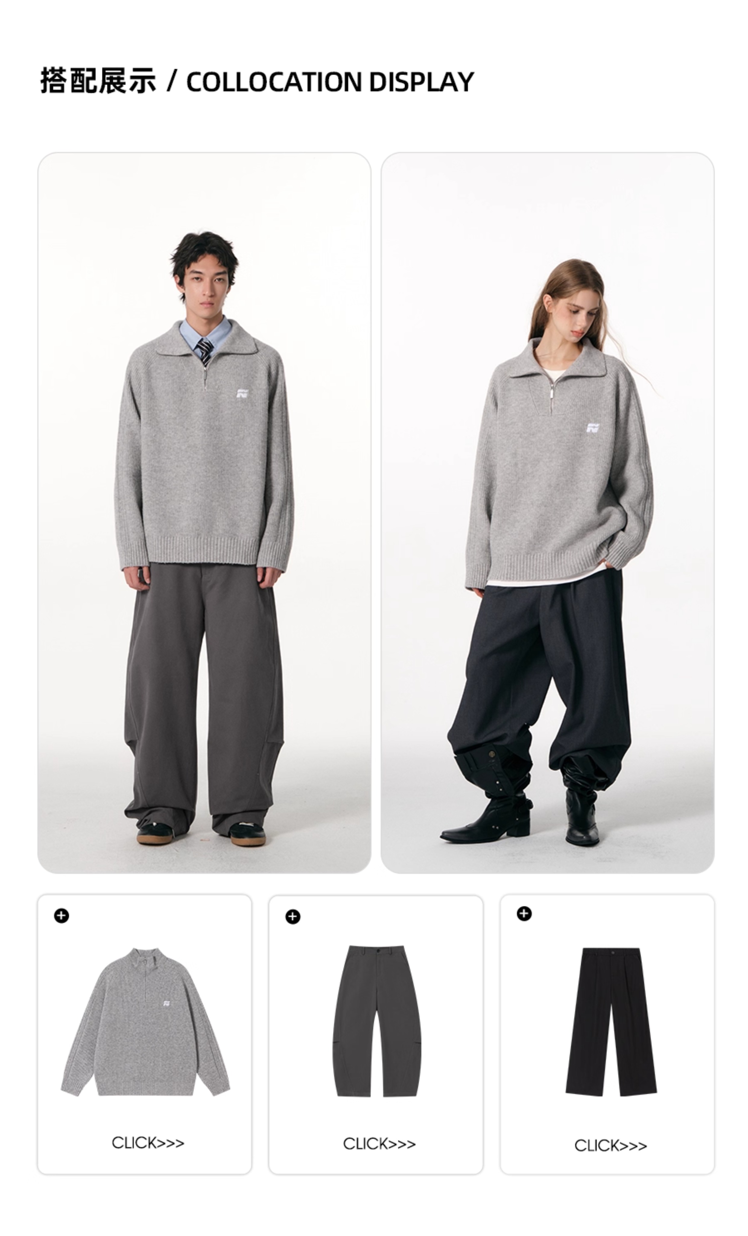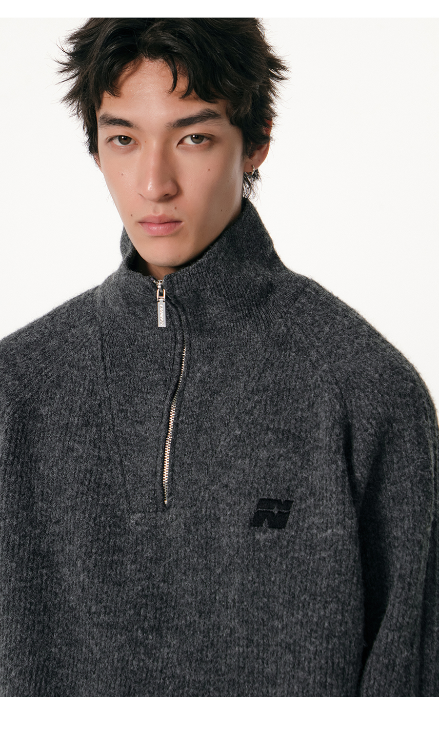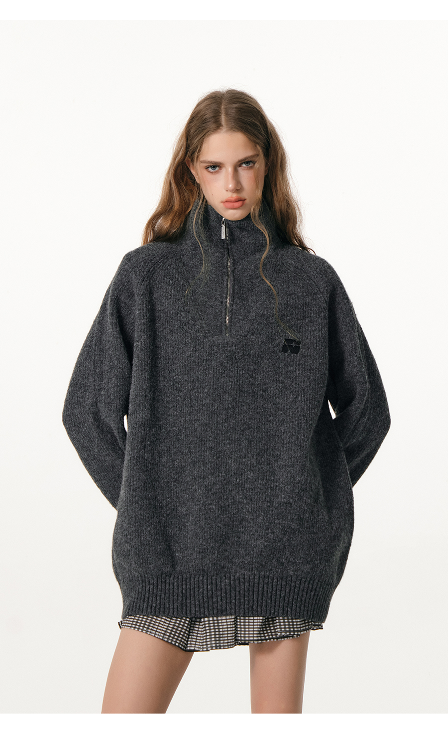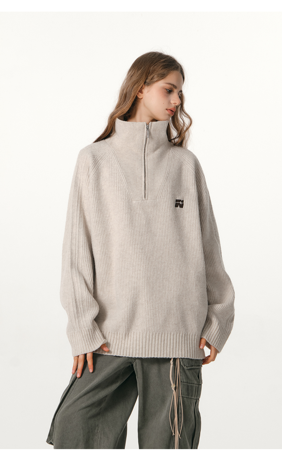 Fornines Contains Sheep Wool, Stand-Up Collar Half-Zip Knitwear for Men and Women, Autumn and Winter Couple Loose High-Neck Casual Knitwear