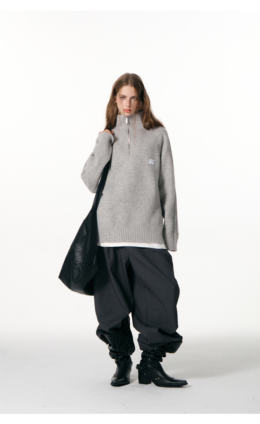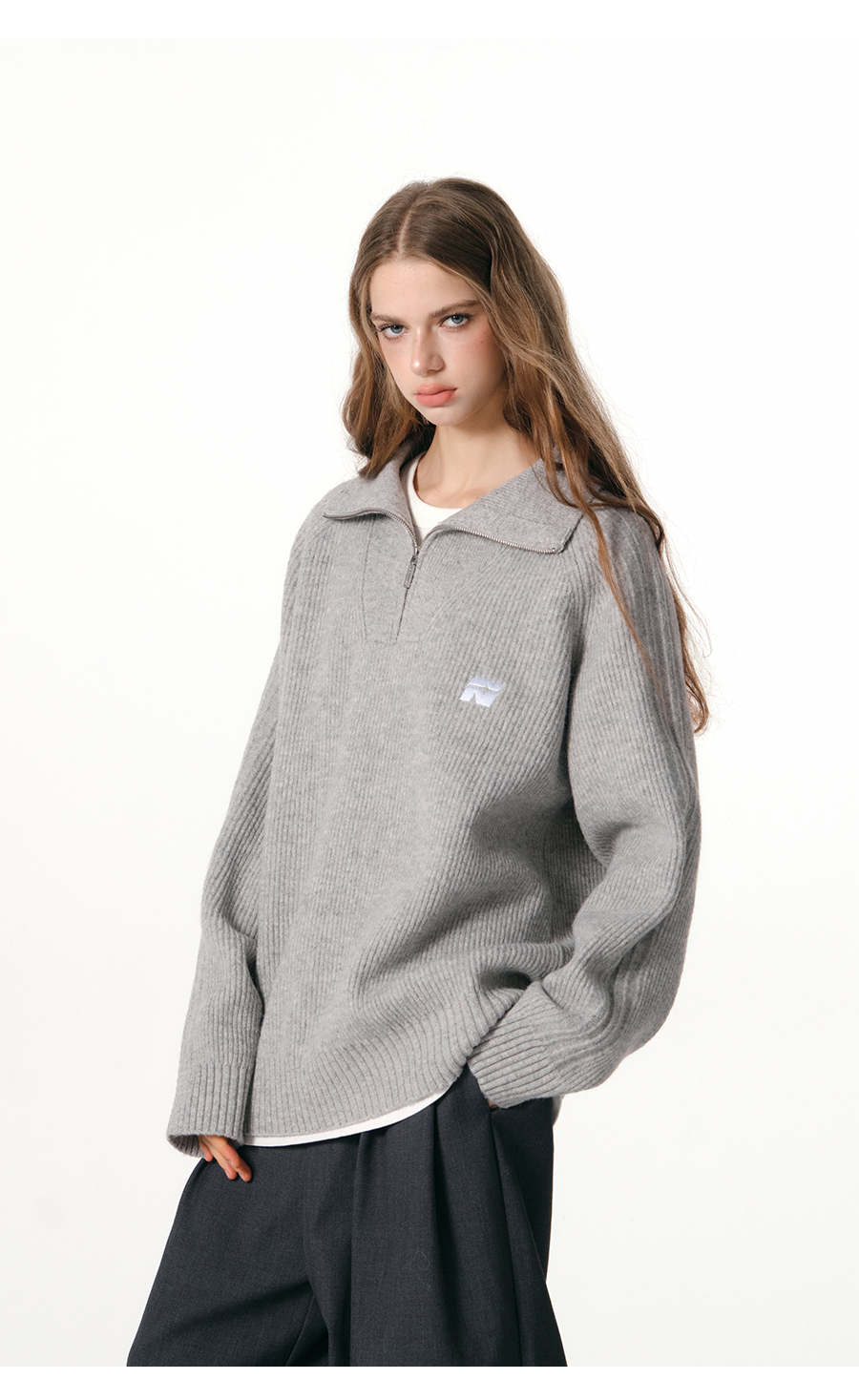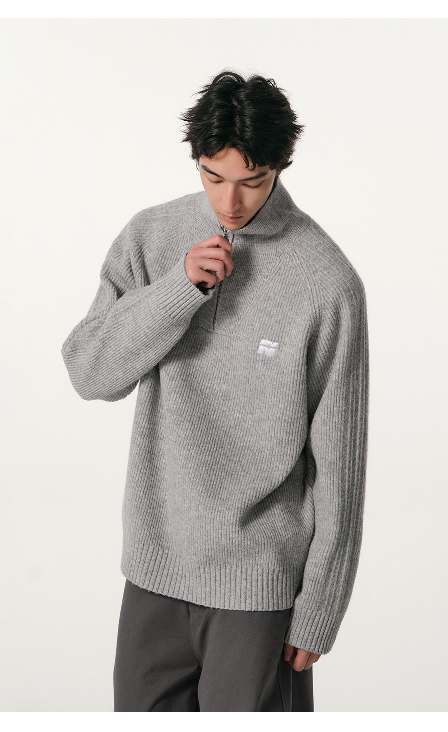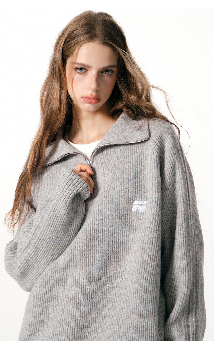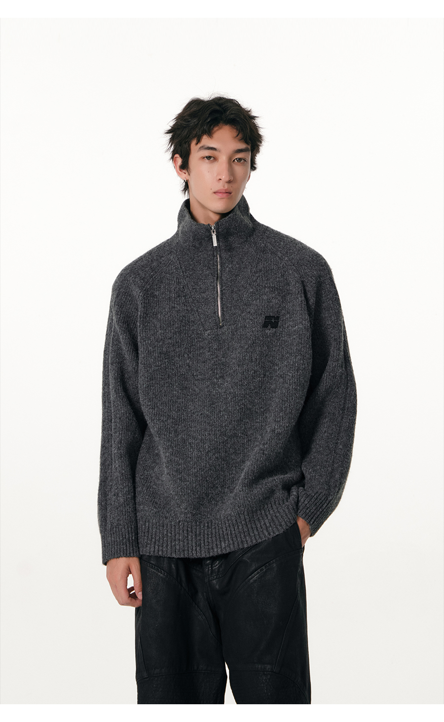 Fornines Contains Sheep Wool, Stand-Up Collar Half-Zip Knitwear for Men and Women, Autumn and Winter Couple Loose High-Neck Casual Knitwear