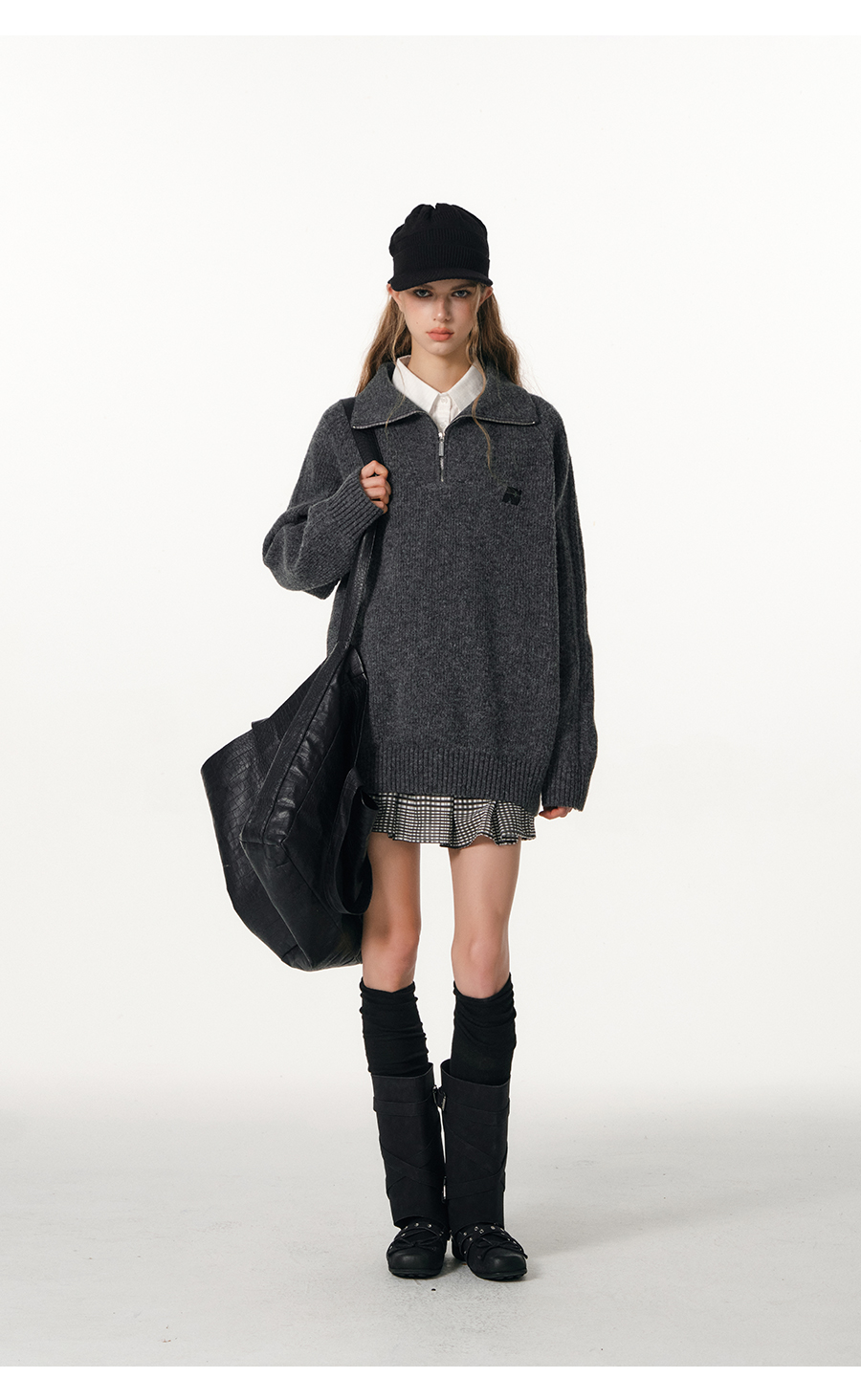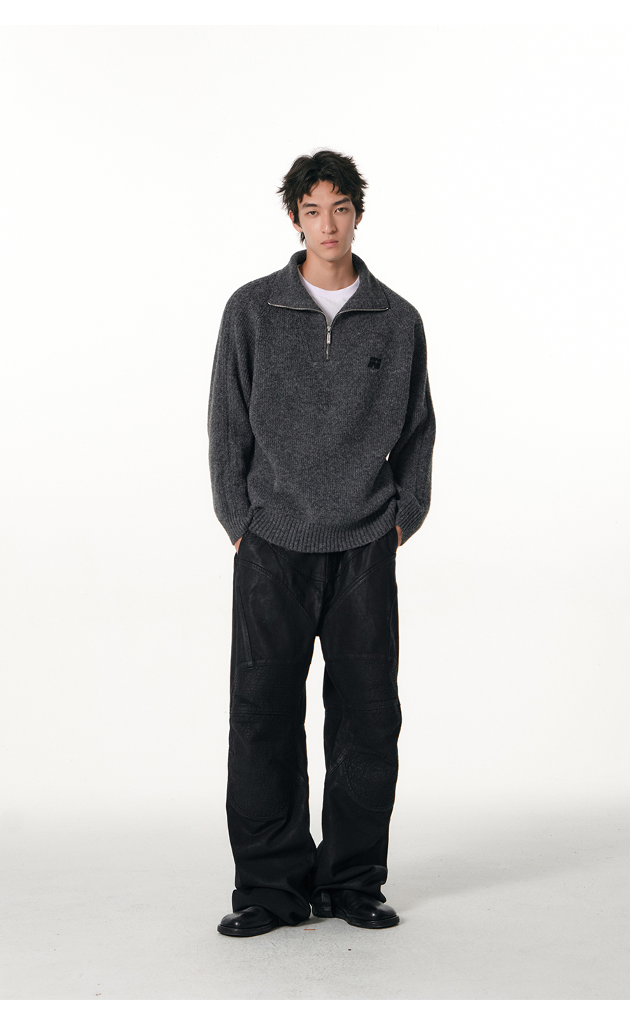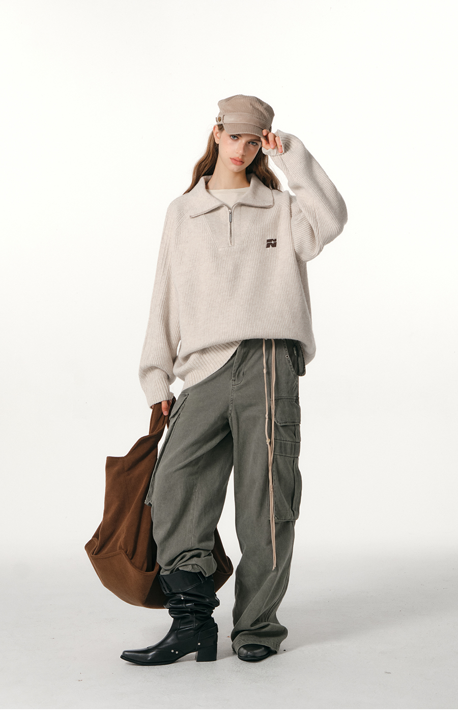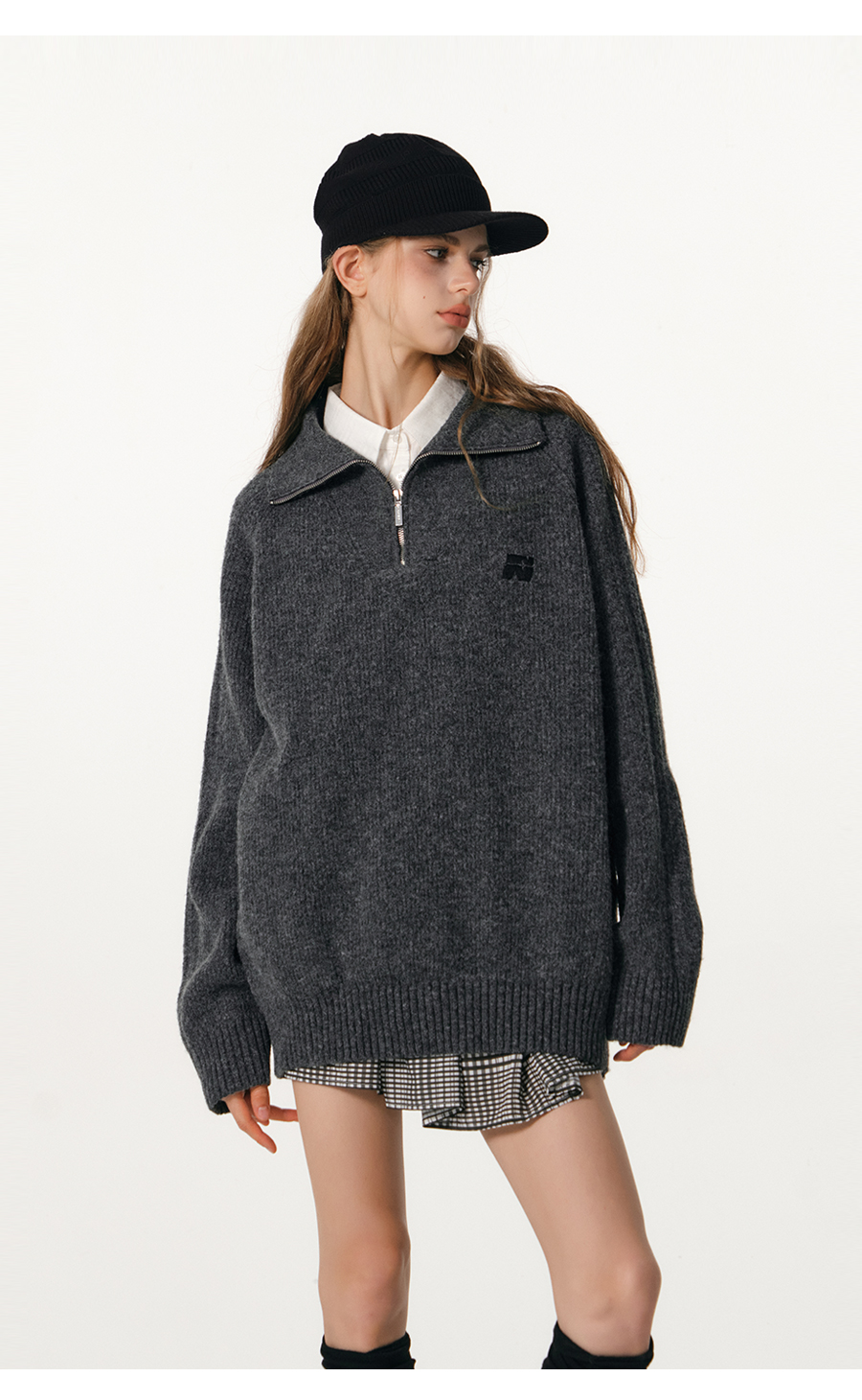 Fornines Contains Sheep Wool, Stand-Up Collar Half-Zip Knitwear for Men and Women, Autumn and Winter Couple Loose High-Neck Casual Knitwear