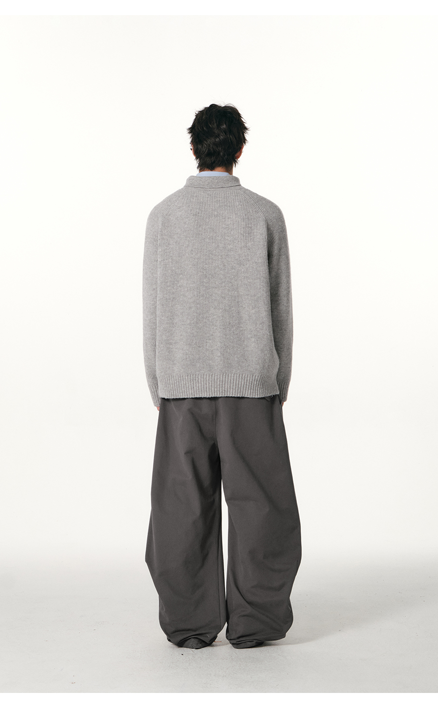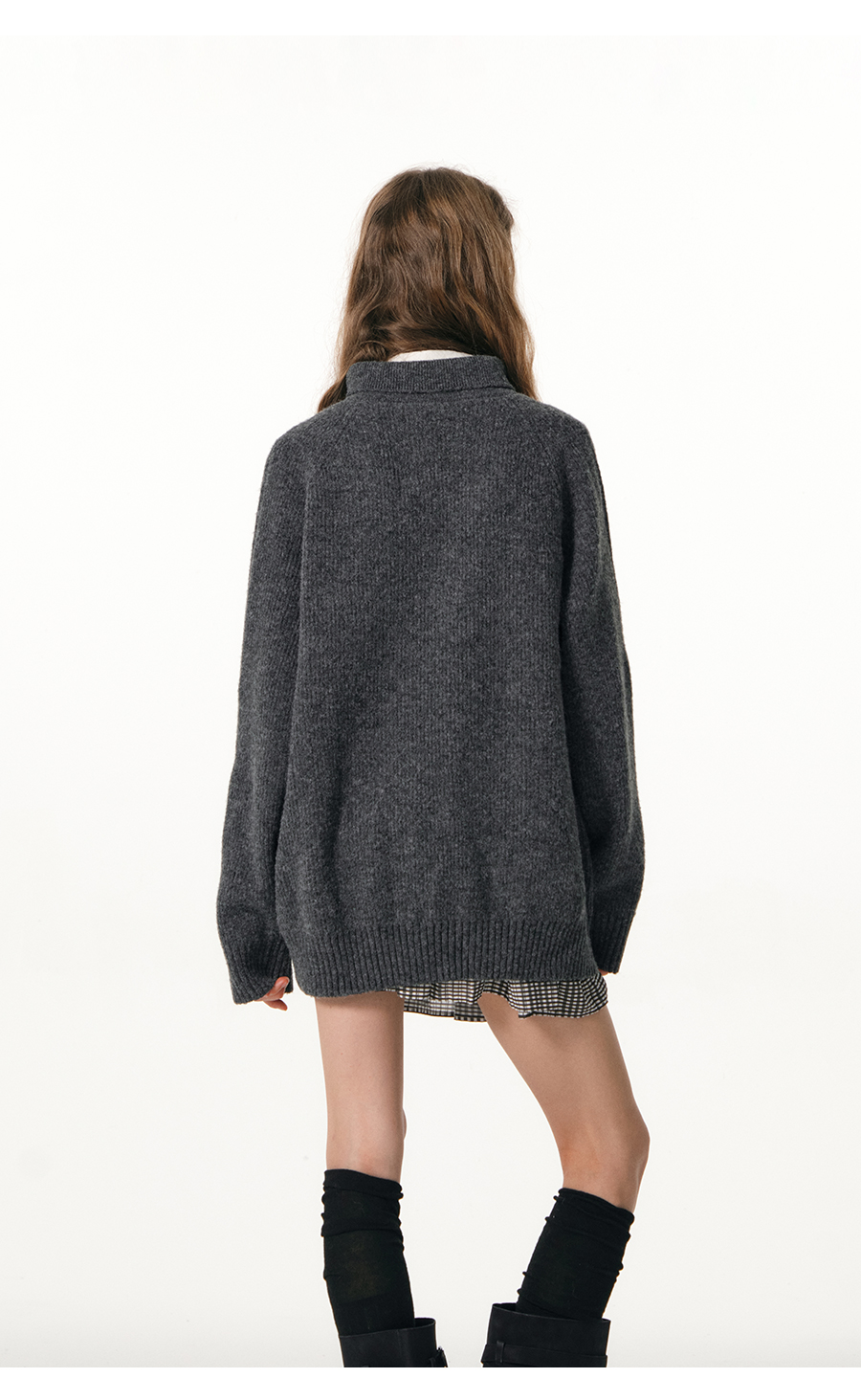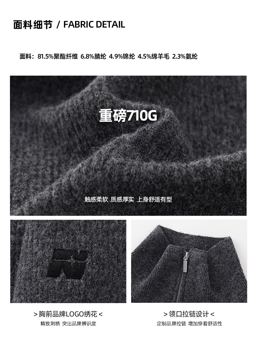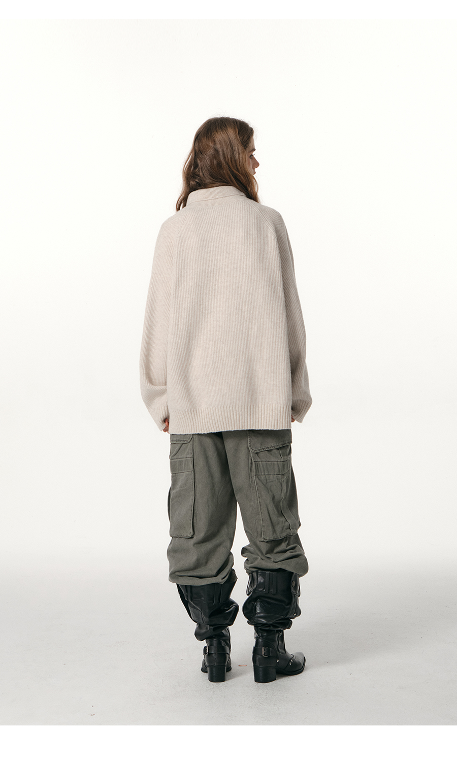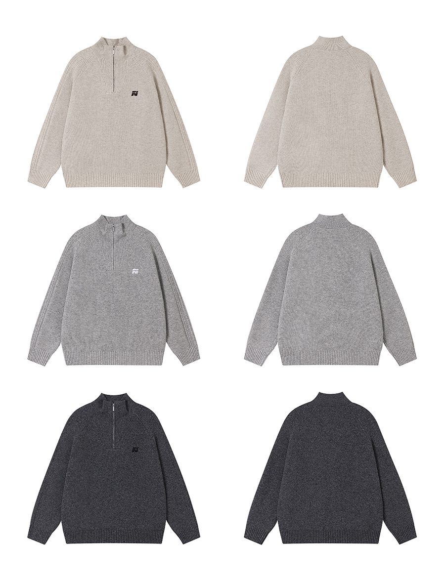 Fornines Contains Sheep Wool, Stand-Up Collar Half-Zip Knitwear for Men and Women, Autumn and Winter Couple Loose High-Neck Casual Knitwear