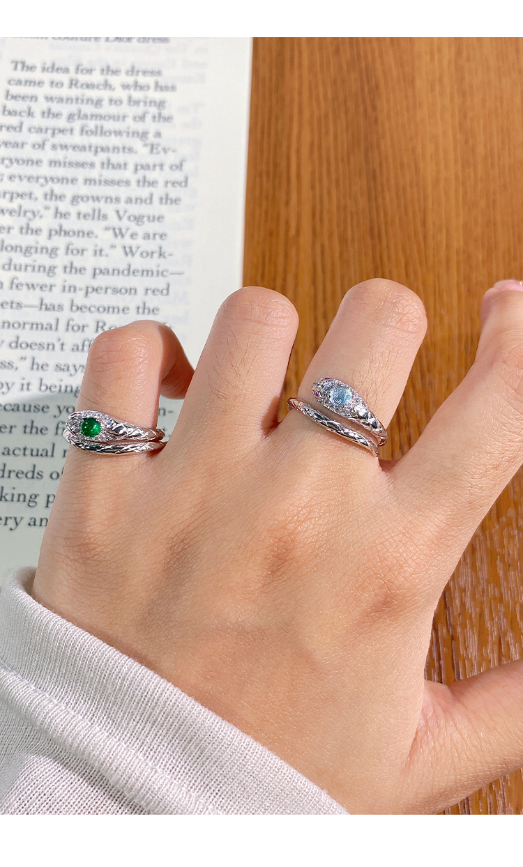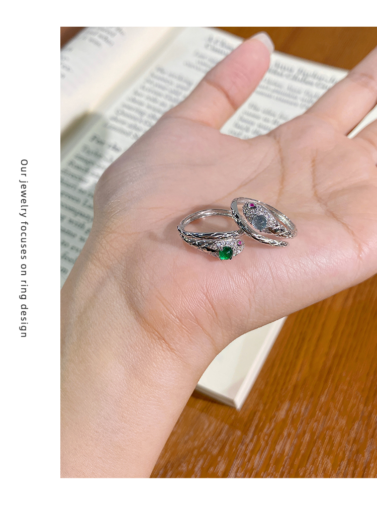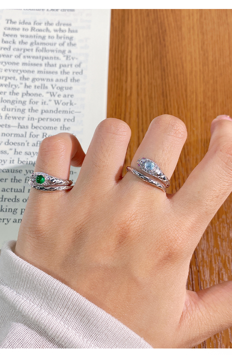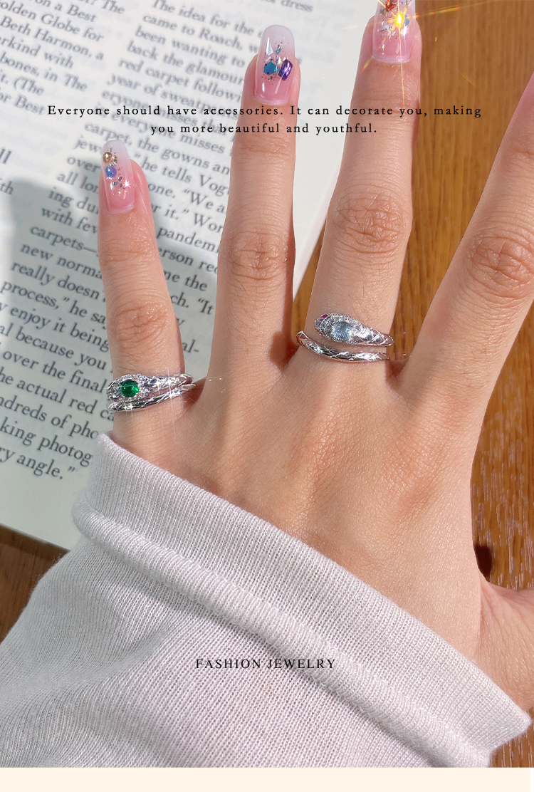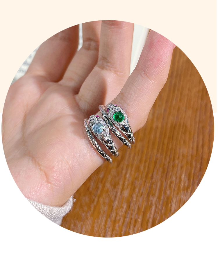 Tilde Luxury Snake Ring Blue Water Jade Snake-Shaped Snake Bone Sterling Silver Tail Ring for Women Small Size Men's 2