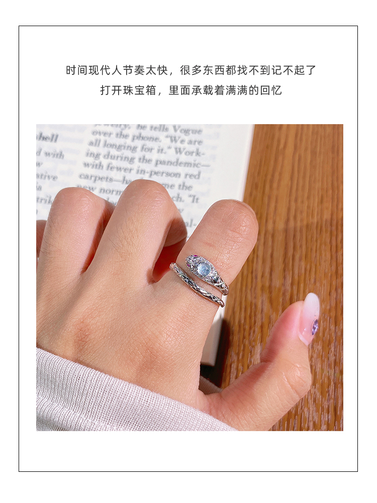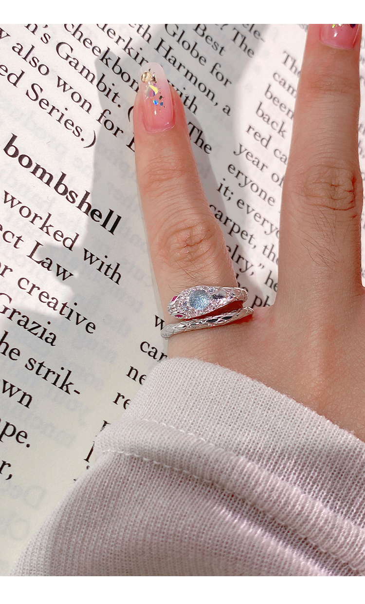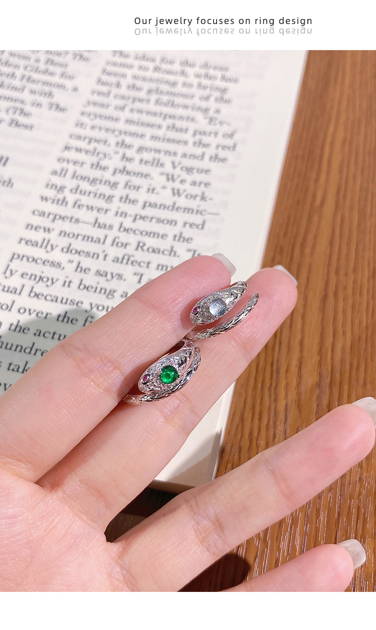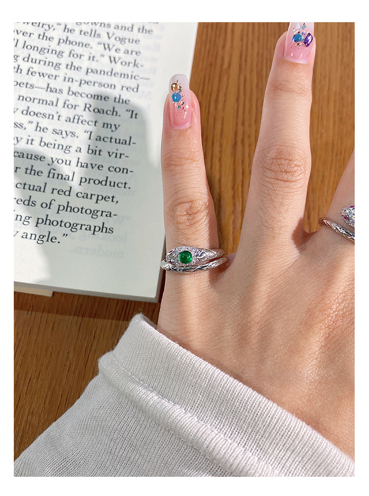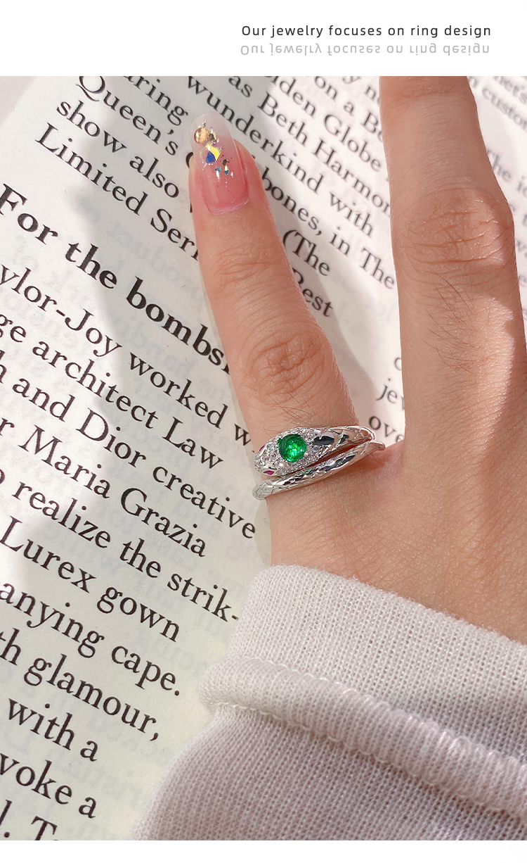 Tilde Luxury Snake Ring Blue Water Jade Snake-Shaped Snake Bone Sterling Silver Tail Ring for Women Small Size Men's 2