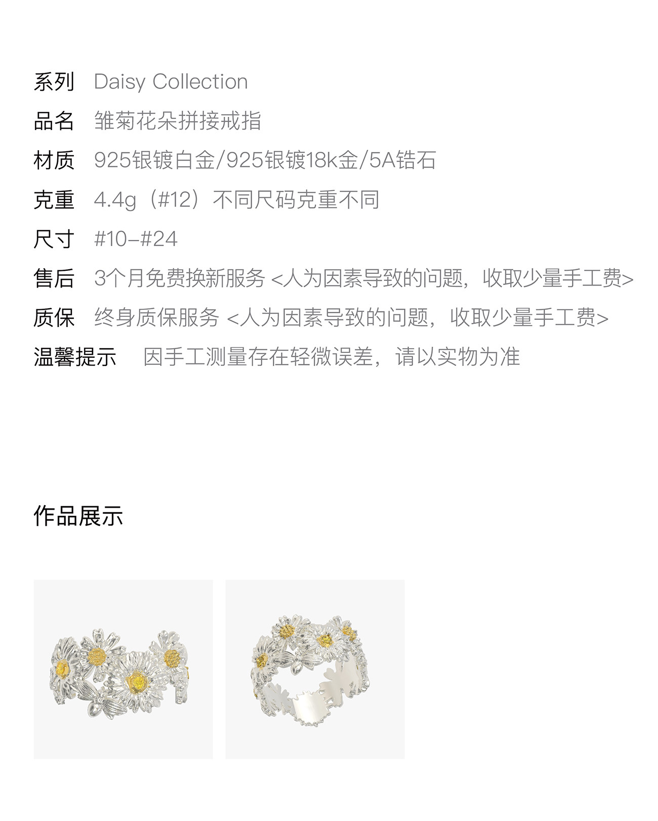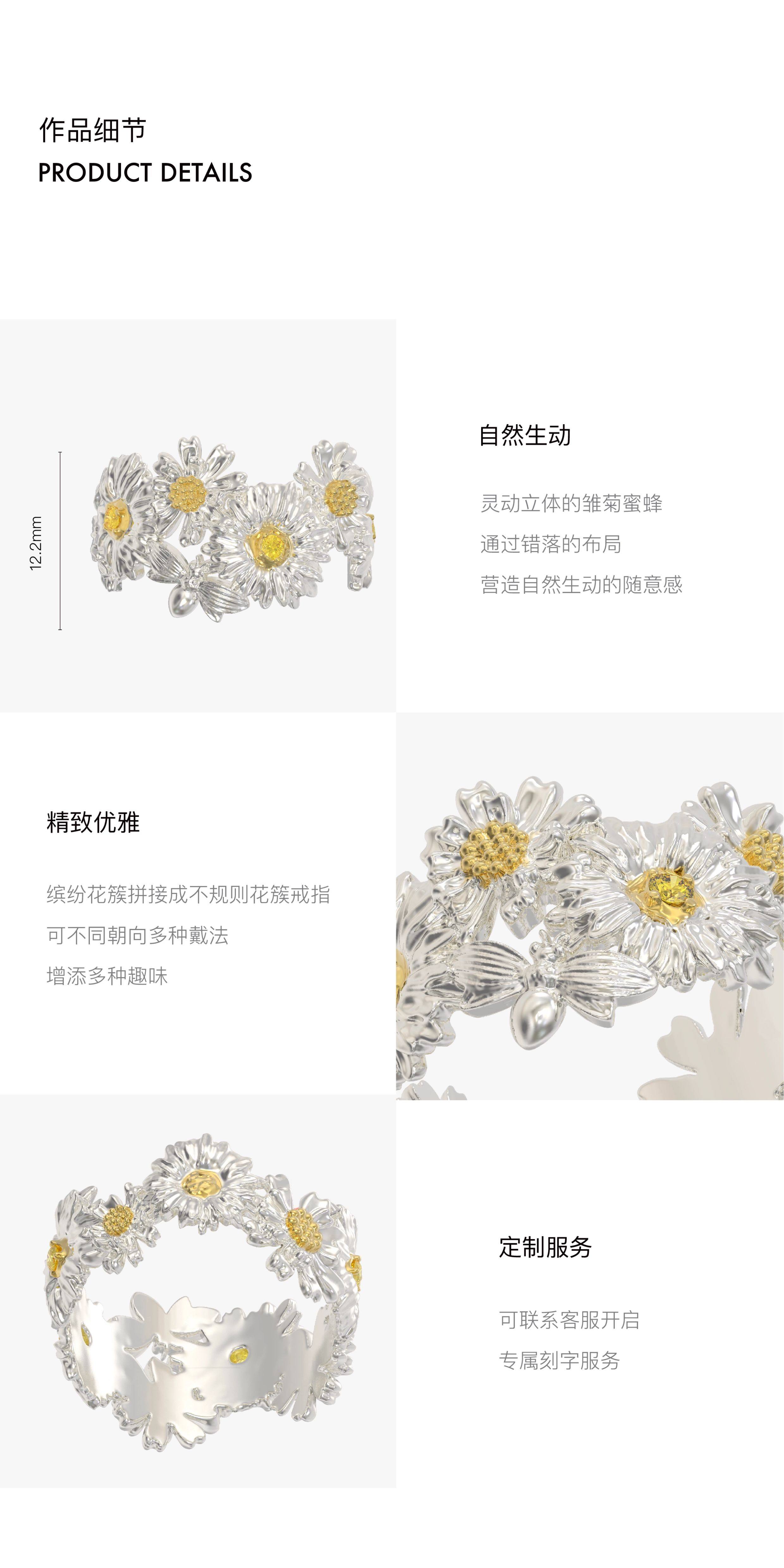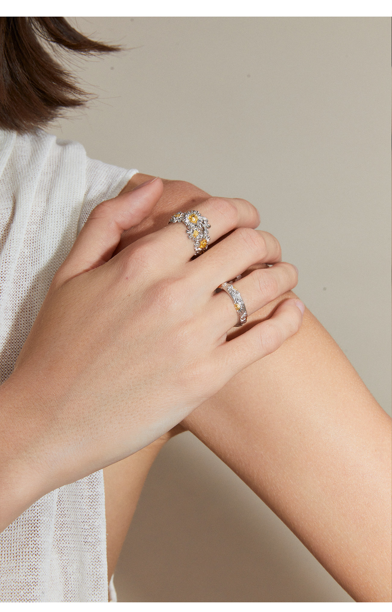 Mouhooland Daisy Series Daisy Flower Splicing Ring Couple Ring Niche Design