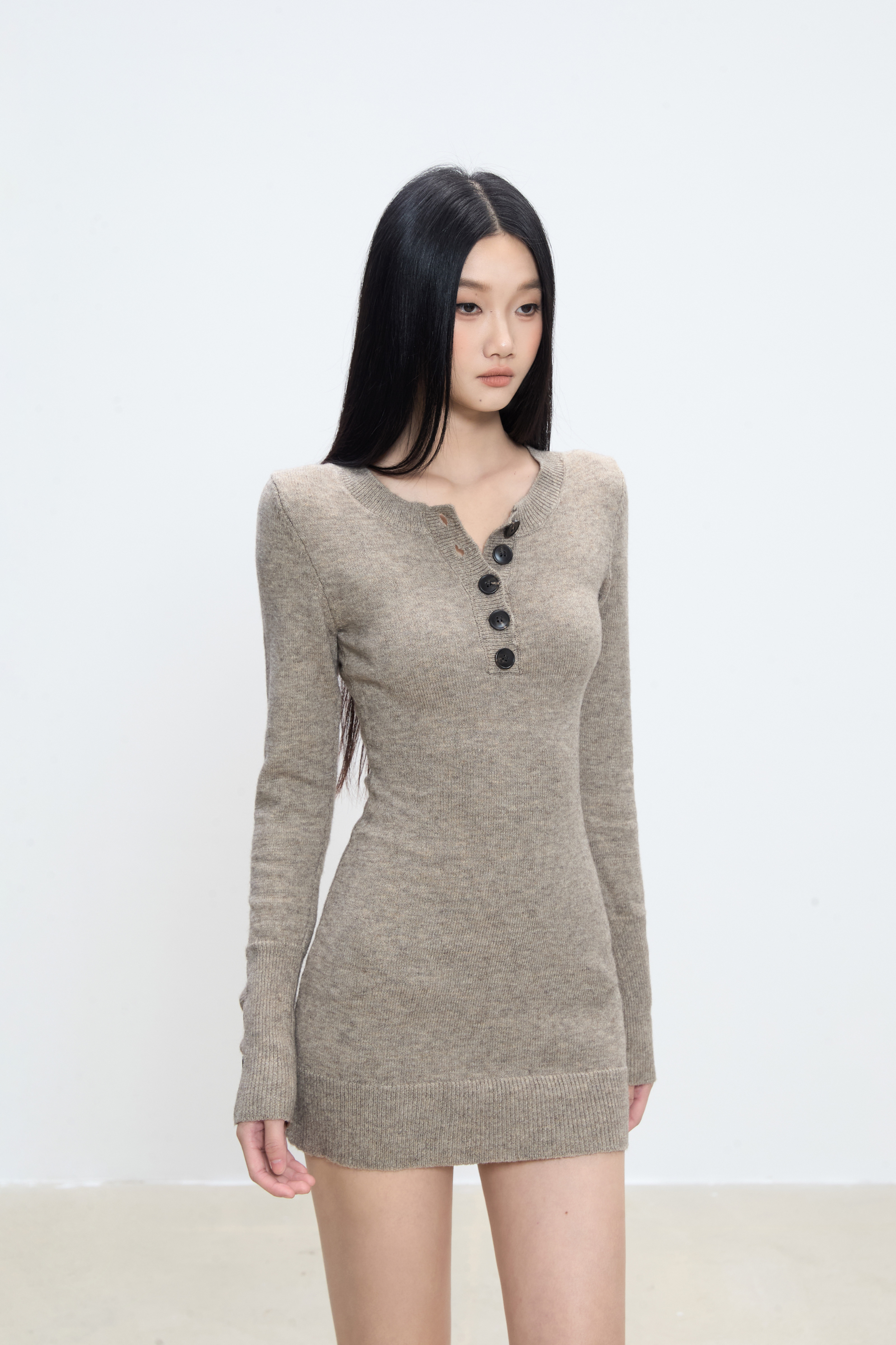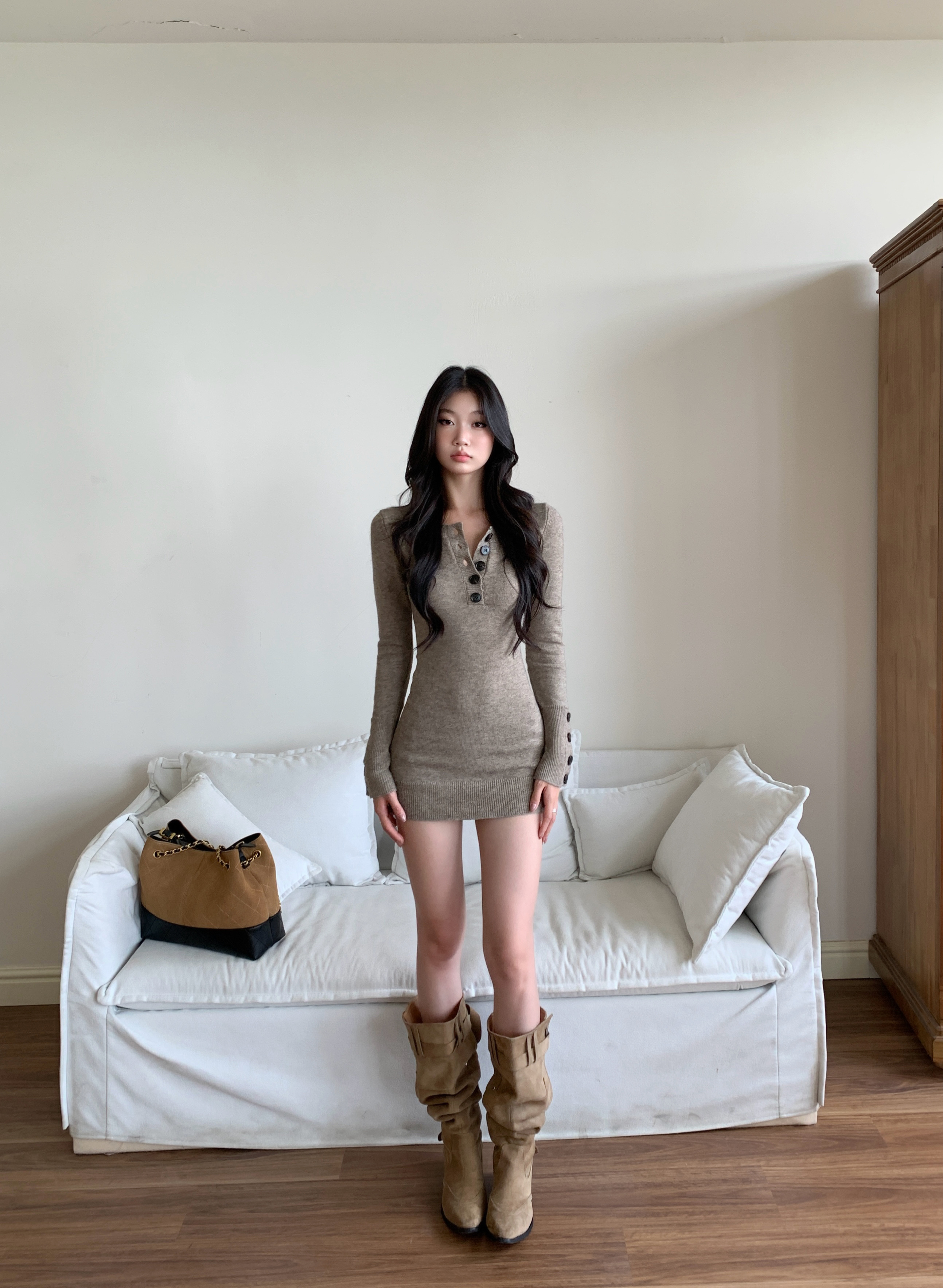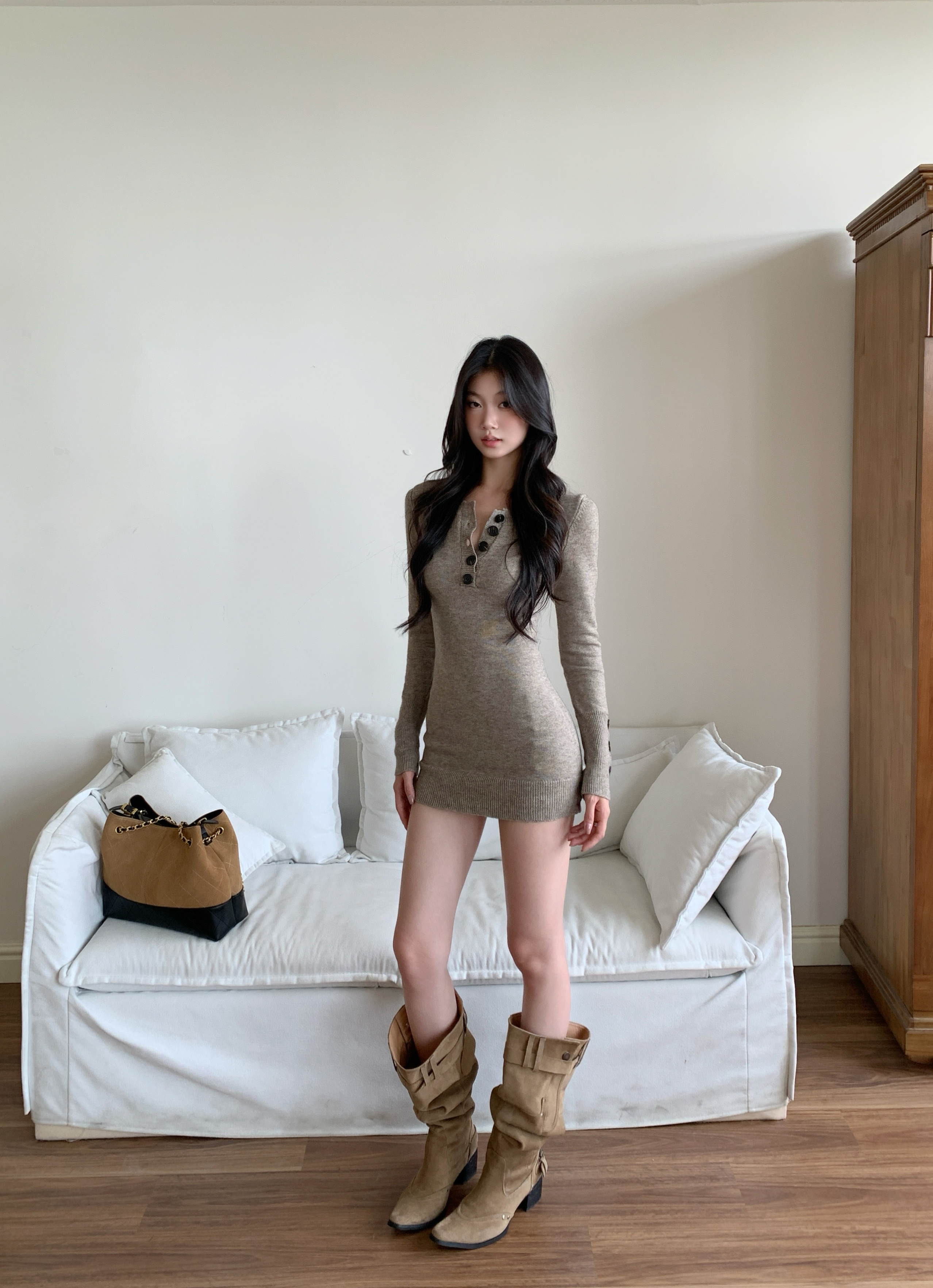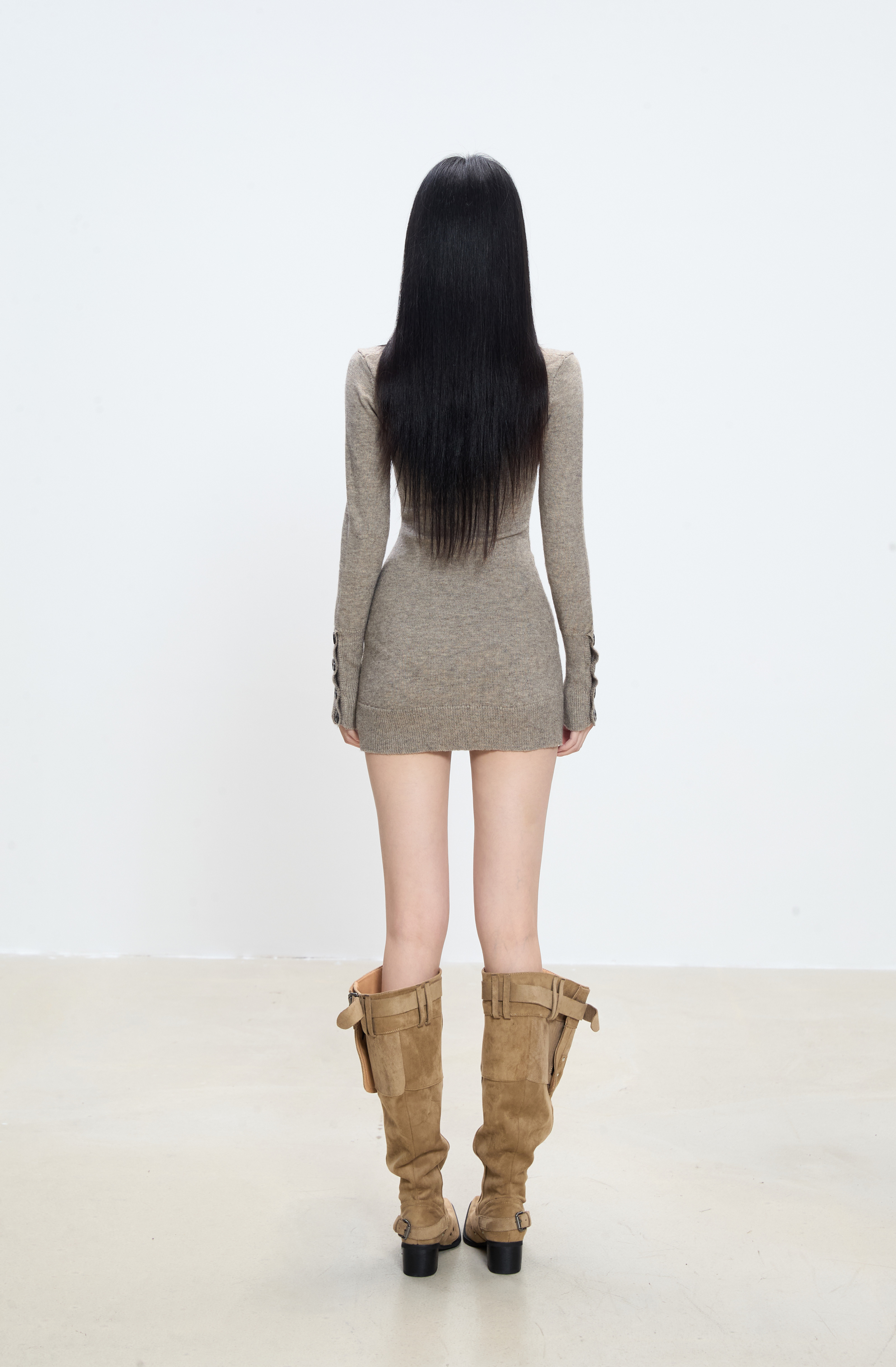 Withmin Long-Sleeved Dress Autum 2025 New Style Waist-Slimming Pure Desire Hot Girl Knitted Hip-Hugging Skirt Short Skirt