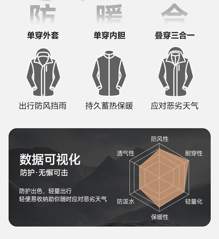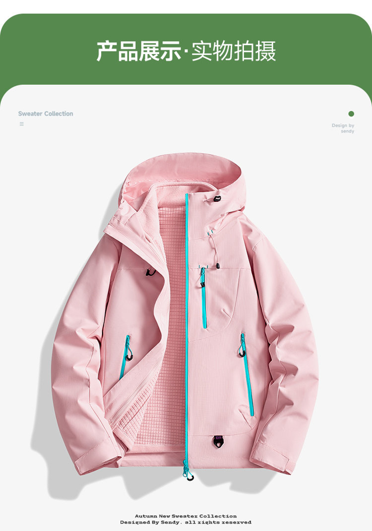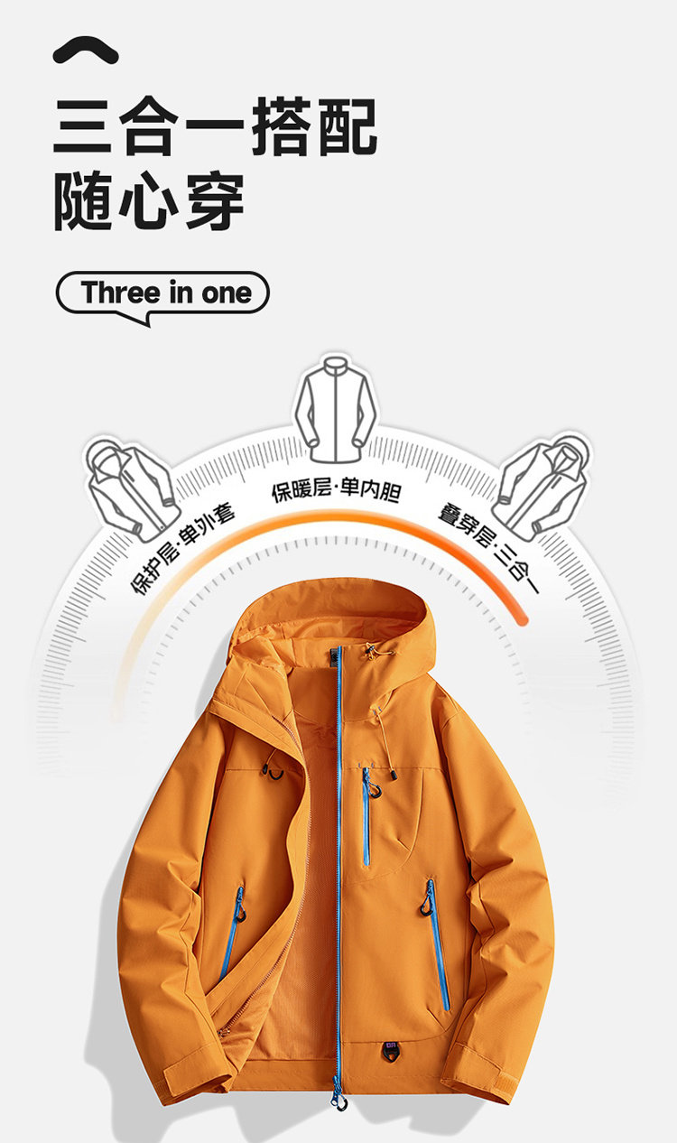 Men's and Women's Three-In-One Detachable Jacket, Autumn and Winter Outdoor Windproof, Waterproof, Fleece-Lined and Thickened Mountaineering Clothing
