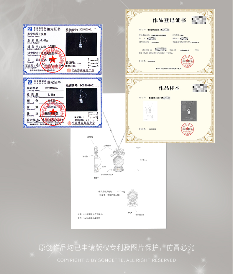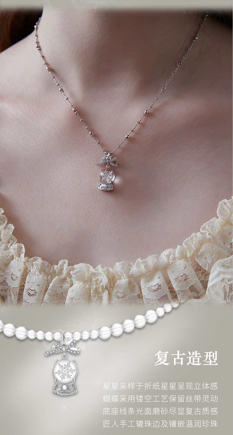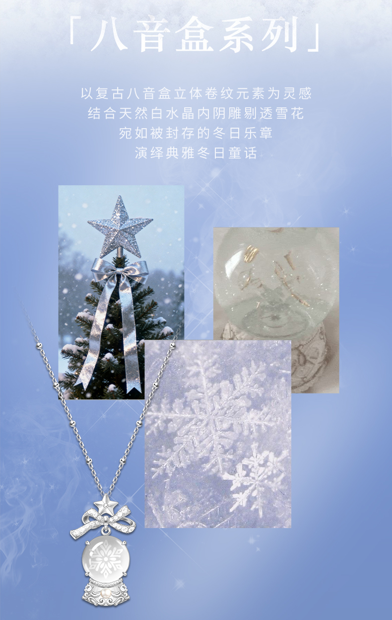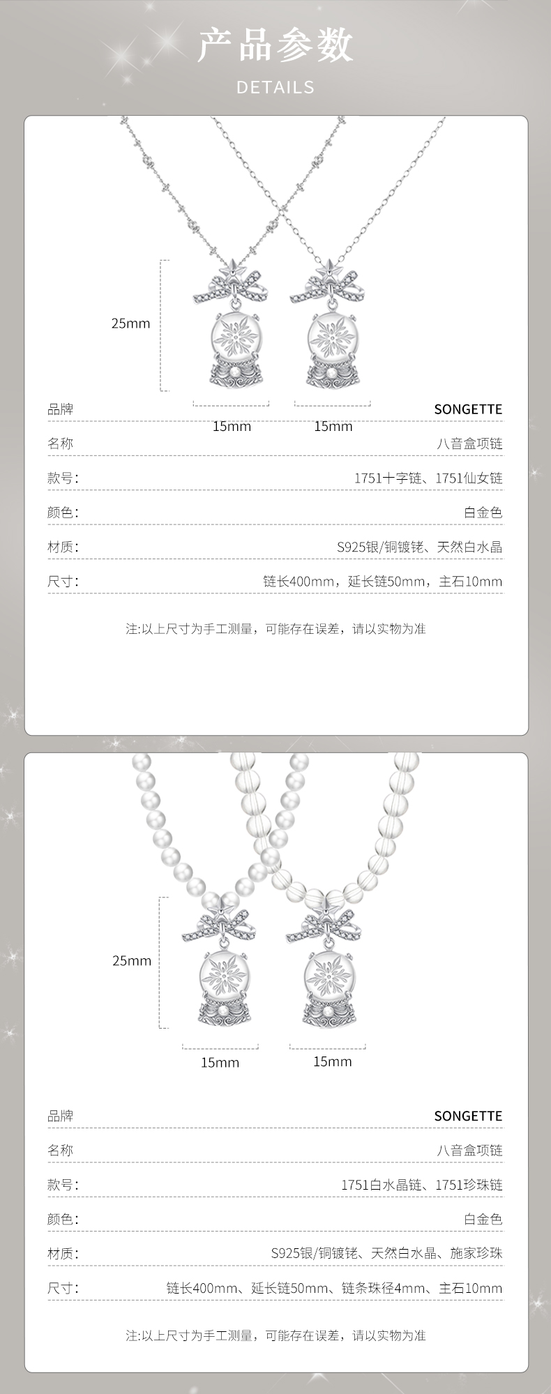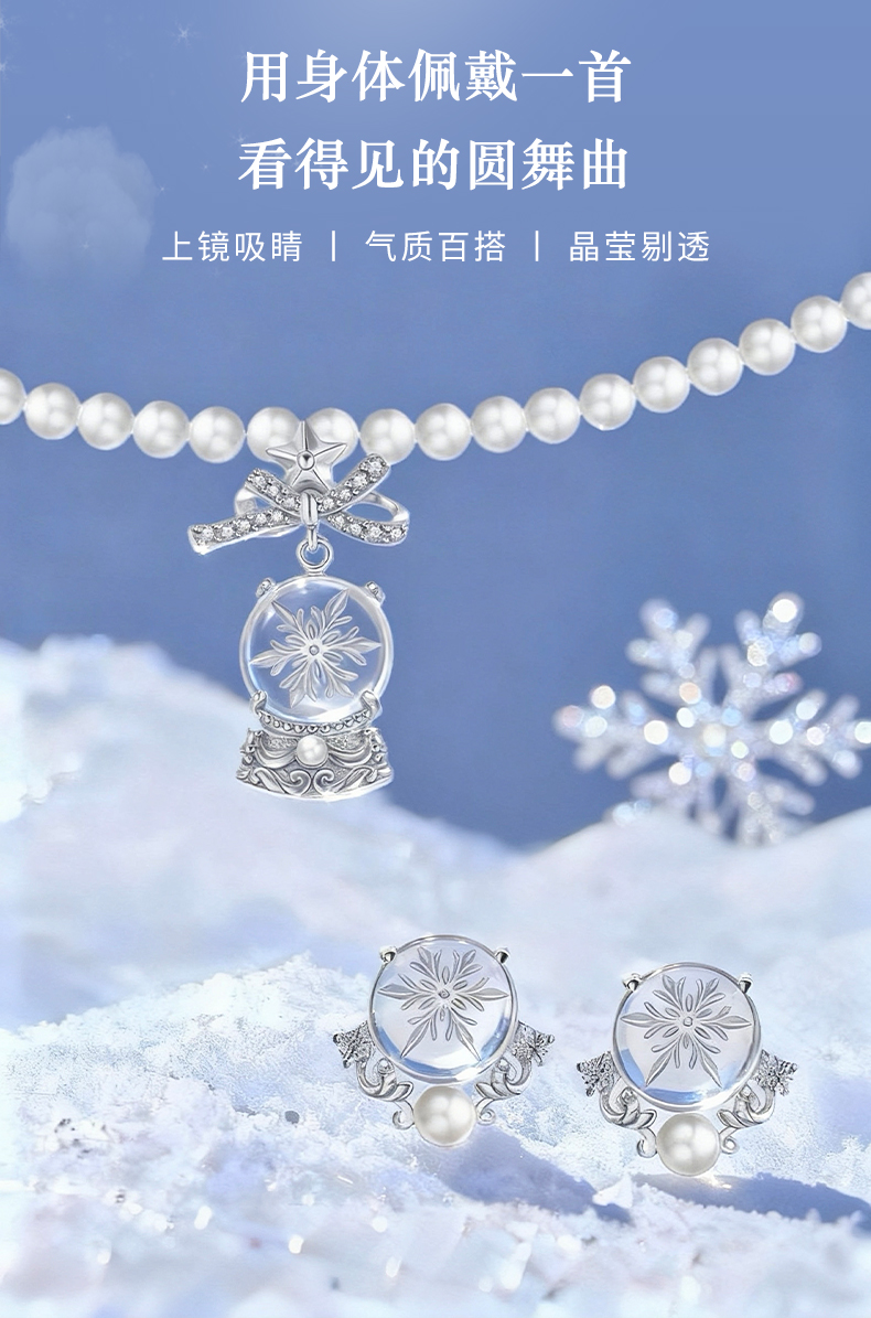 Songette's Original Design of the Music Box Series Sterling Silver White Crystal Ball Pearl Snowflake Necklace Clavicle Chain
