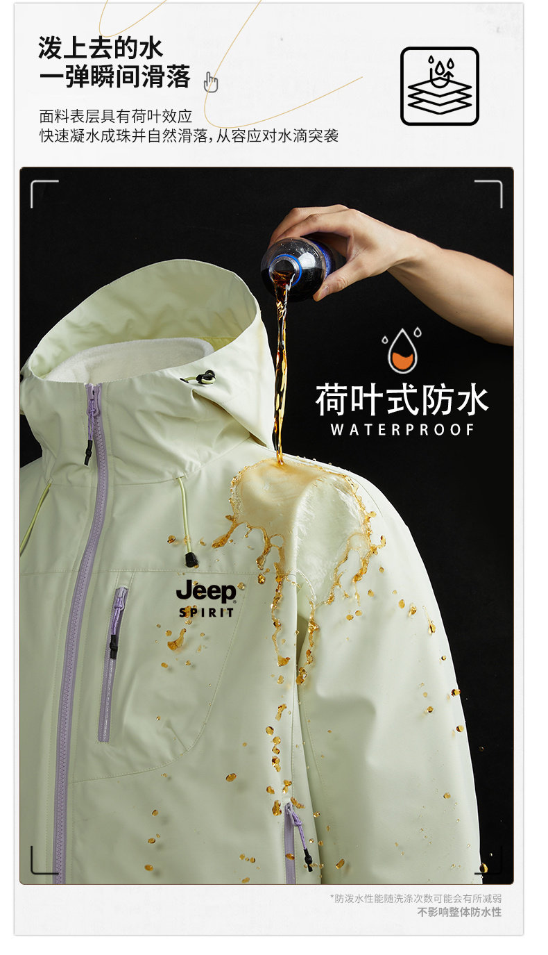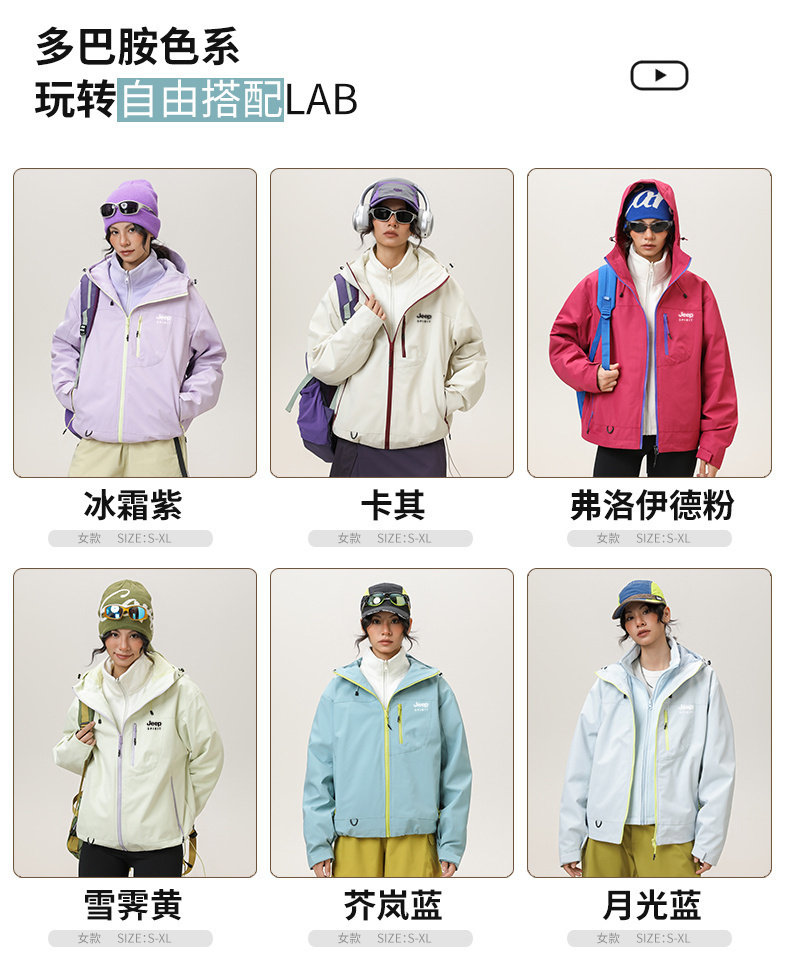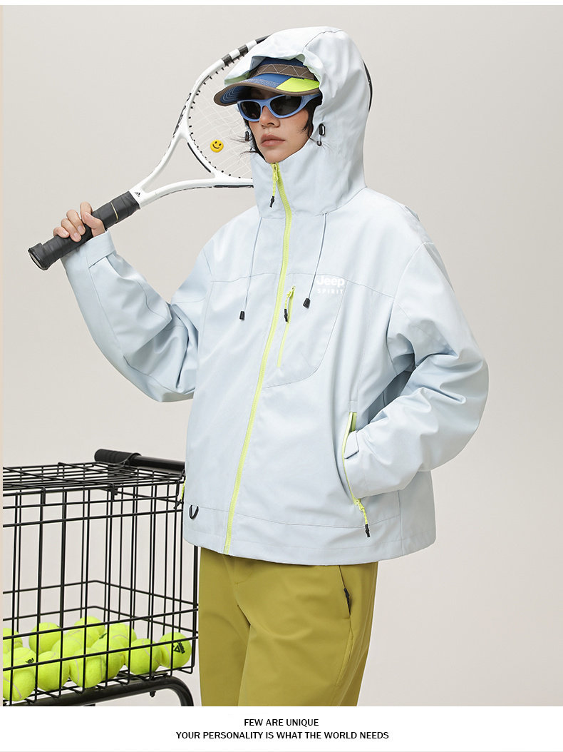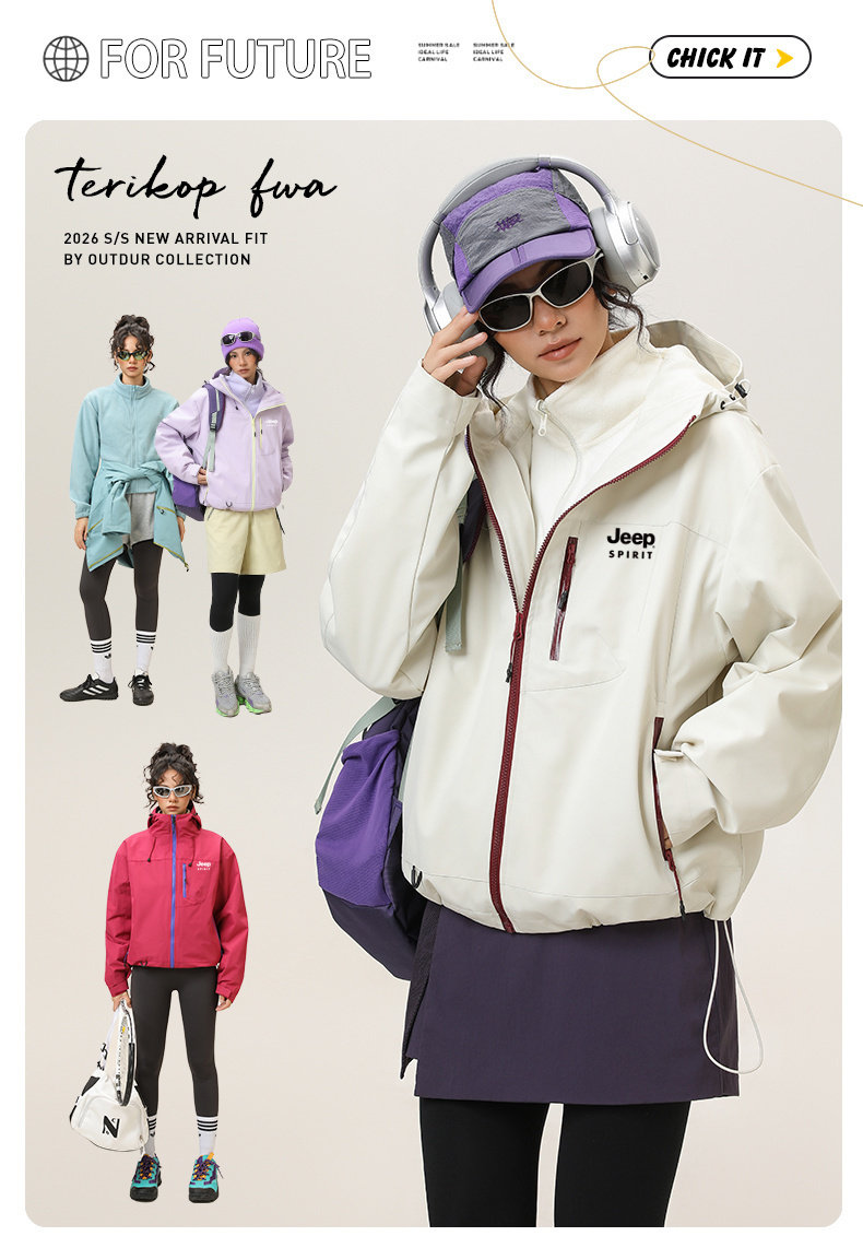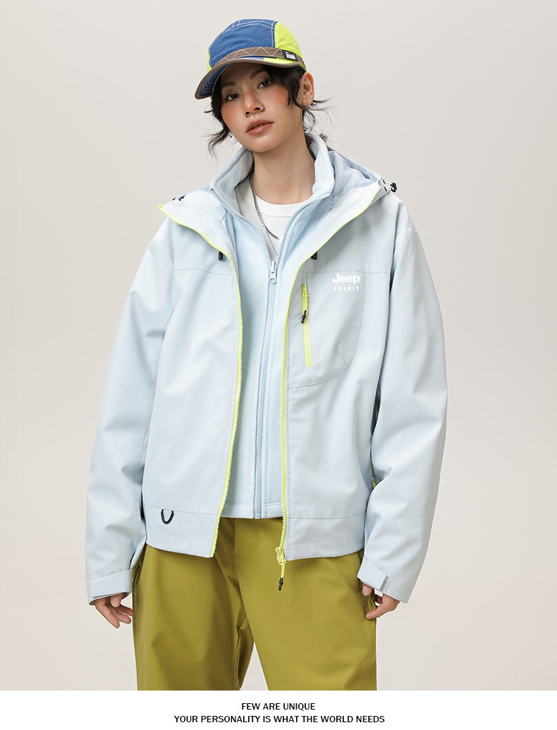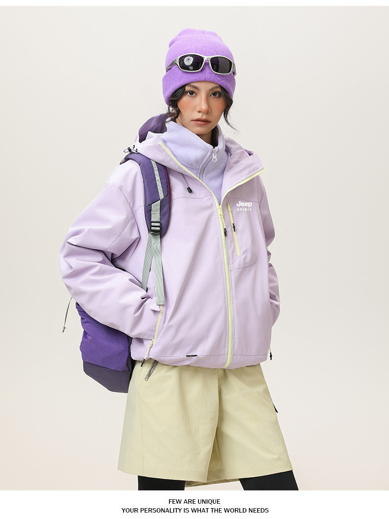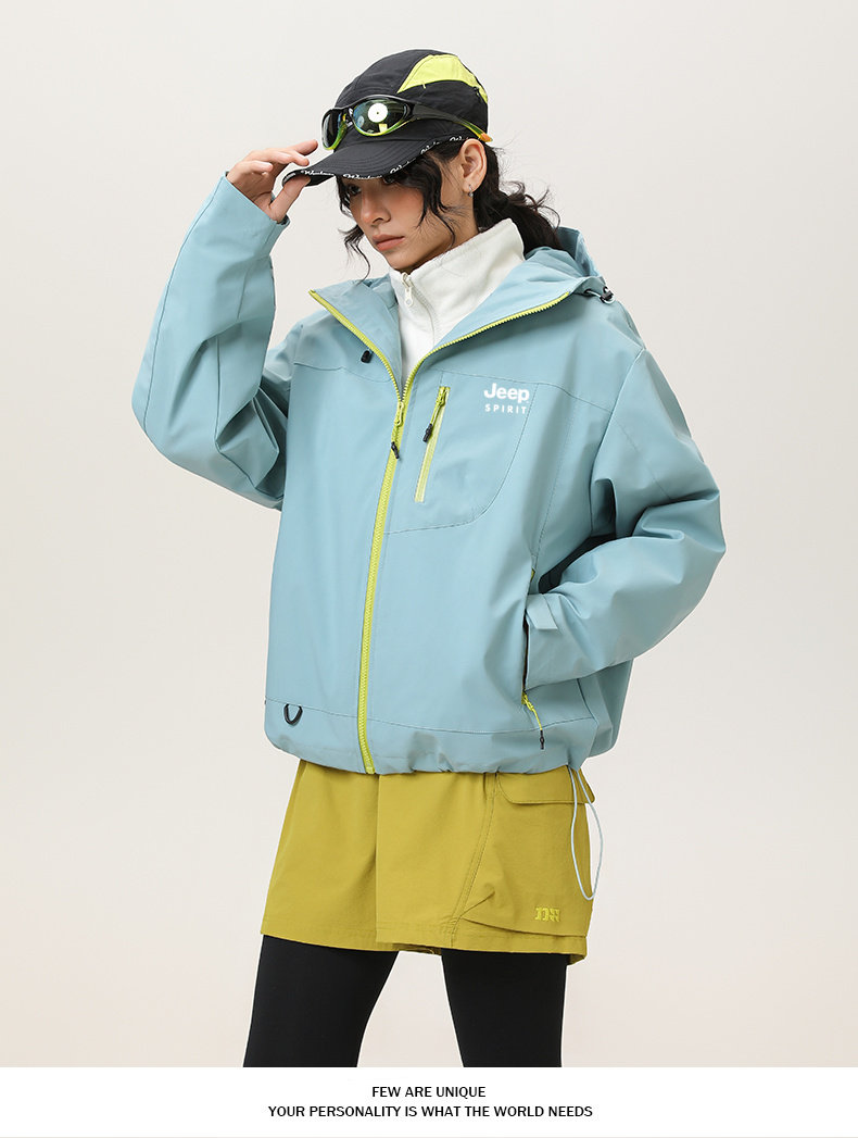 Jeep Three-In-One Short Jacket for Women, Spring and Autum Loose Outdoor Waterproof Hiking and Mountaineering Hooded Jacket