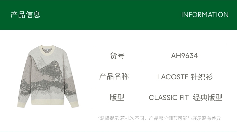 LACOSTE French Crocodile King Yibo Joint Series for Men and Women 25 Autumn New arrival Knitwear | AH9634