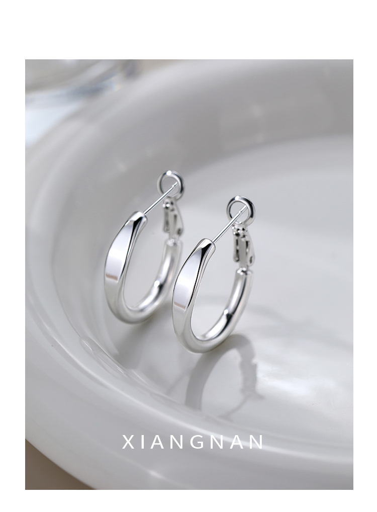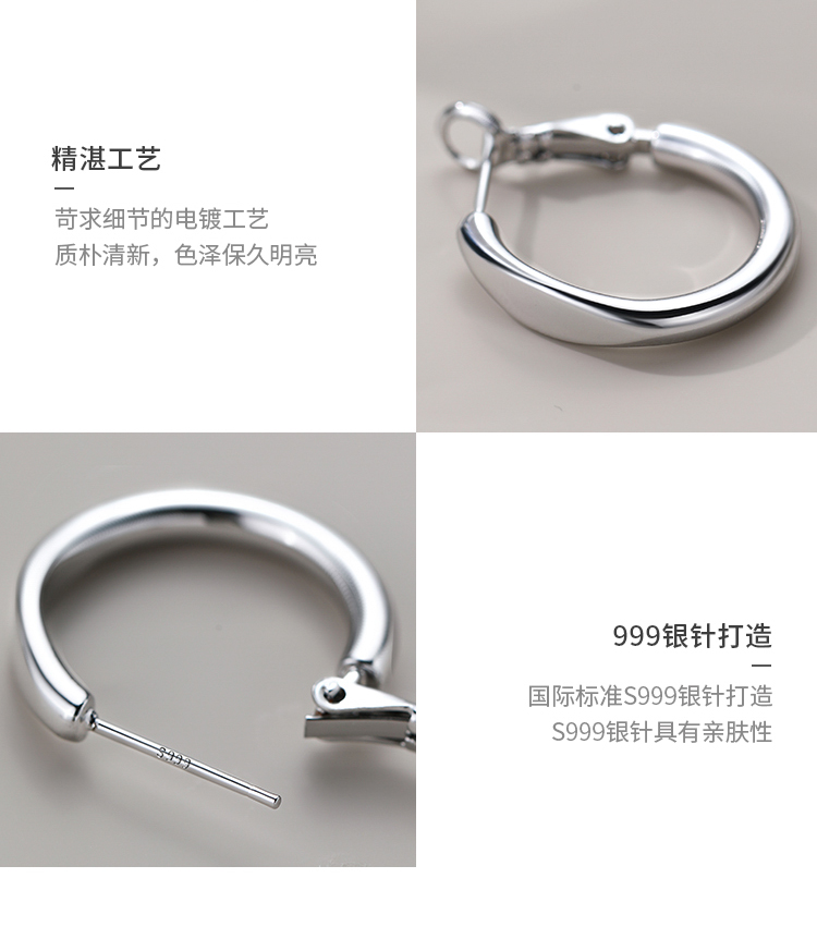 【Xiangnan】999 Silver Hoop Earrings, High-End Style for Women, Simple Hoop, 2025 New Niche Hot Item, Light Luxury Earrings