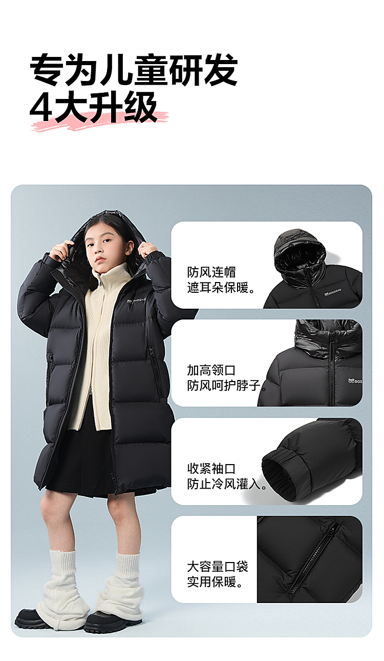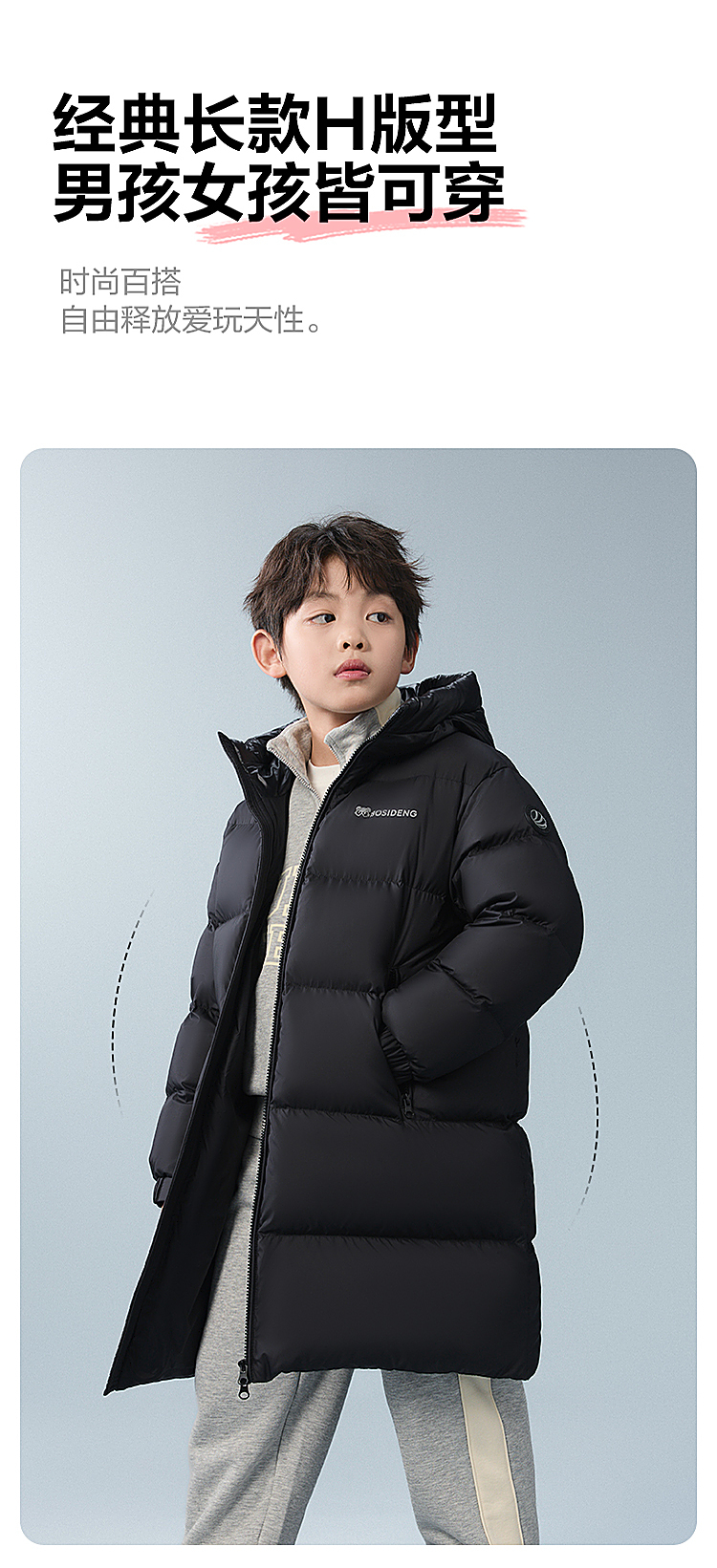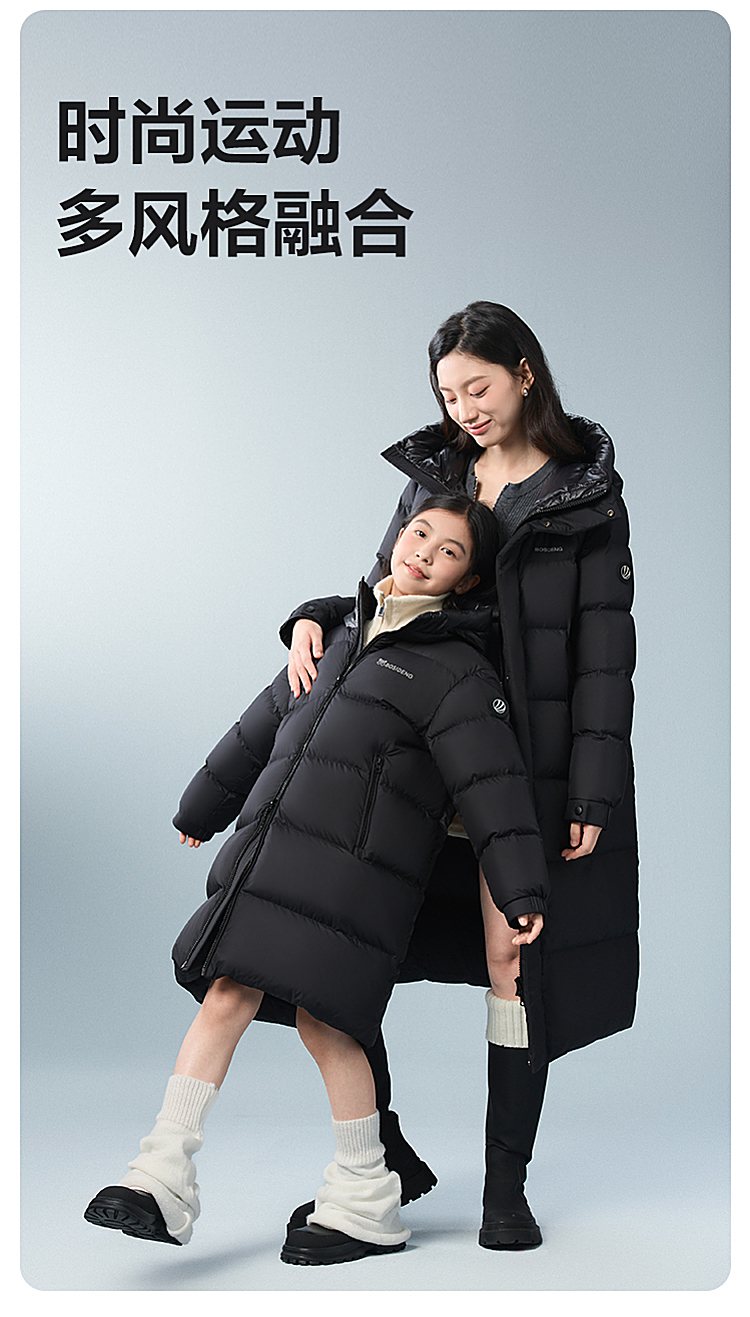 Bosideng Winter down Jacket for Men, Women, and Children, Fashionable, Sporty, Casual, Versatile, Long down Jacket with Hood, Warm