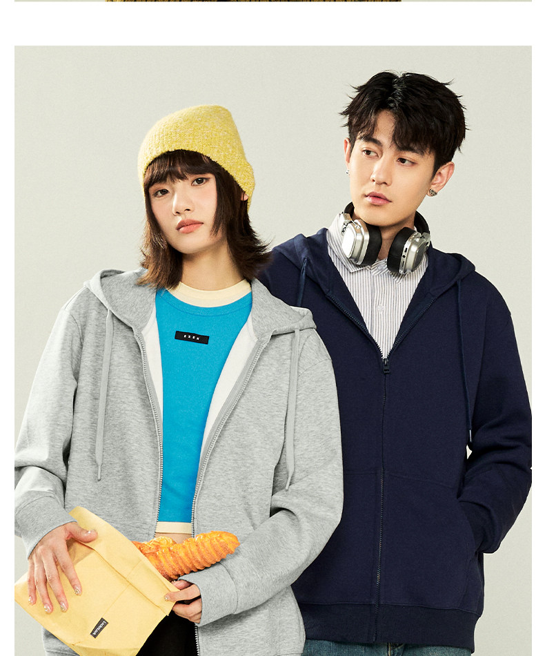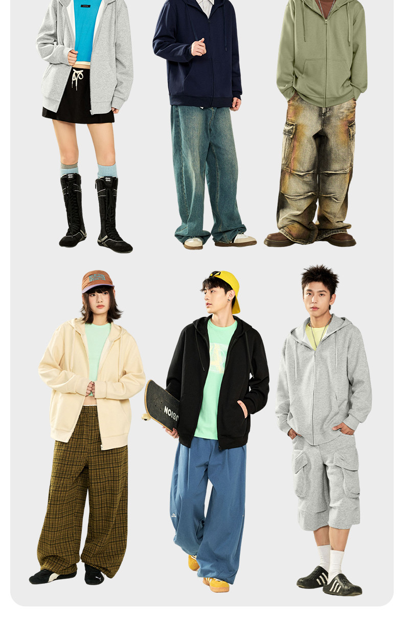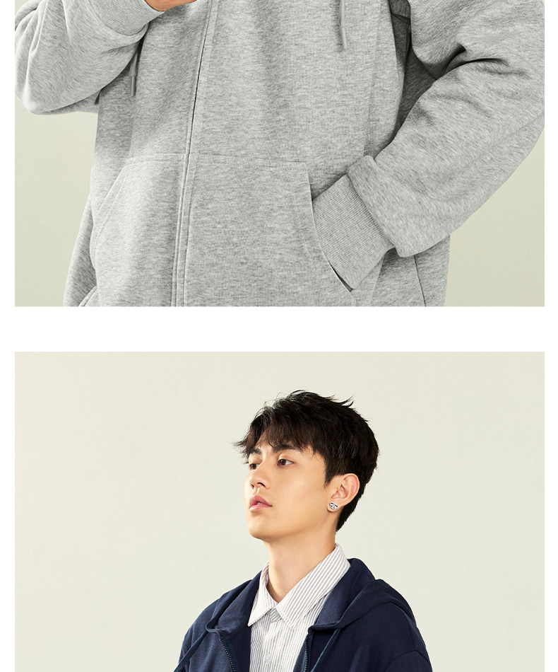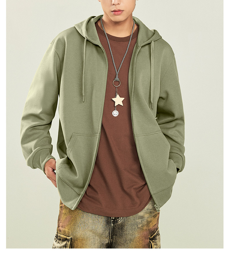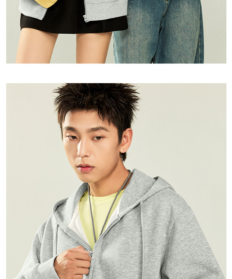 Jenilamo Cotton Casual Cardigan Suit for Men, Spring Light Gray Hooded Sweatshirt Jacket, Loose Fit Scimitar Pants