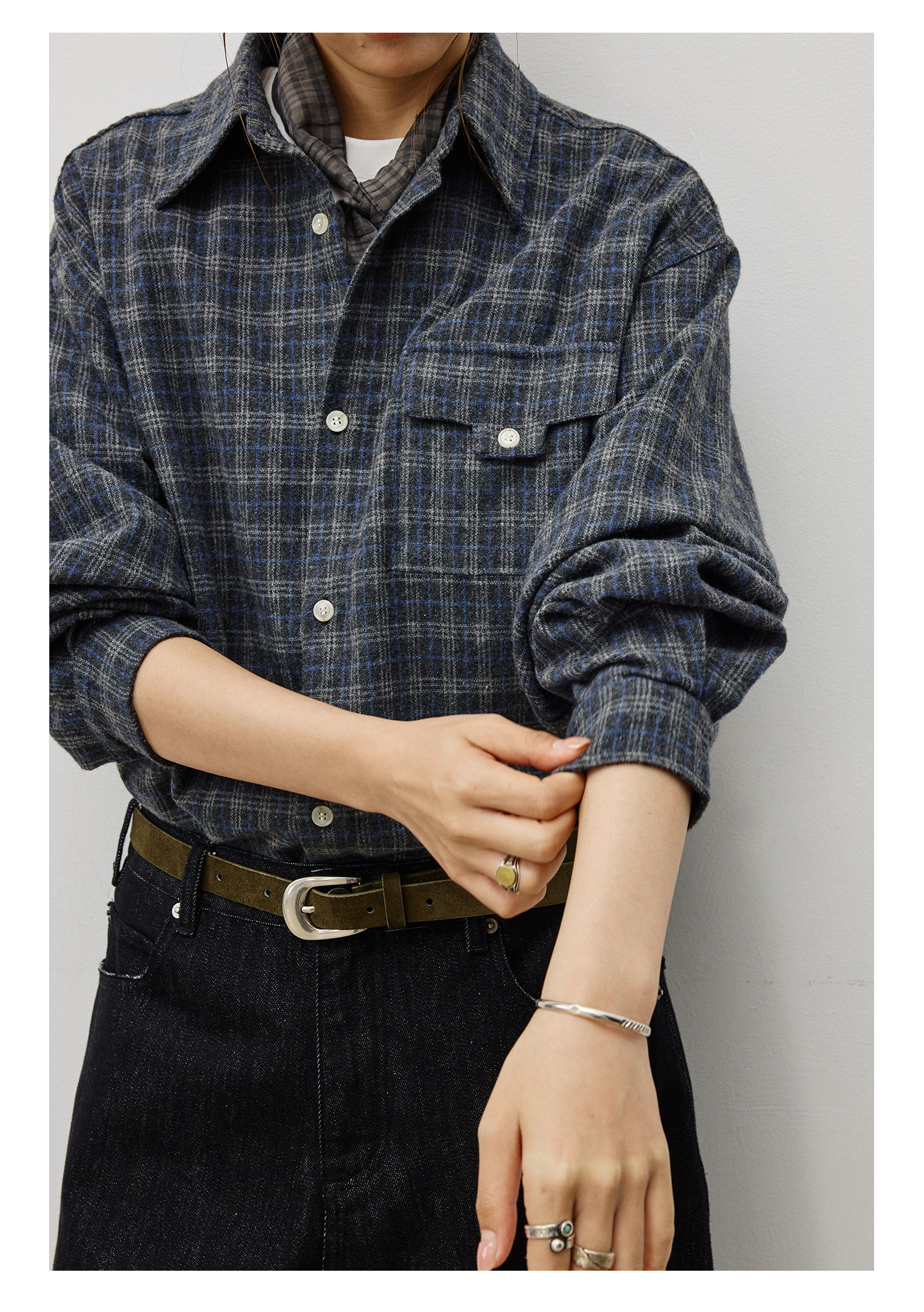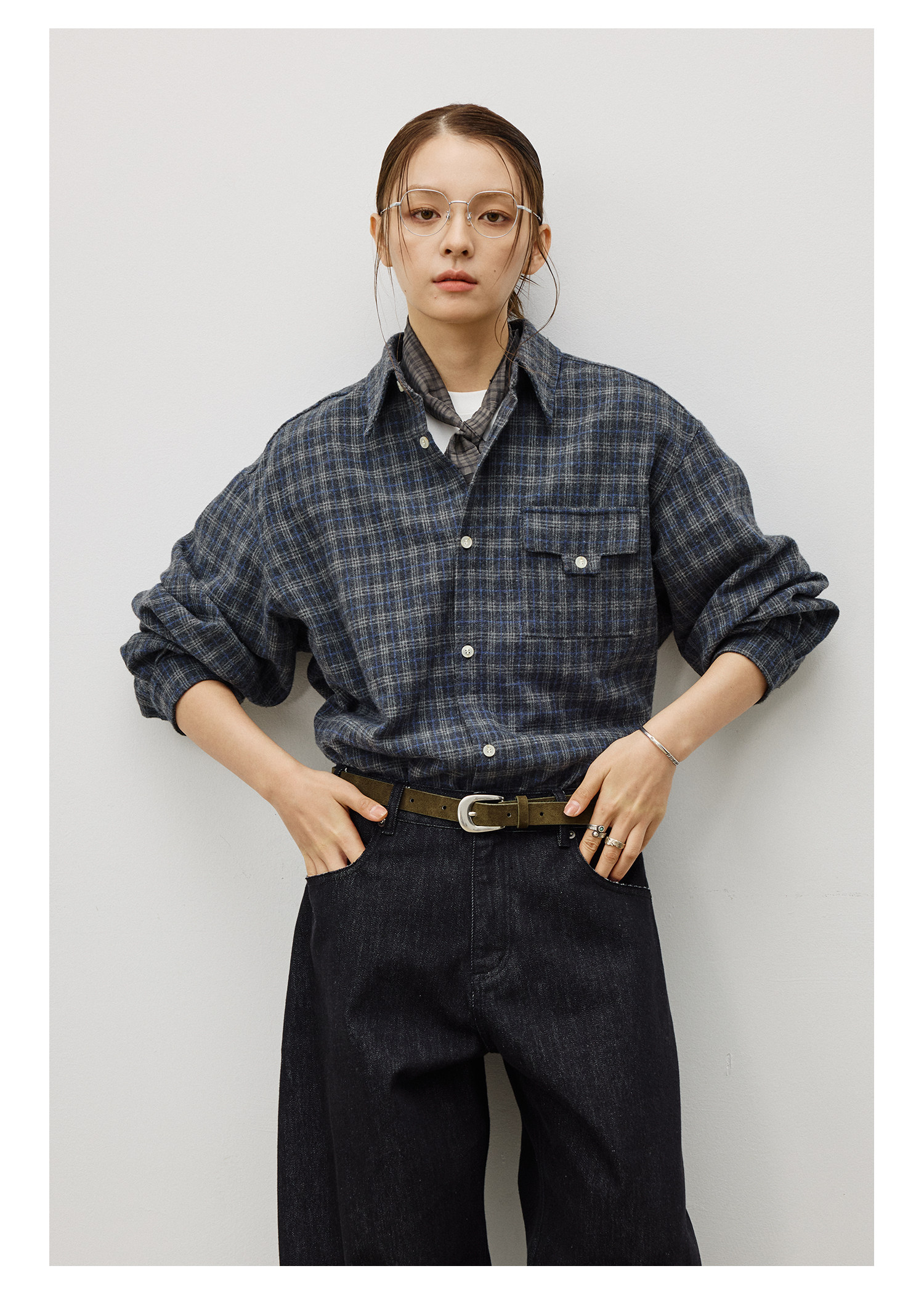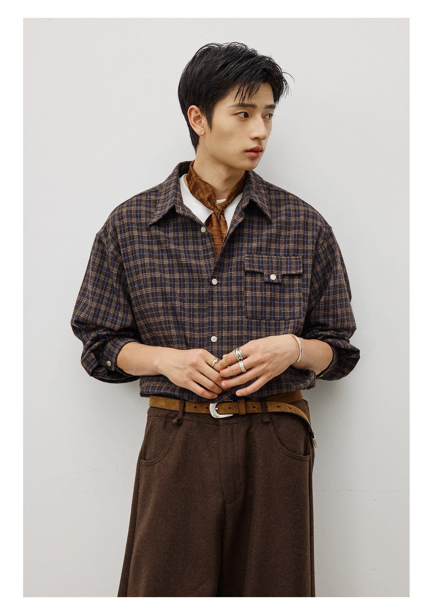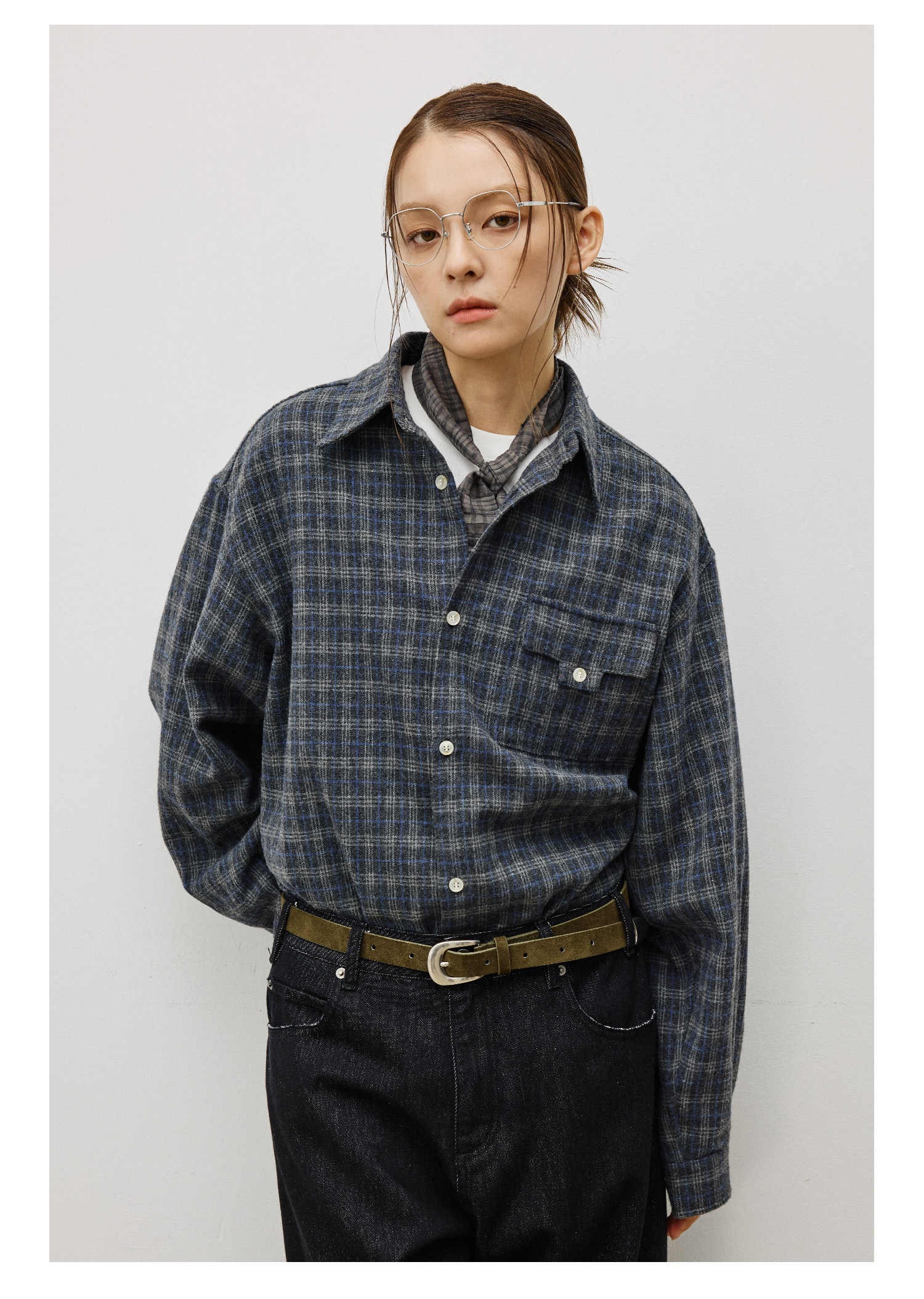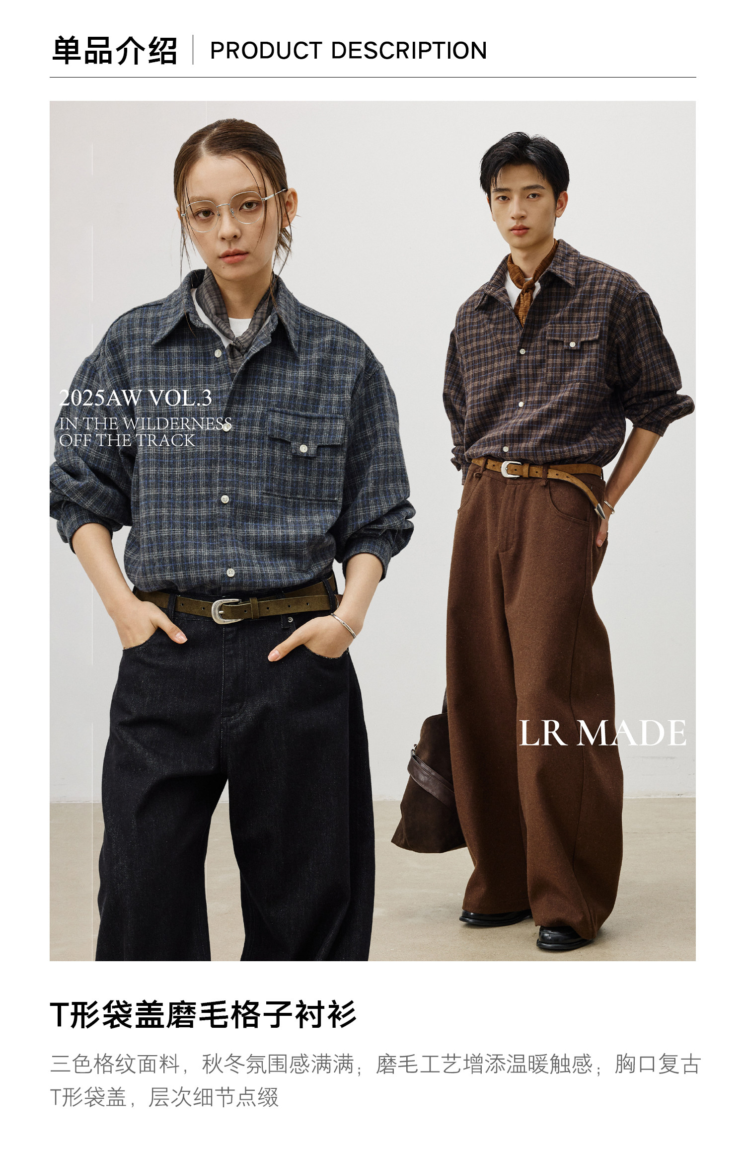 Lr Made 25Aw T-Shaped Flap Heavy Wool Vintage-Style Plaid Brushed Long-Sleeve Plaid Shirt