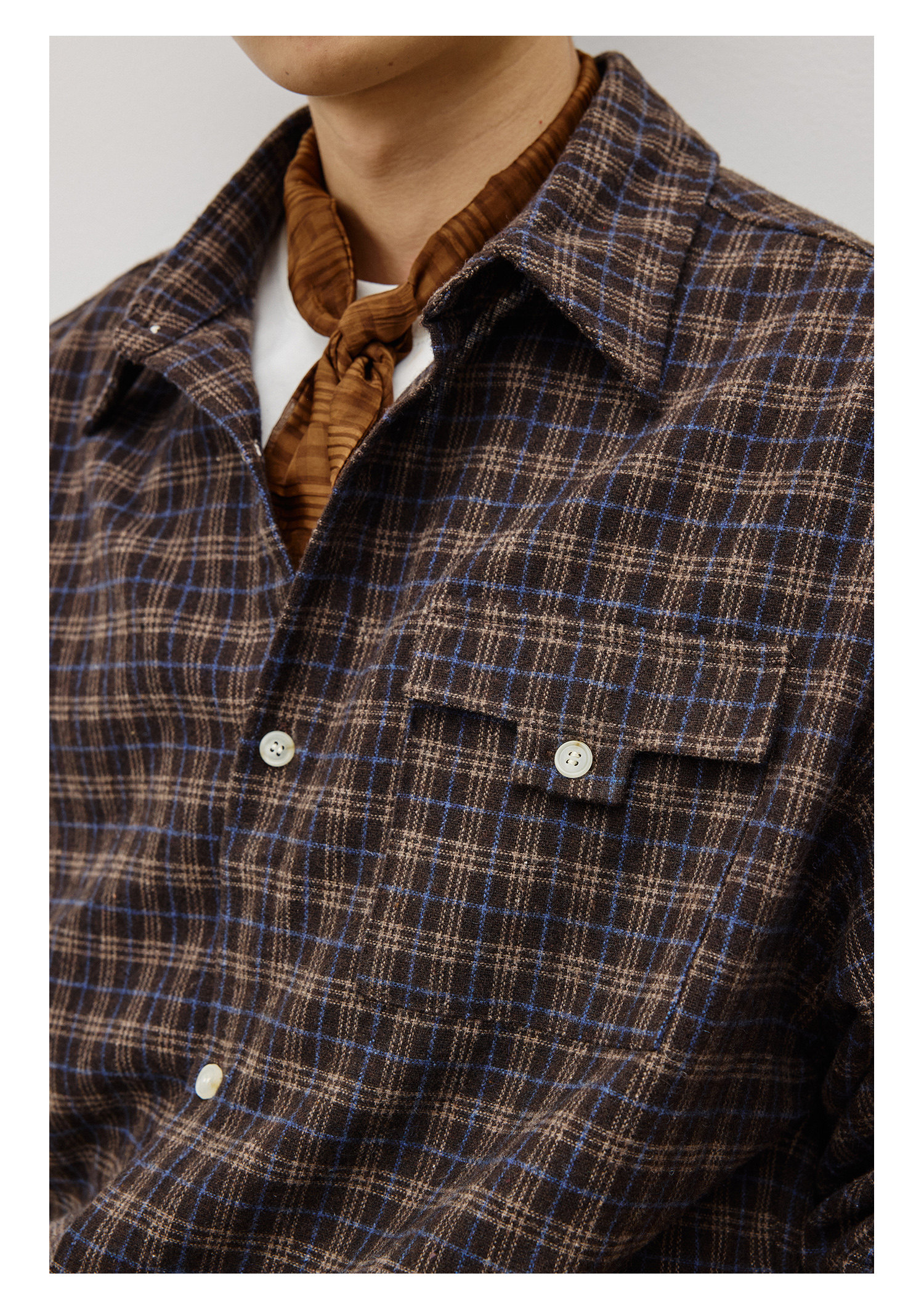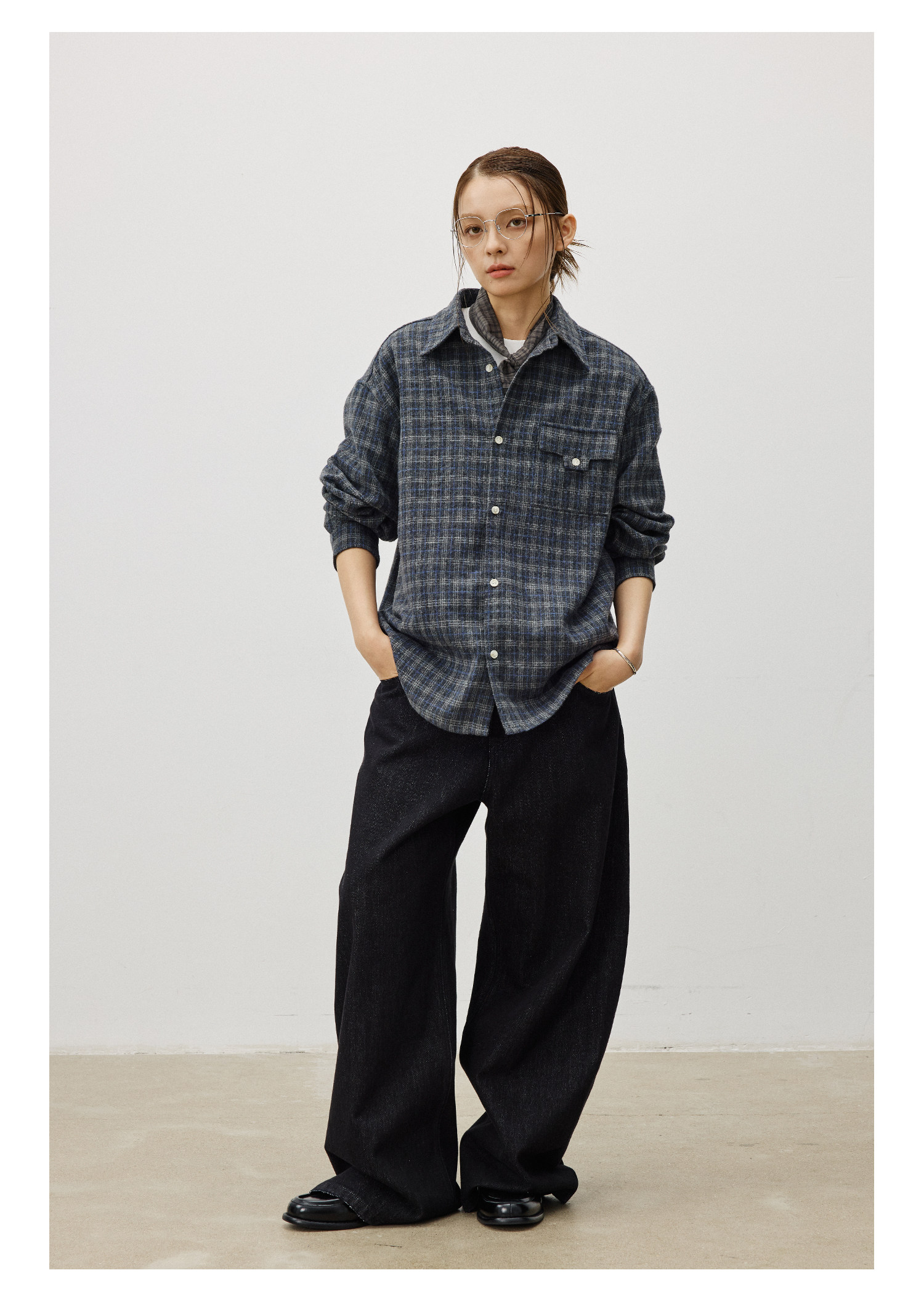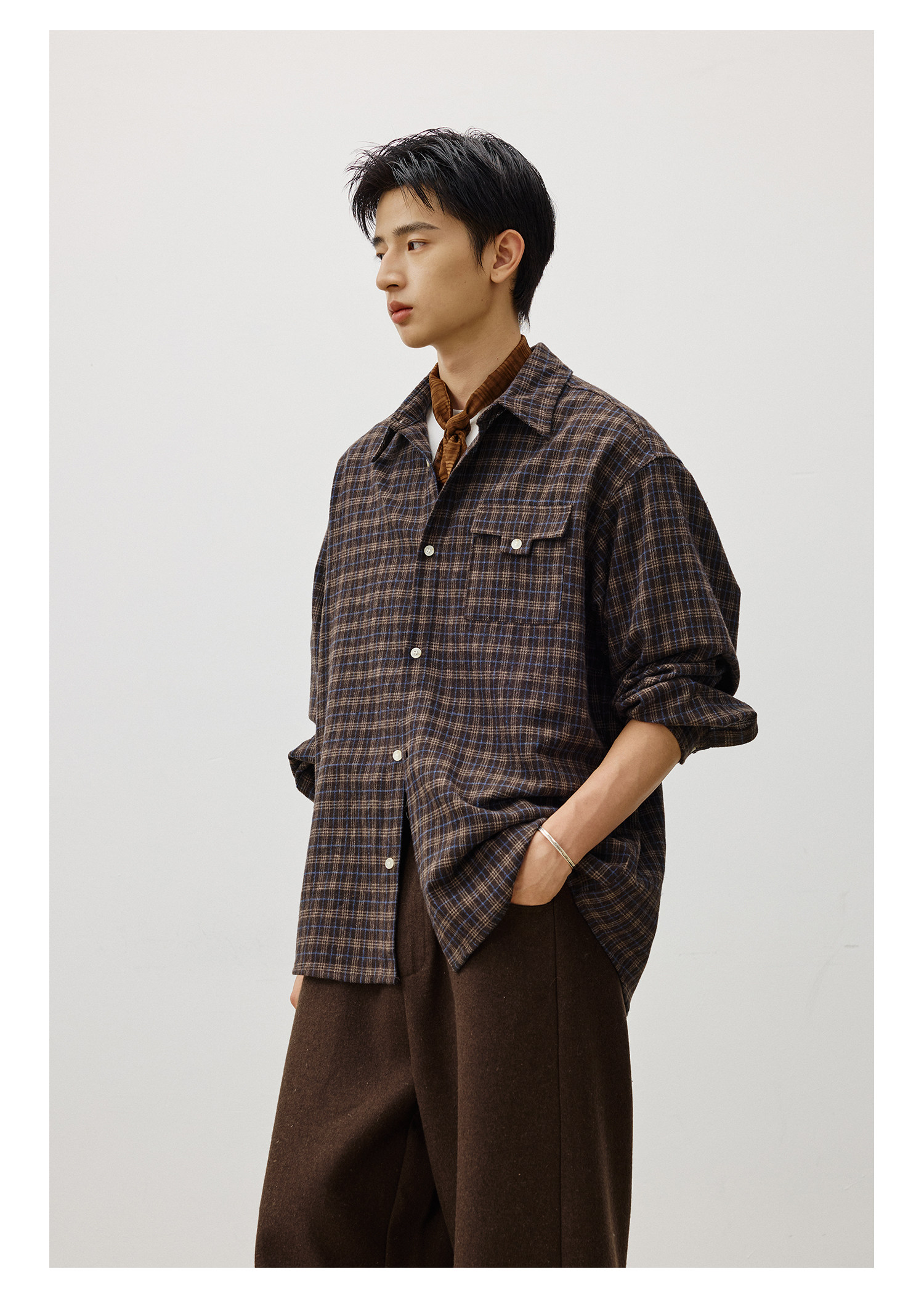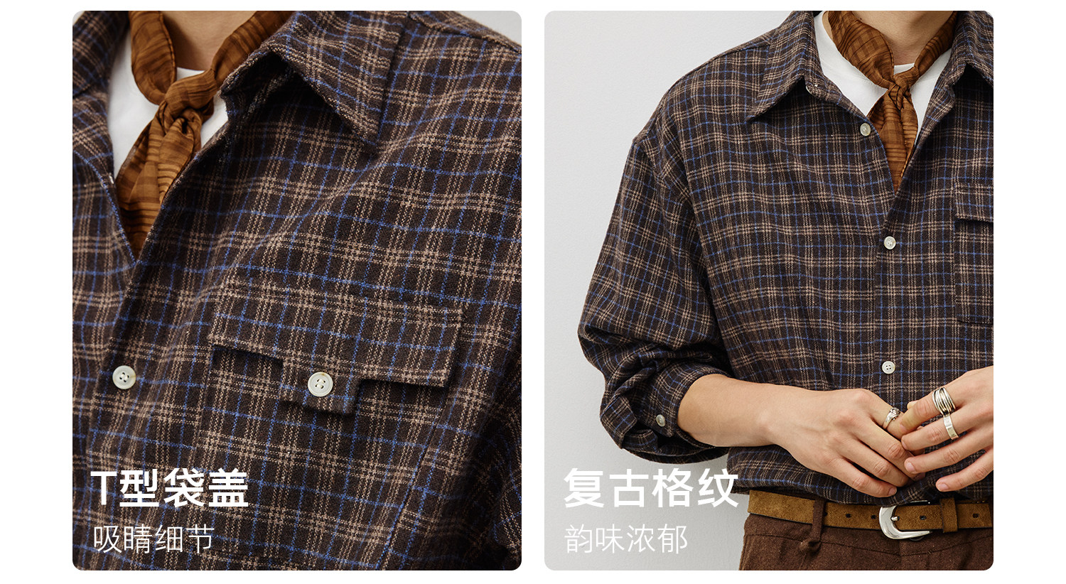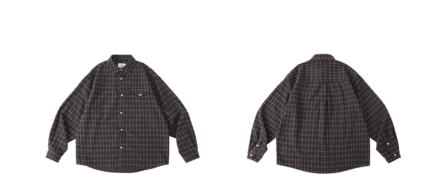 Lr Made 25Aw T-Shaped Flap Heavy Wool Vintage-Style Plaid Brushed Long-Sleeve Plaid Shirt