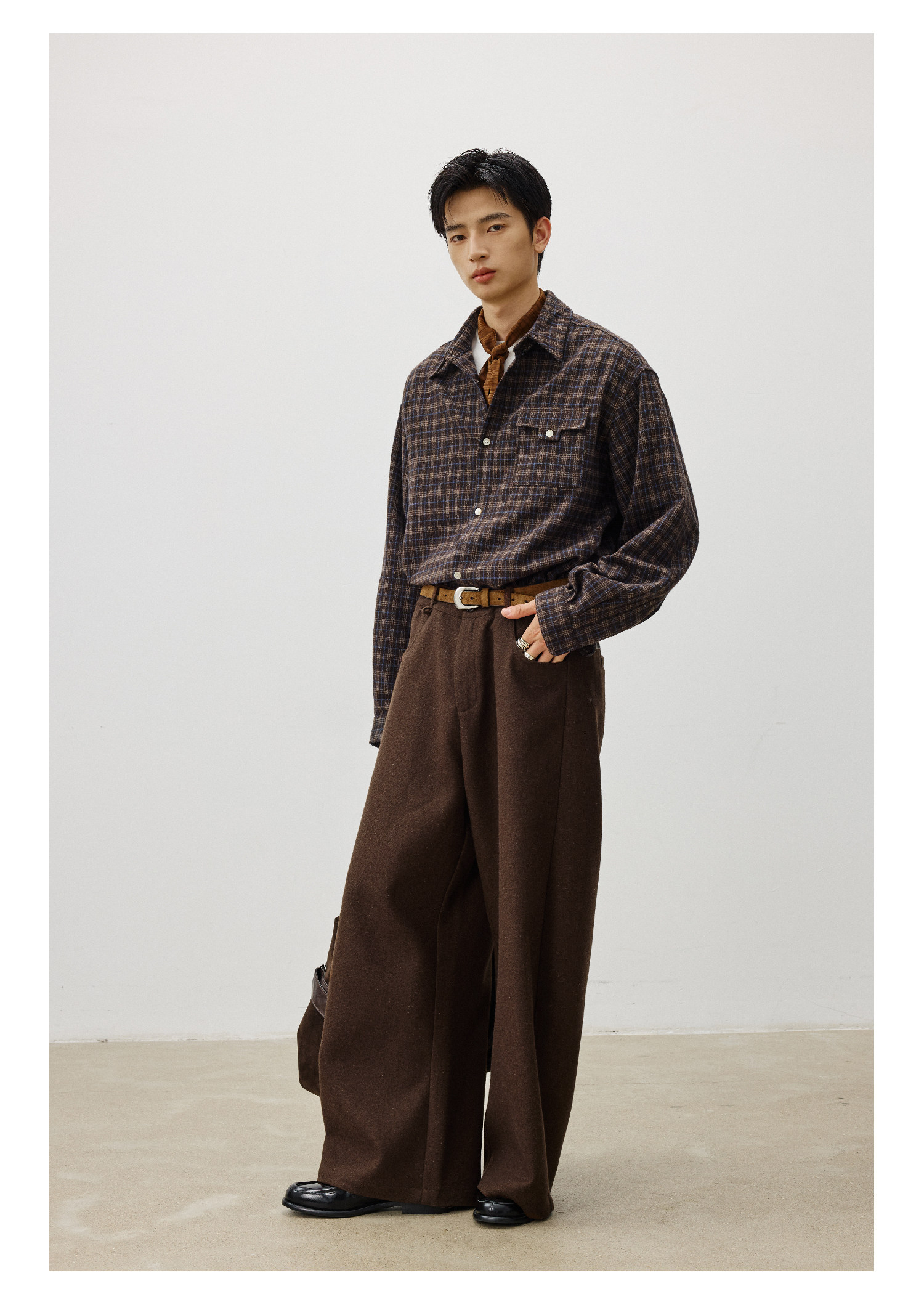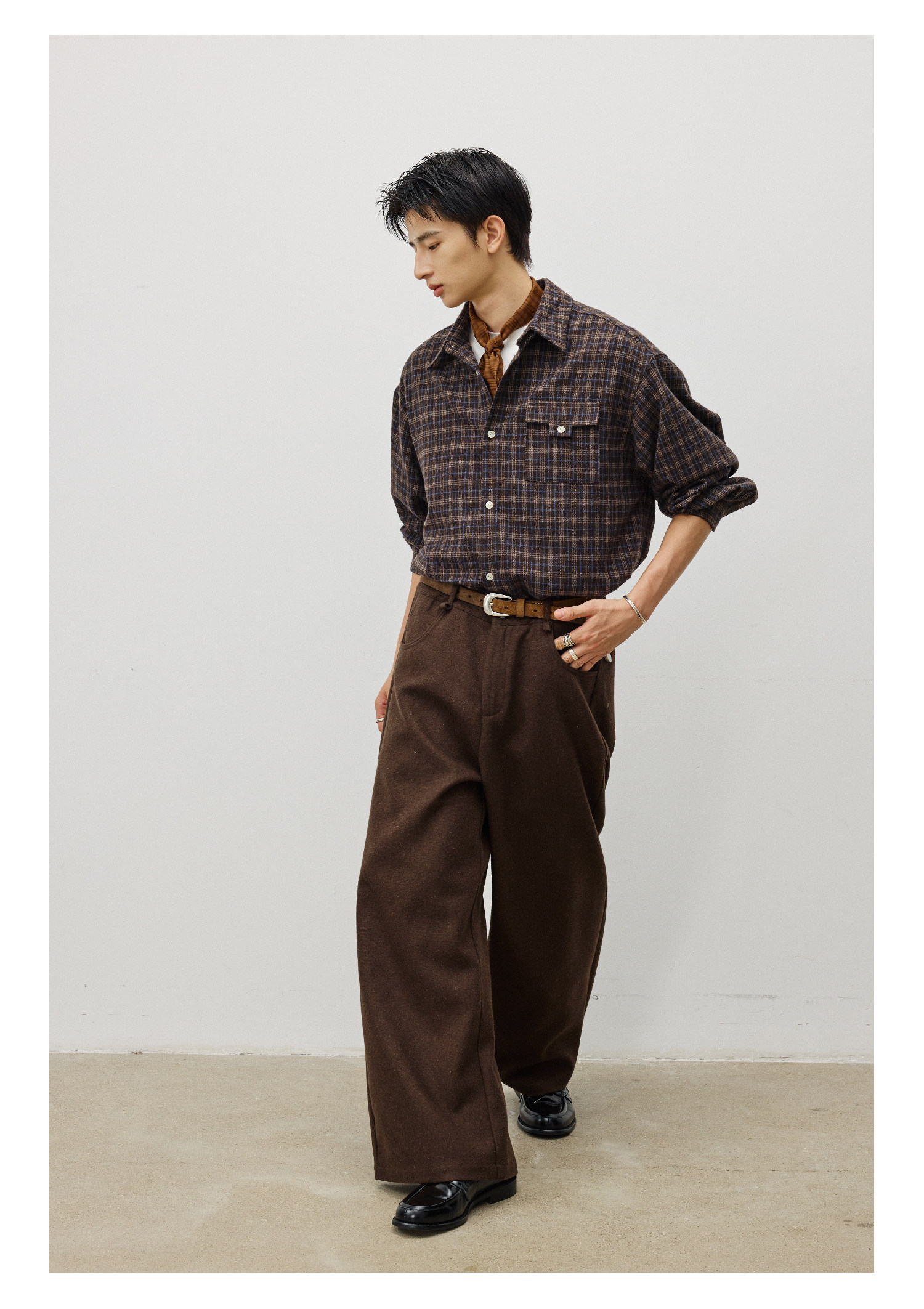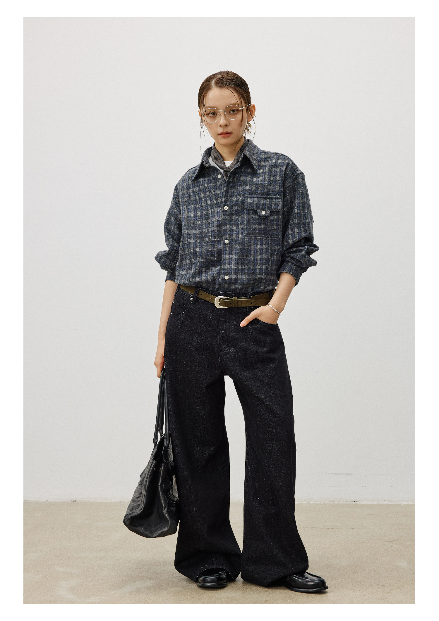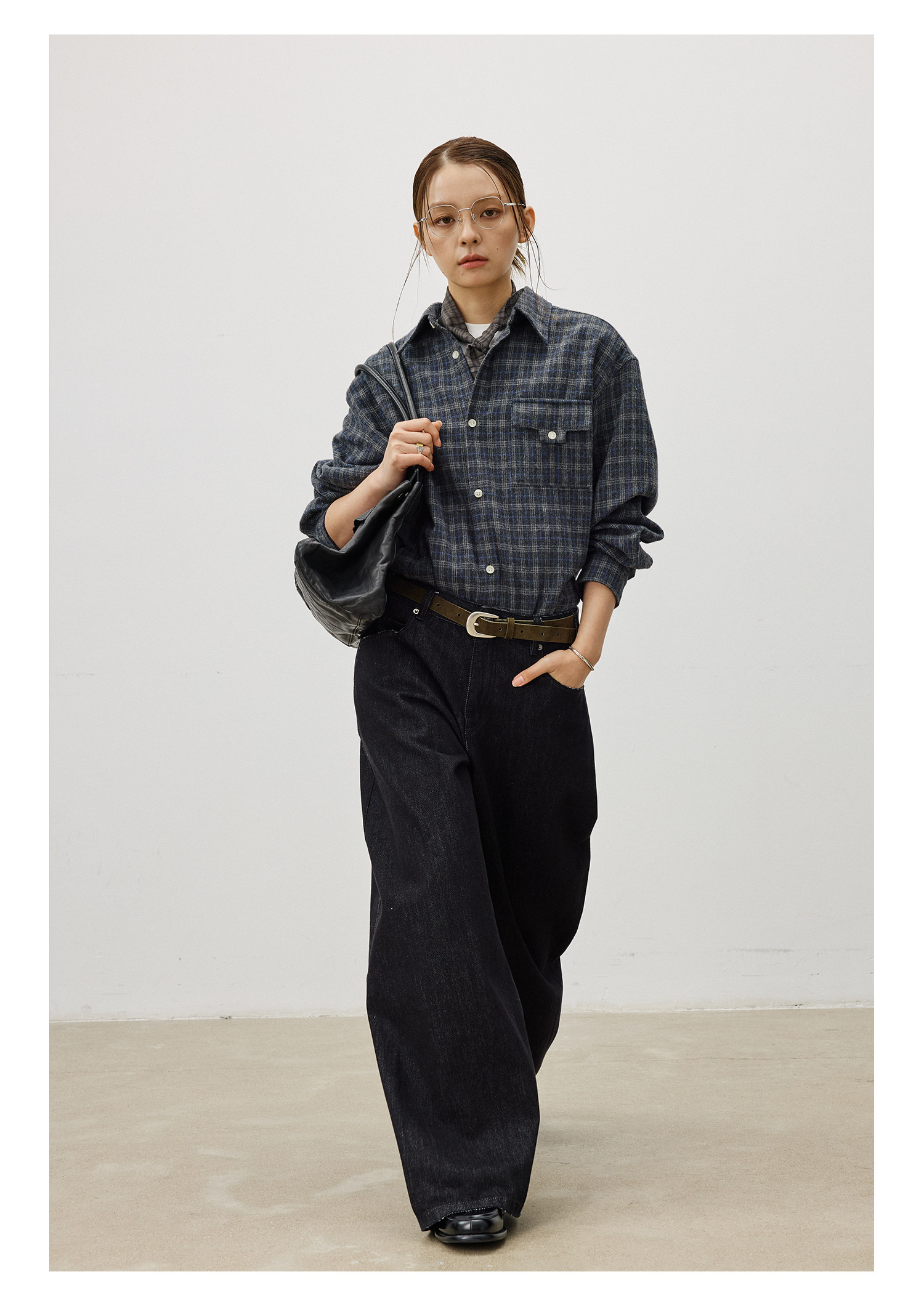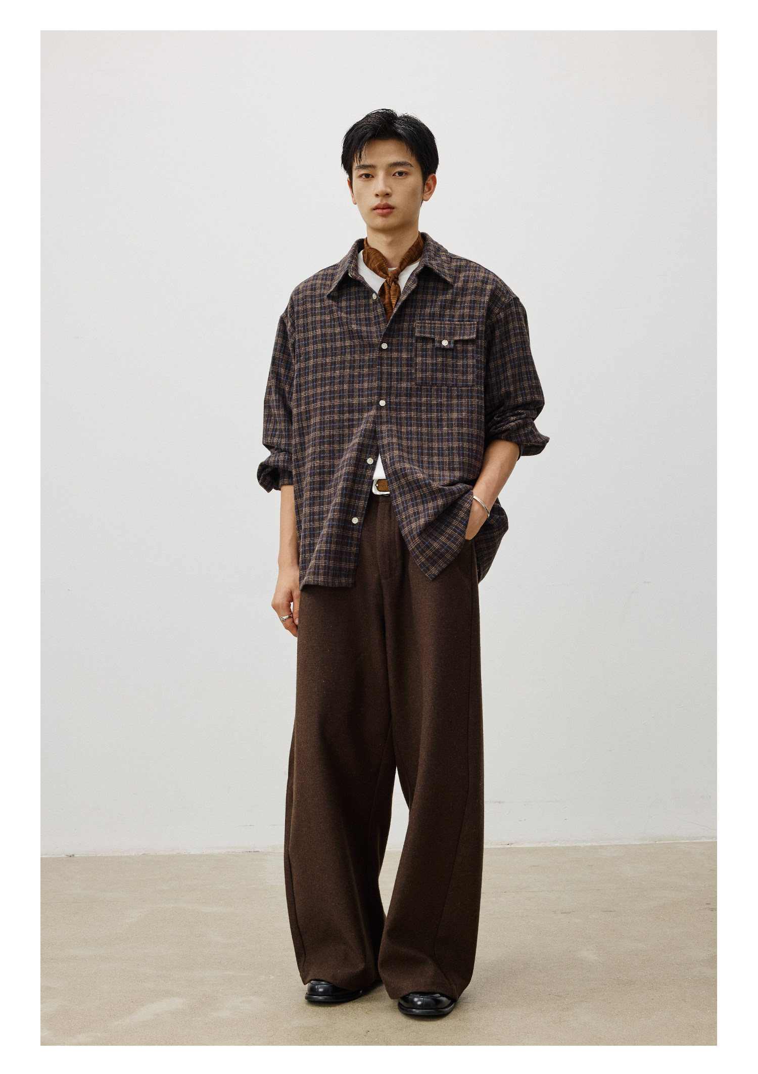 Lr Made 25Aw T-Shaped Flap Heavy Wool Vintage-Style Plaid Brushed Long-Sleeve Plaid Shirt