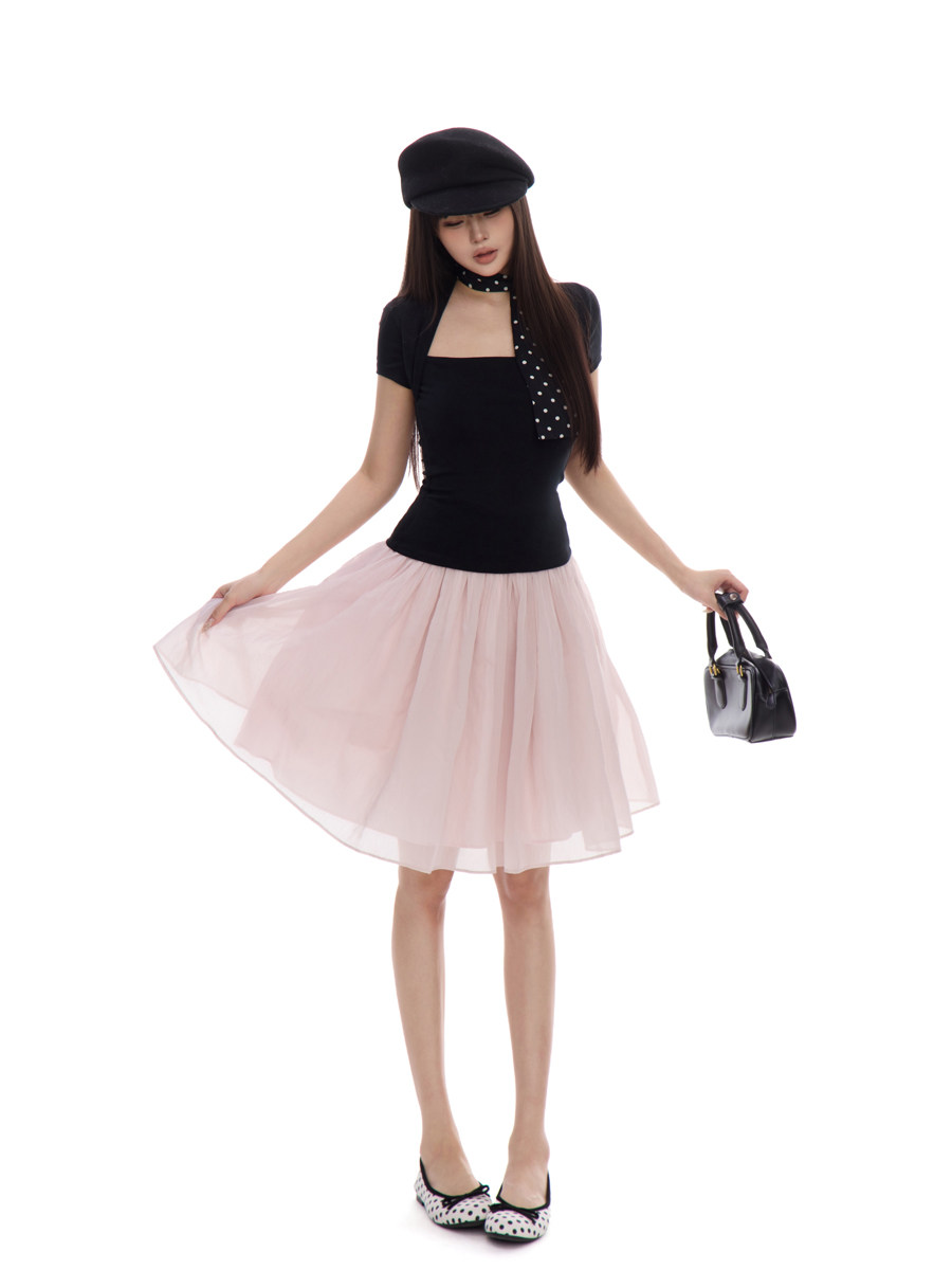Withmin Black Short-Sleeve T-Shirt for Women, 2026 Summer New Slim-Fit Square-Neck Base Shirt Top