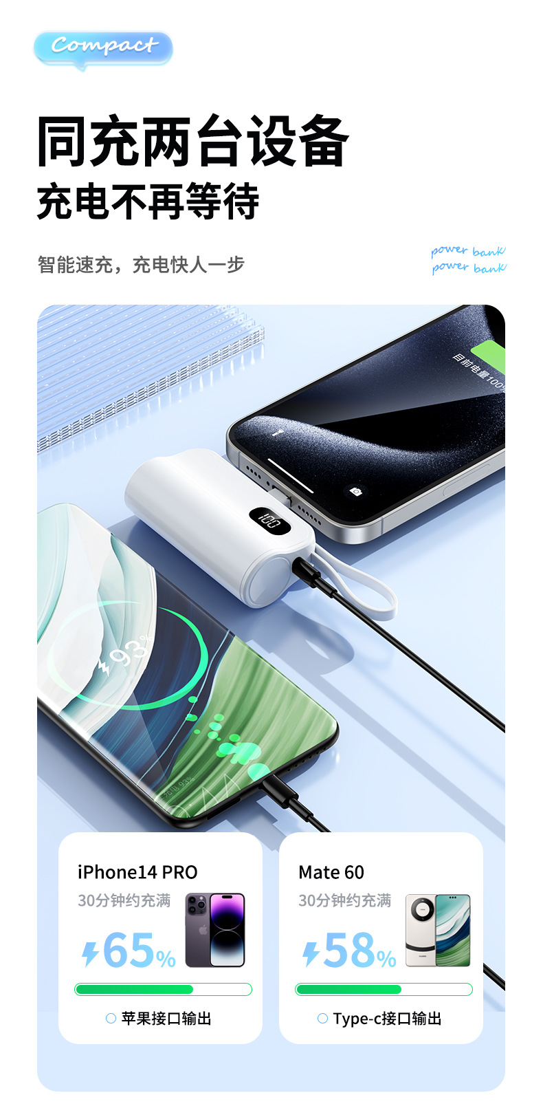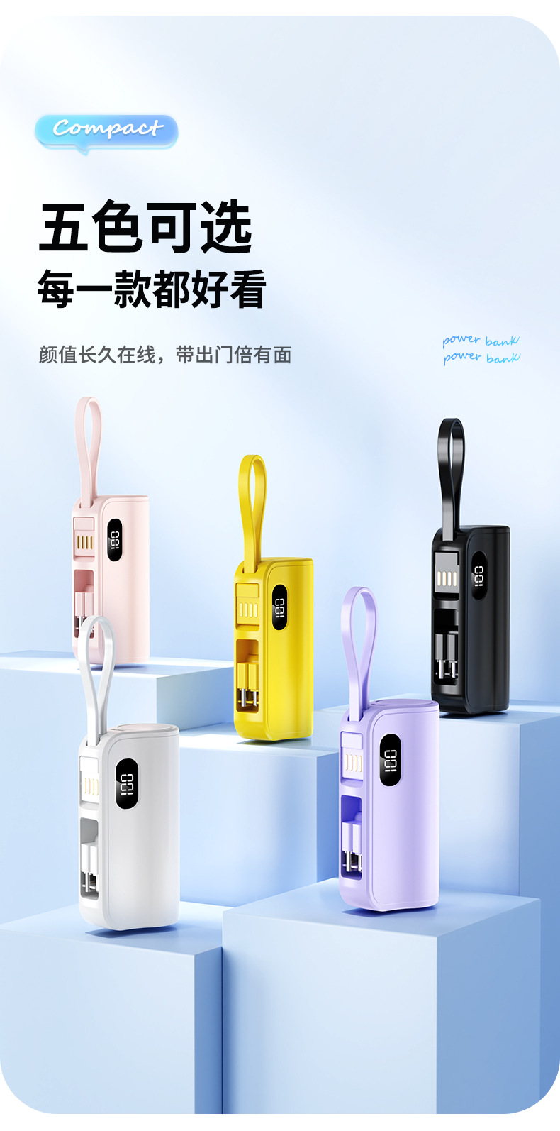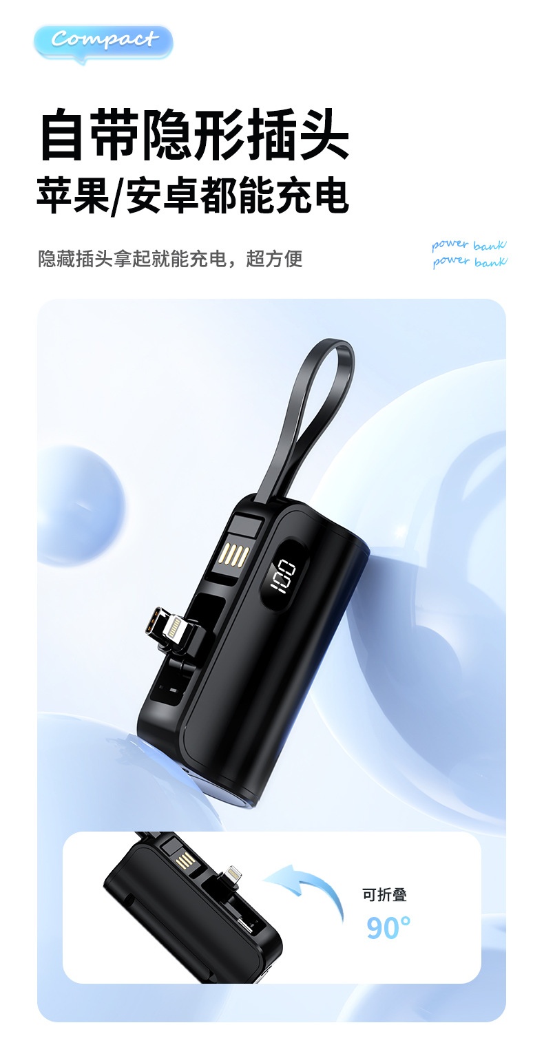 New arrival Capsule Charging Treasure Hidden Double Plug Small Self-belt Line Movable Power Supply logo Printing Fast Charging