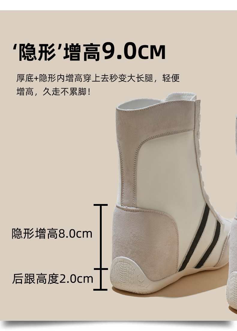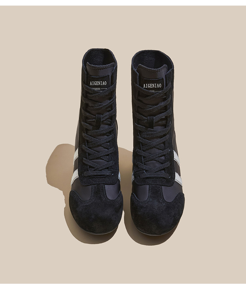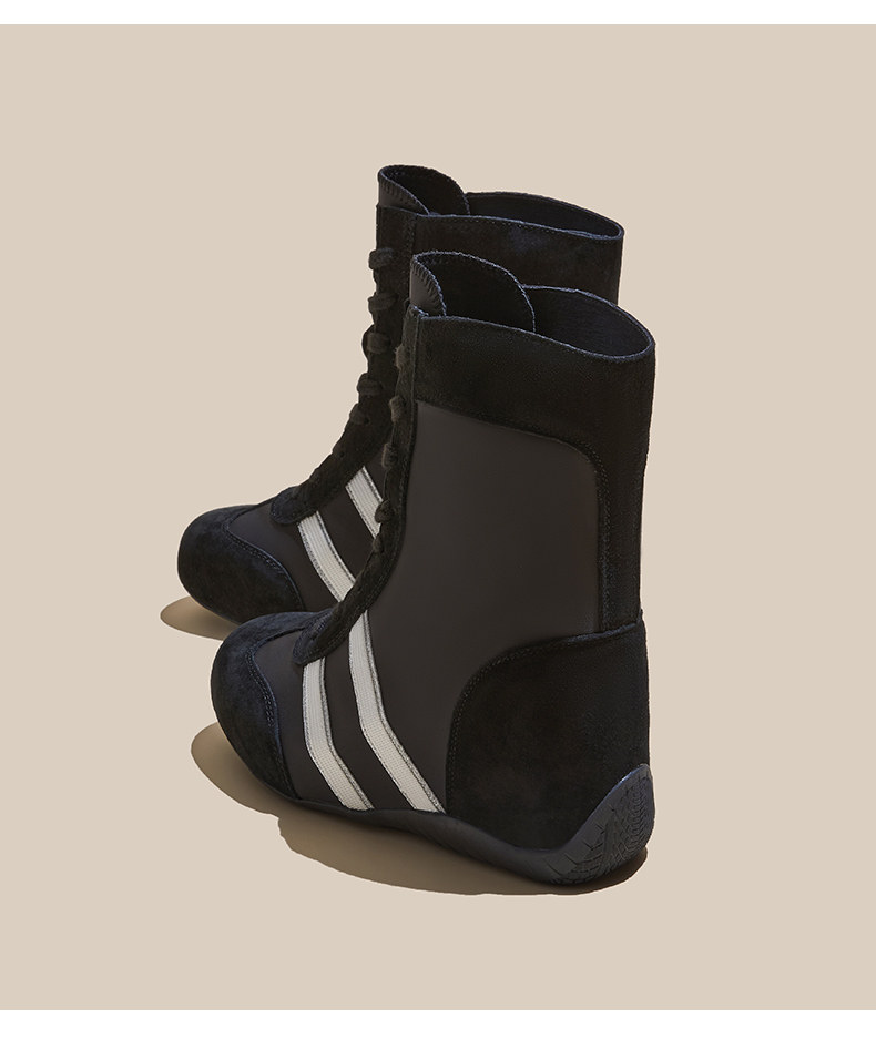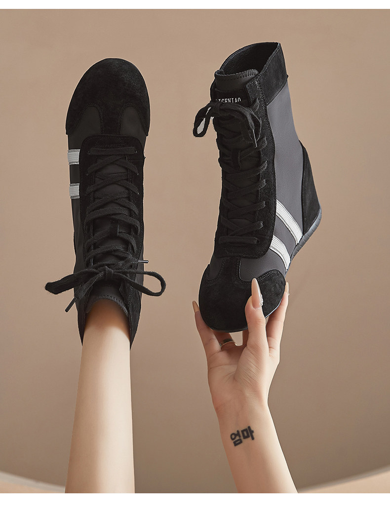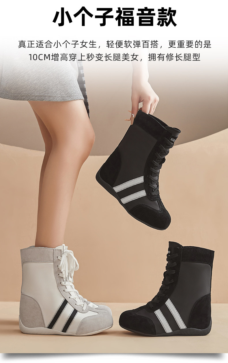 Thick-Soled Height-Increasing 10cm Black Racing Shoes for Women, 2026 Spring New Style, Super Popular High-Top German Training Shoes for Petite Individuals