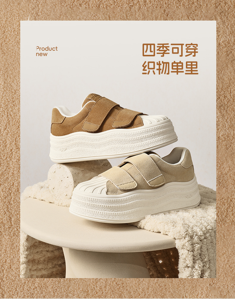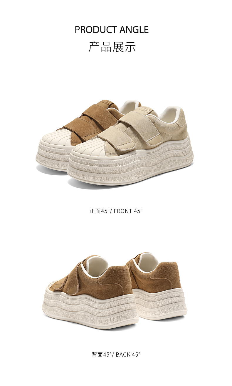 Belle Retro White Sneakers New Cotton Shoes with Plush Lining, Thick Soles, Height-Increasing Shell Toe Furry Loafers B2919C