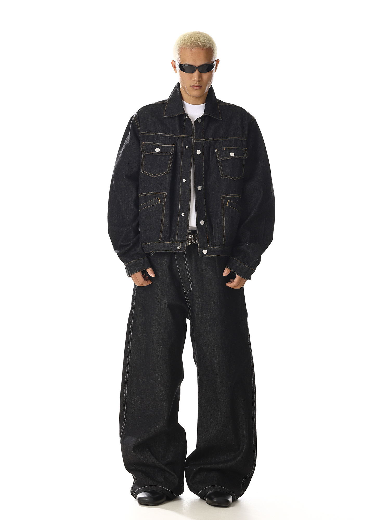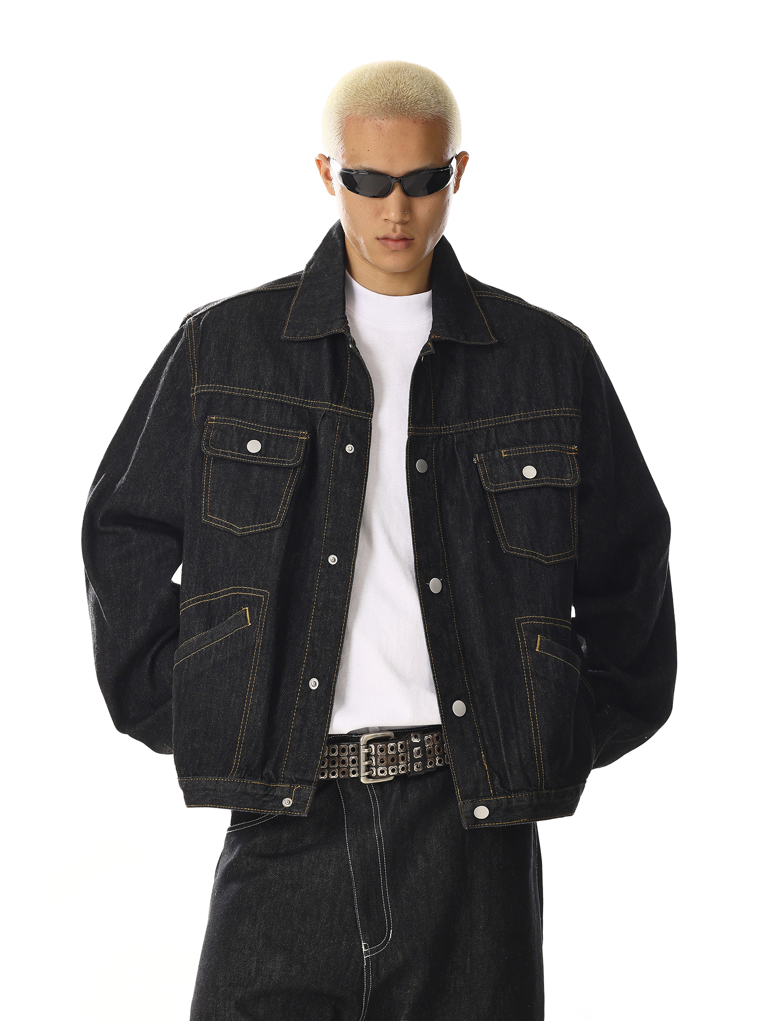 American Retro Design Original Color Denim Jacket Loose Fit Versatile Regular Shoulder Pocket Cleanfit Jacket Top for Men