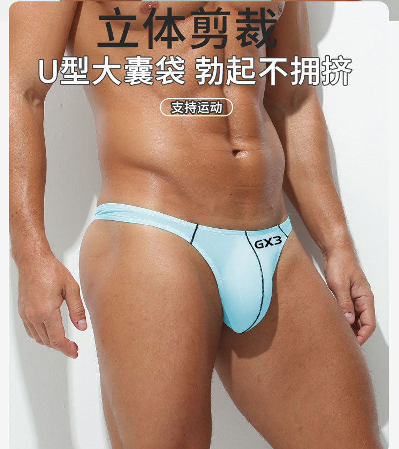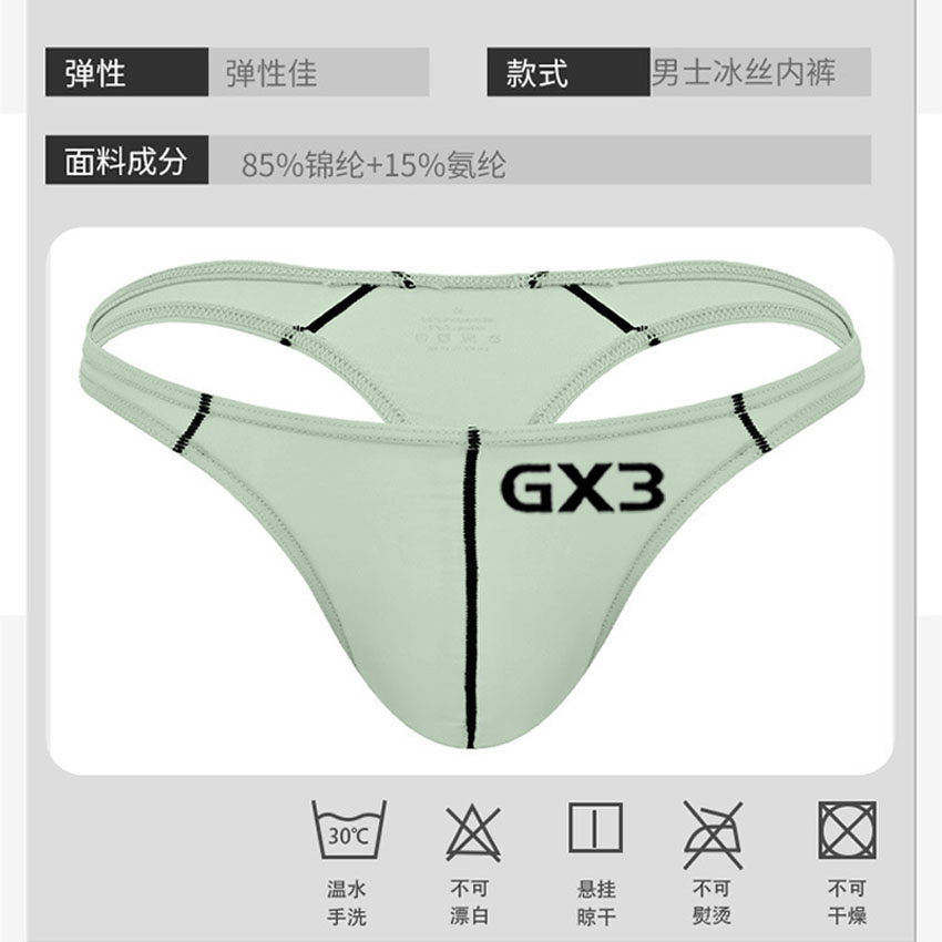 Gx3 Japanese Men's Sexy Ice Silk Seamless Thong Low-Rise Pure Desire T-Pants Fitness Sports Men's Single Thong Underwear