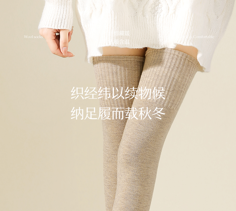 Wool Knee Socks for Women, Autumn and Winter, Extra Long Over-The-Knee Anti-Slip Thigh Socks, Maternity Warm Knee Leg Warmers, Long Tube