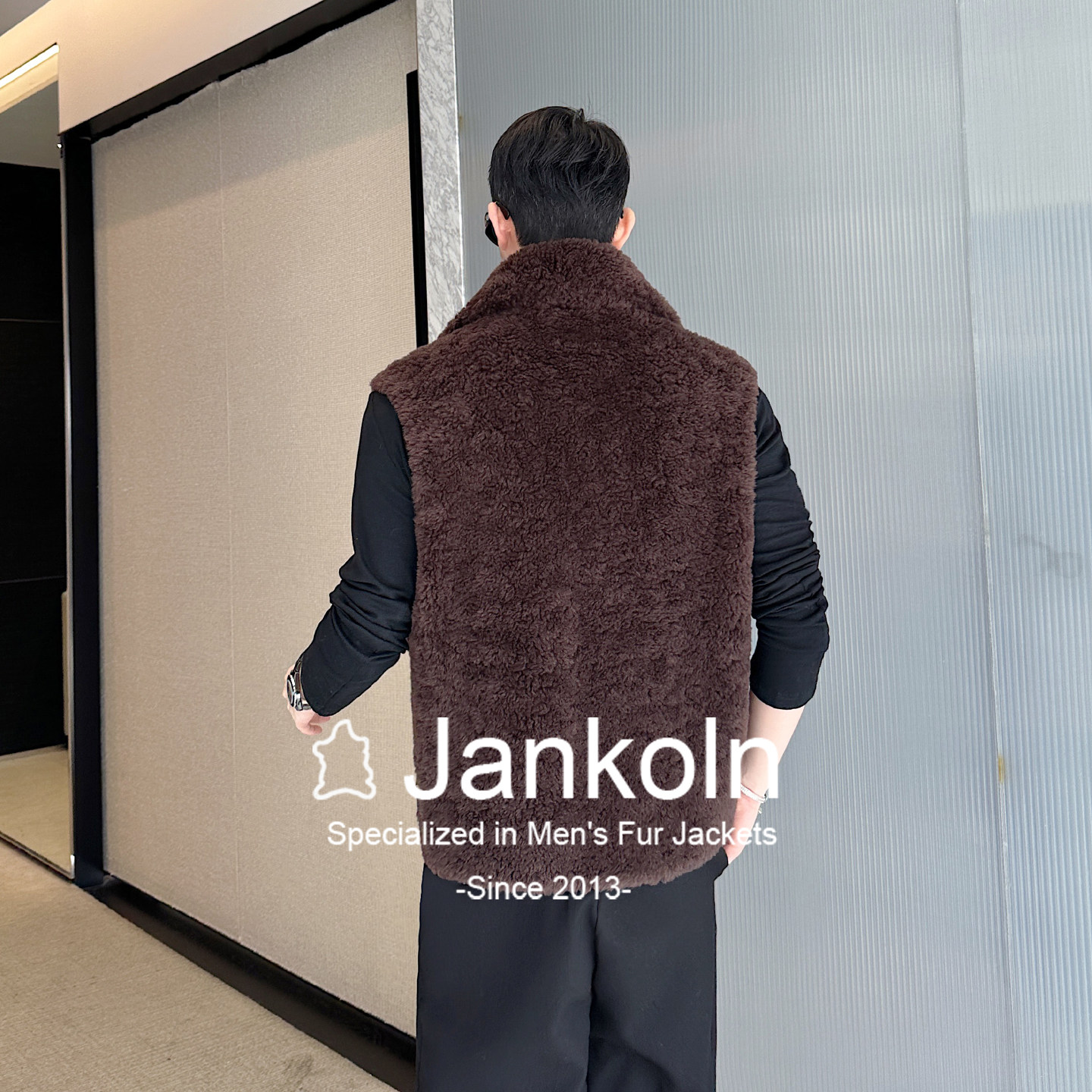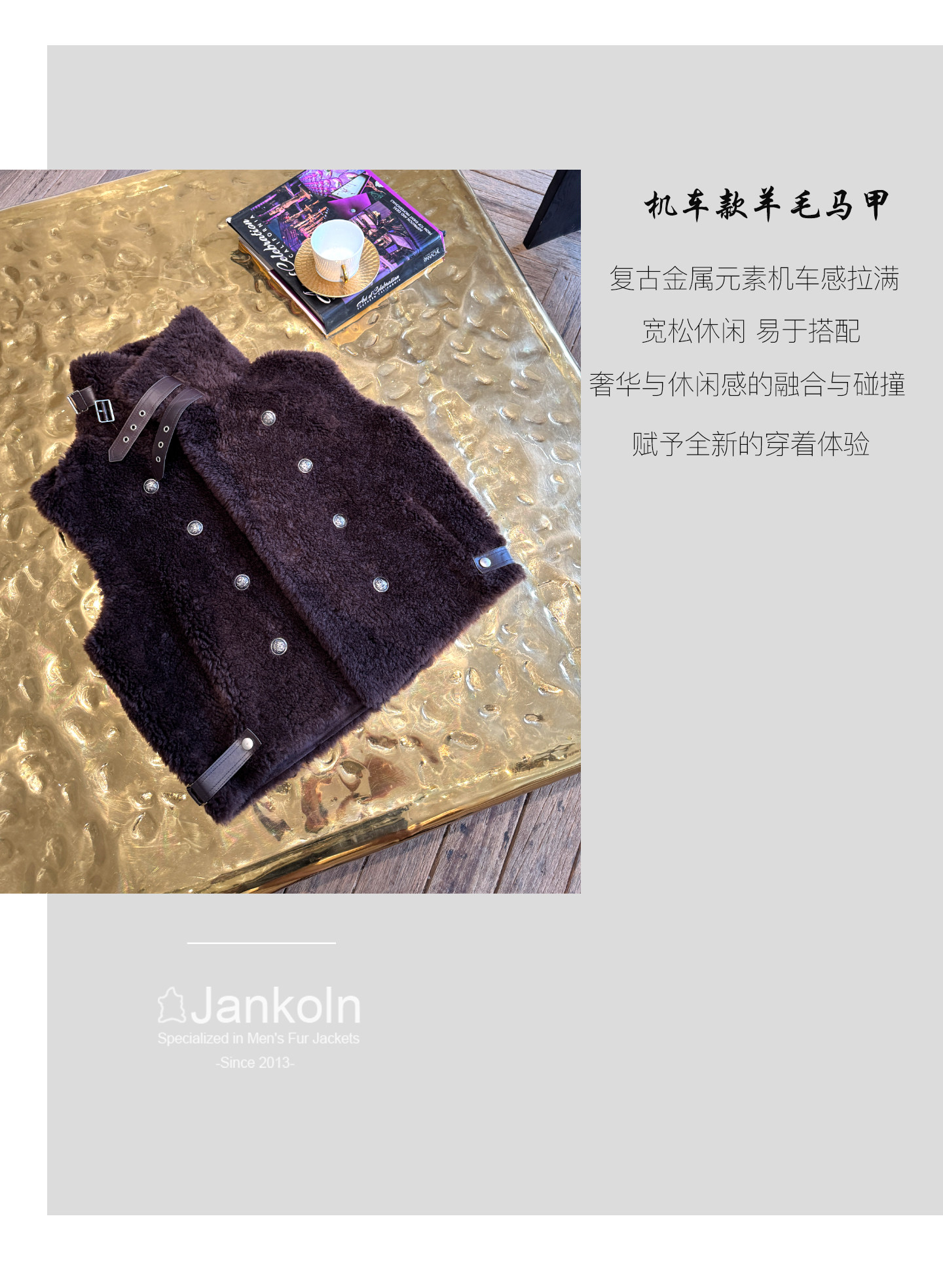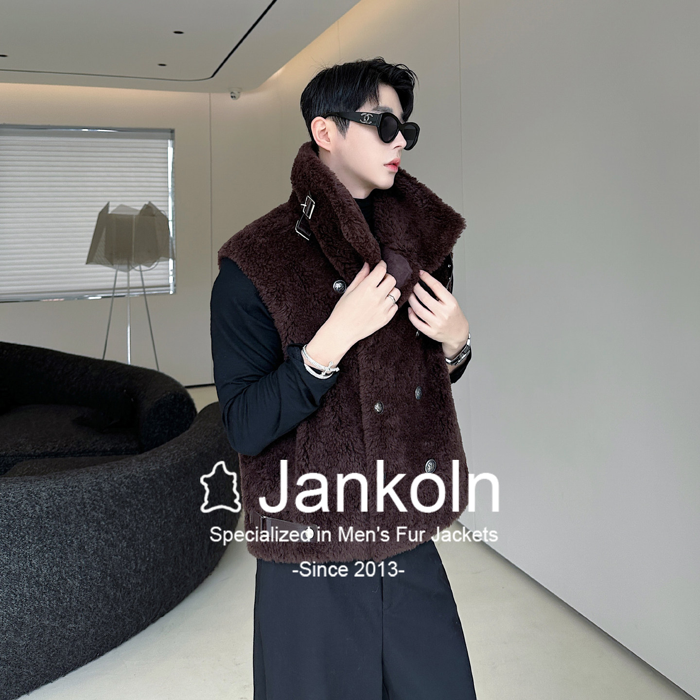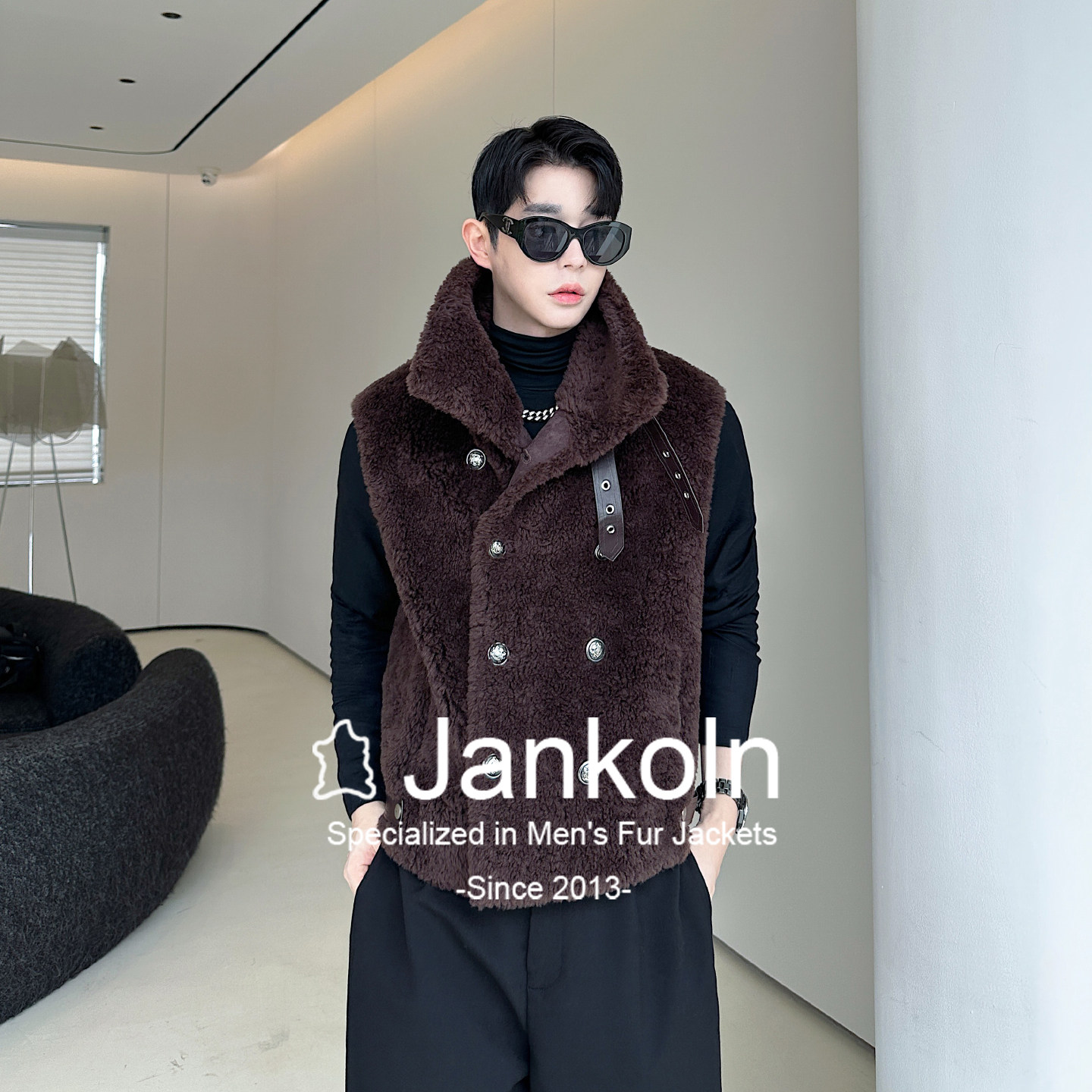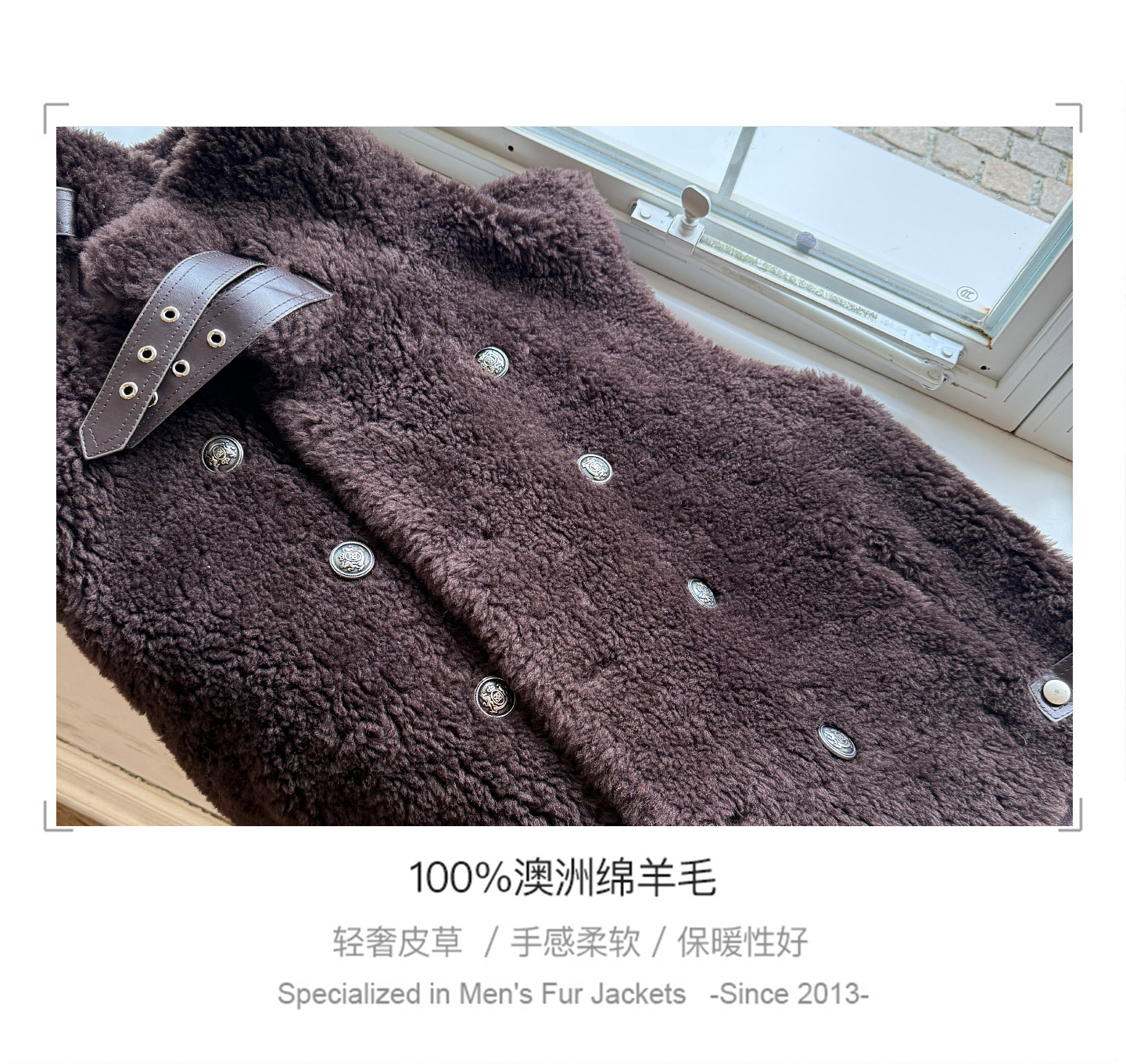 Melard-Colored Lamb Wool Men's Fur Vest, Non-Leather Integrated Men's Motorcycle Short Vest for Autumn and Winter