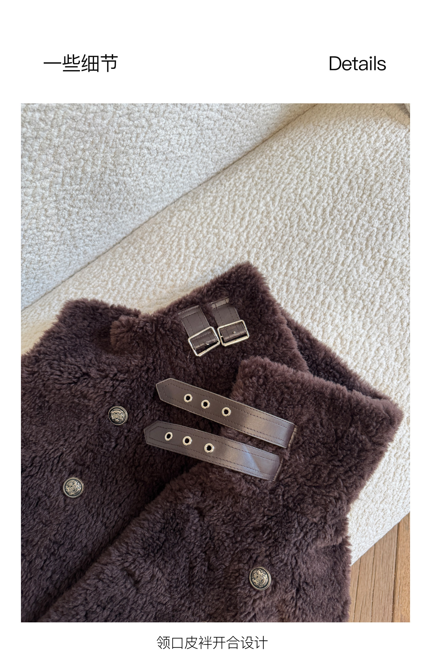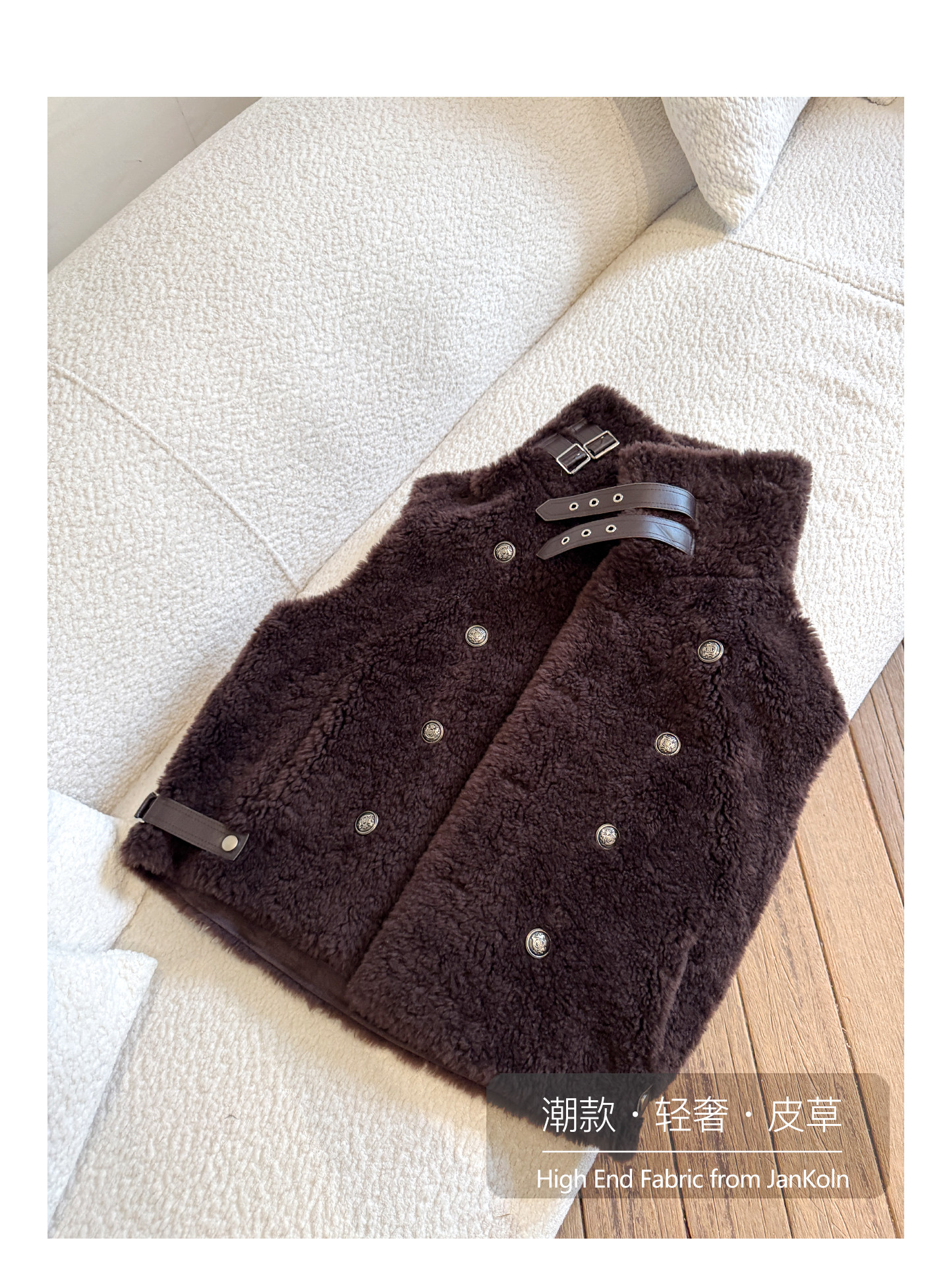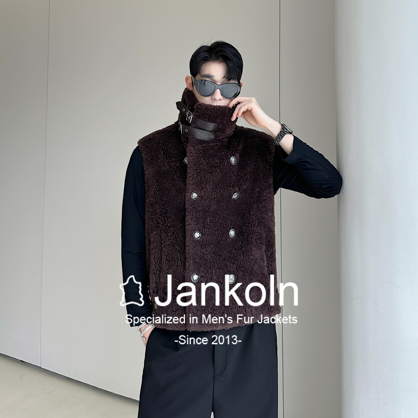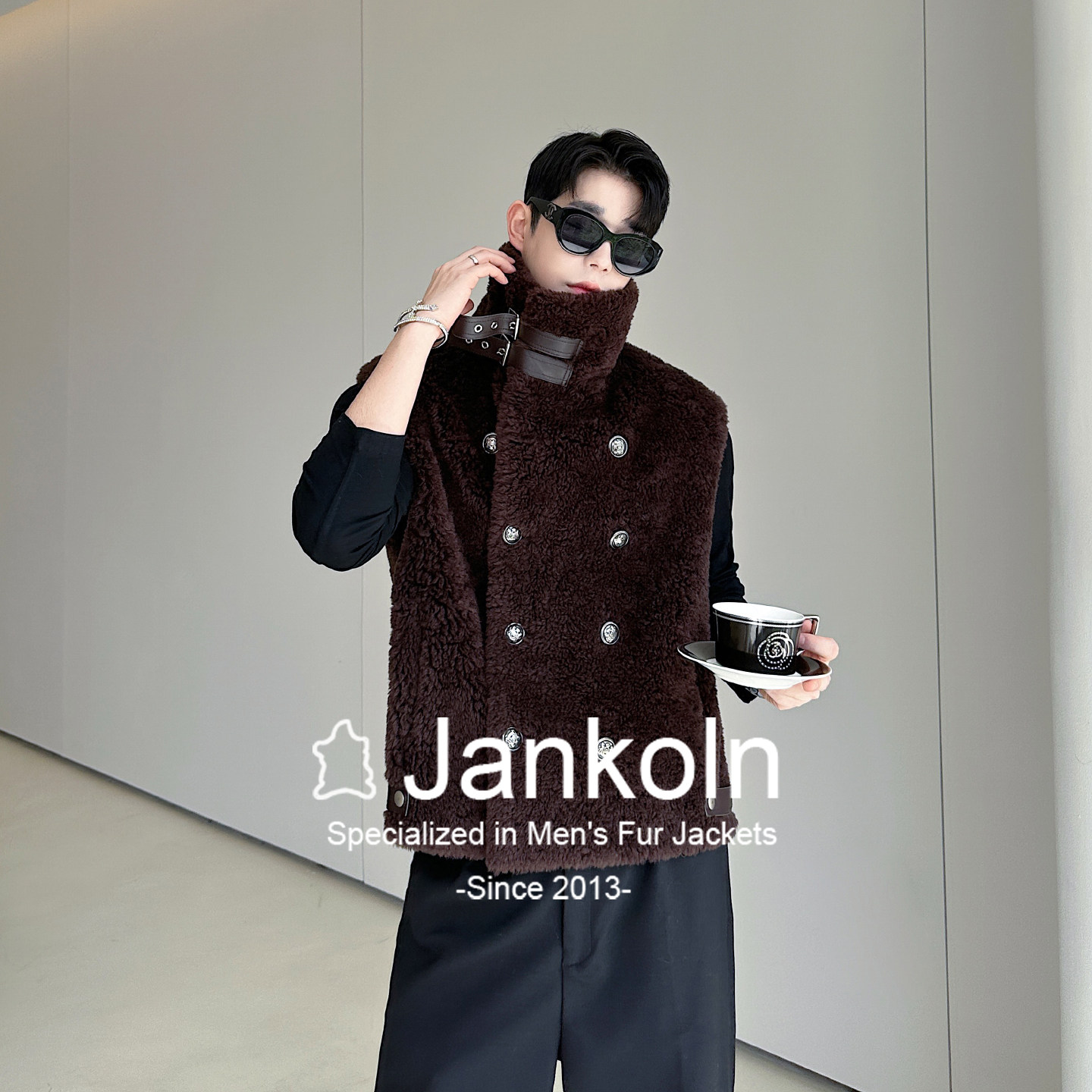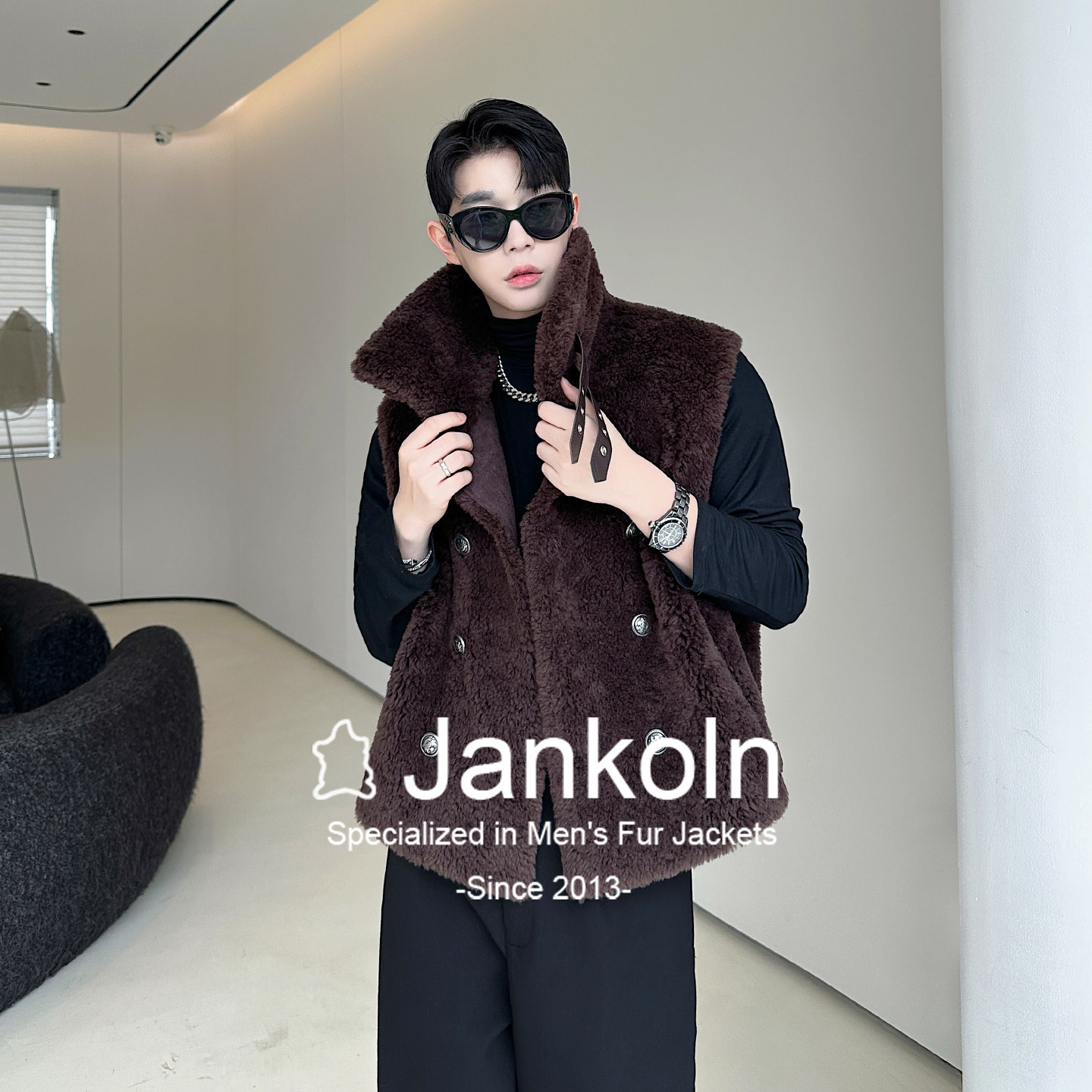 Melard-Colored Lamb Wool Men's Fur Vest, Non-Leather Integrated Men's Motorcycle Short Vest for Autumn and Winter