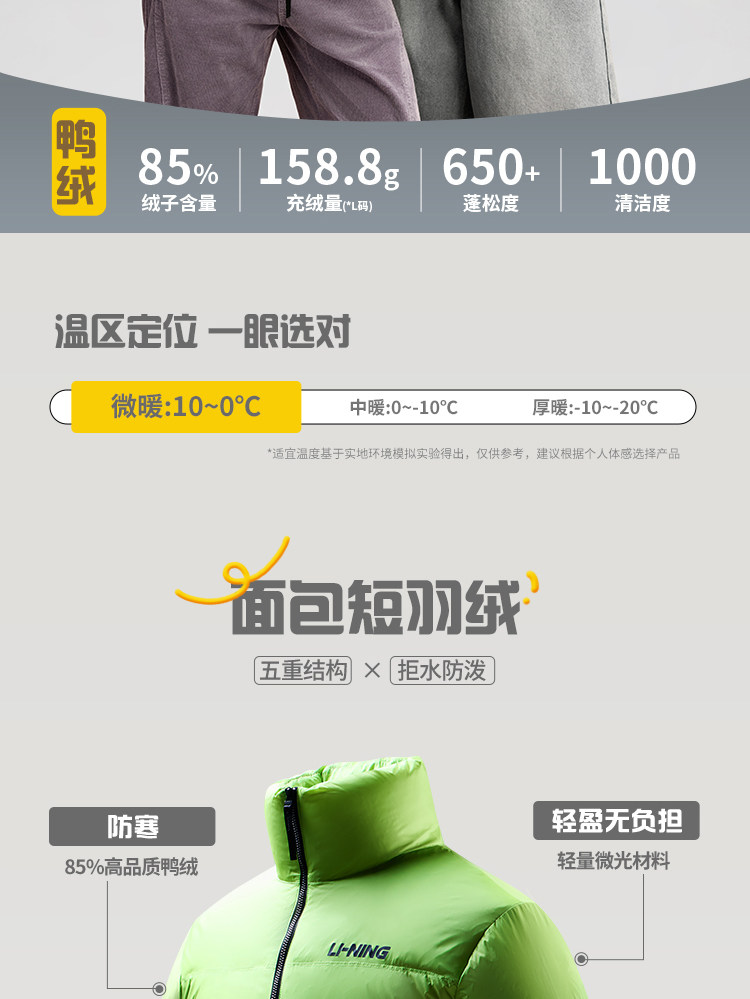 Li-Ning Hot Pot down Jacket | Men's and Women's Winter Official New Clothing Couple's Short Top Warm Sports Jacket