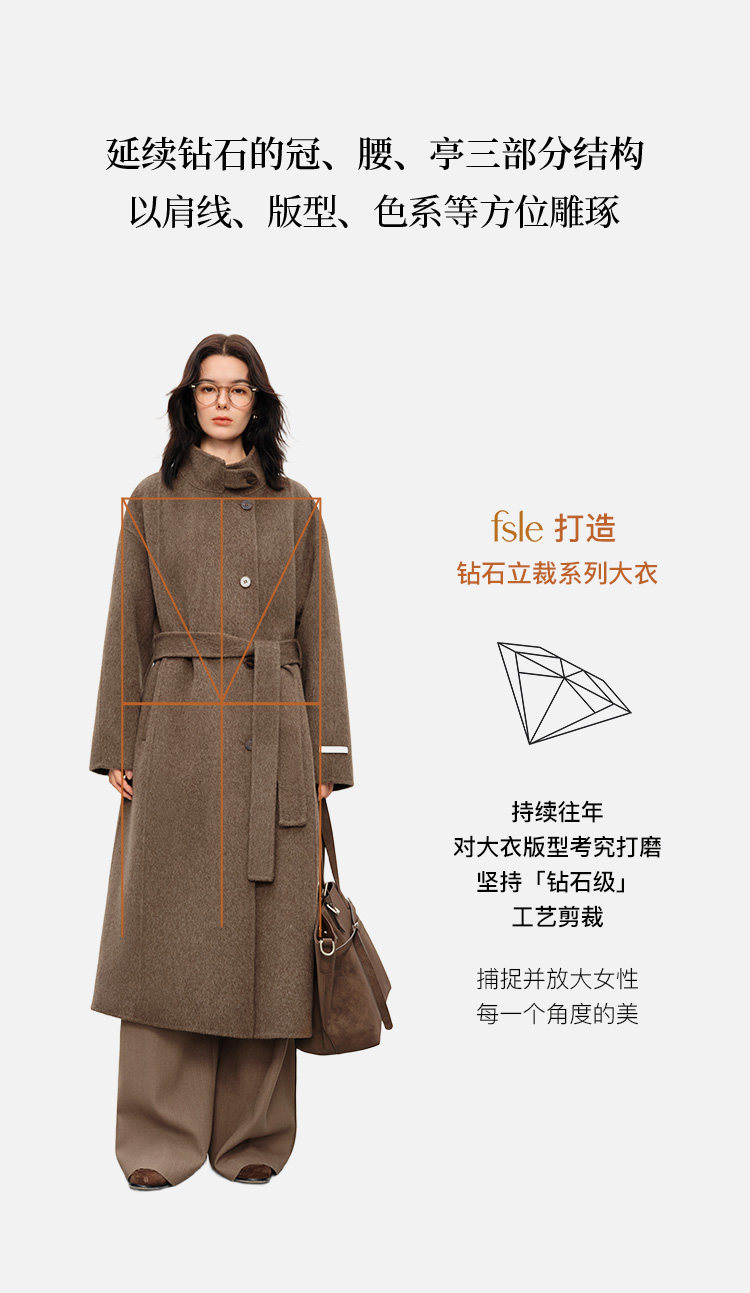【Xu Ruohan's Style】Fansilan En Diamond Tailoring Series Stand-Up Collar Double-Sided Woolen Coat Winter Woolen Jacket
