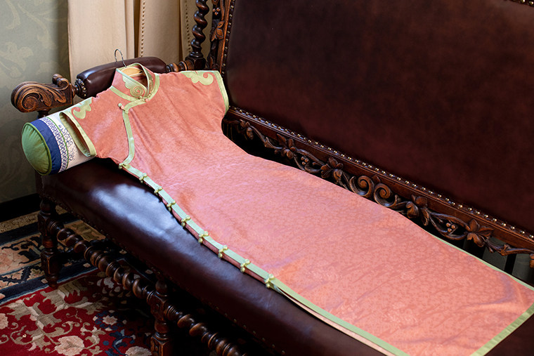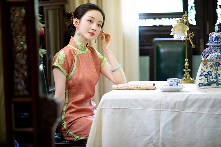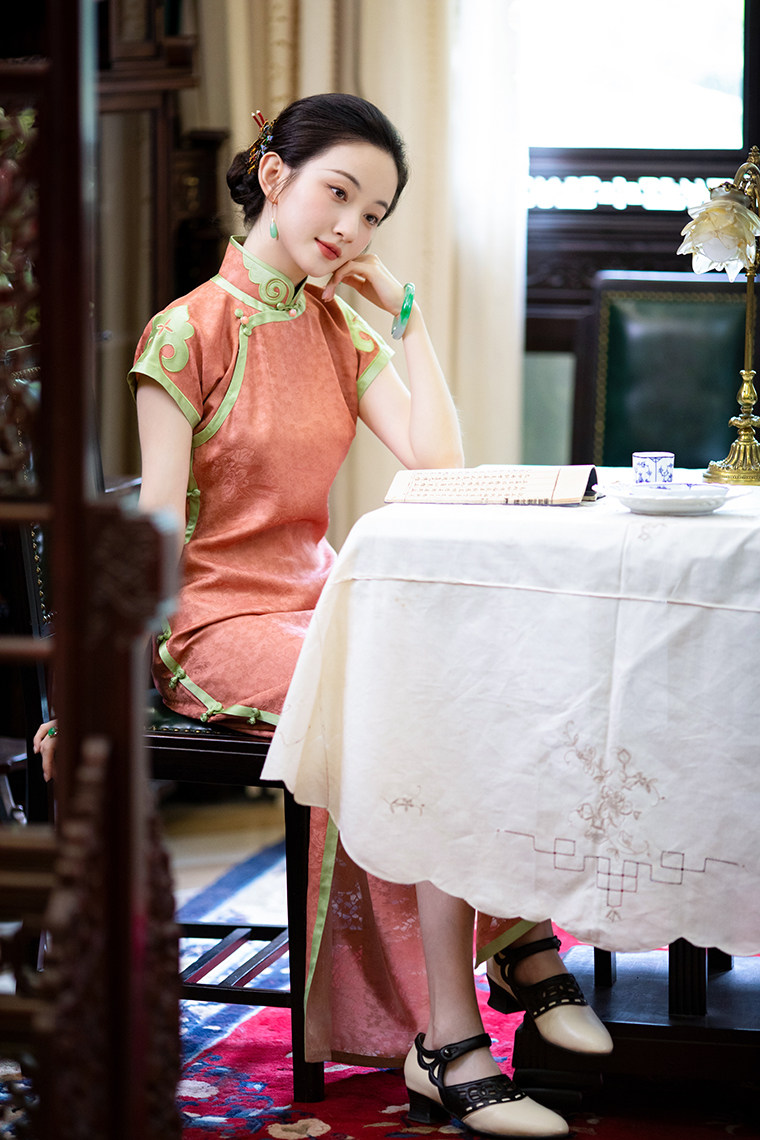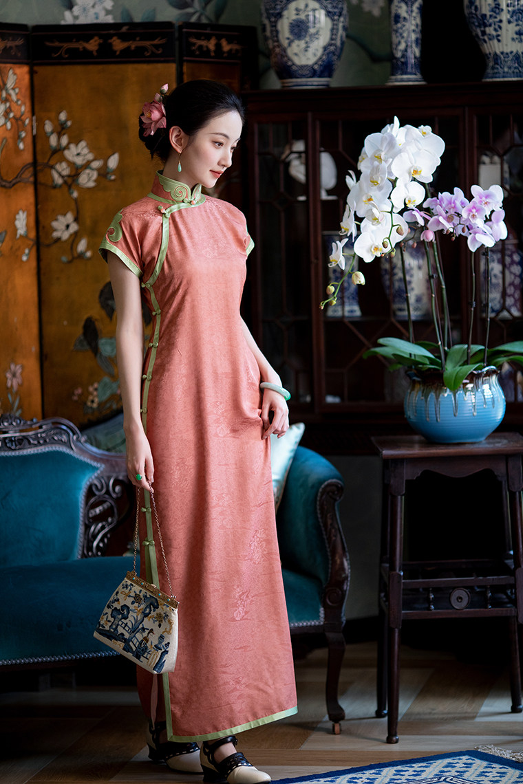 Qixiaqiliu丨2025 Summer New Collection丨Silk Perforated Brocade with Restored Ruyi Embroidery, Small Cap Sleeves, Long Cheongsam