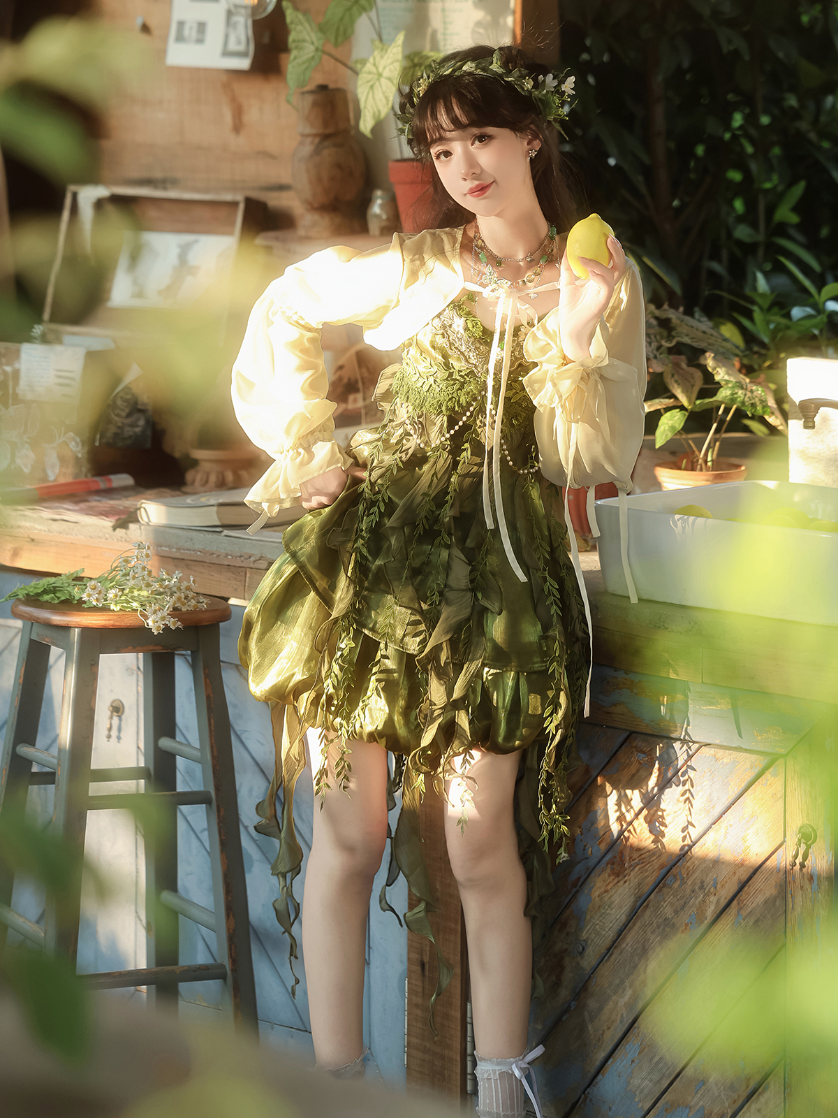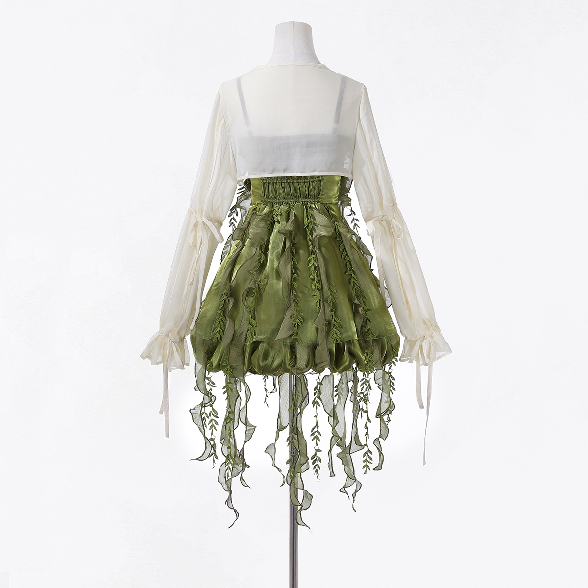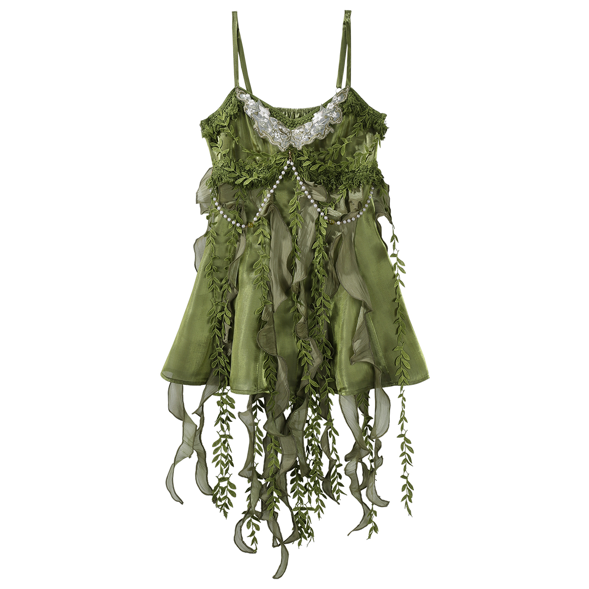 Yusen Green Tassel Suspender Skirt Short Skirt Set Green Fairy Tale Dress Mori Style National Style Girl Bud Skirt Autumn