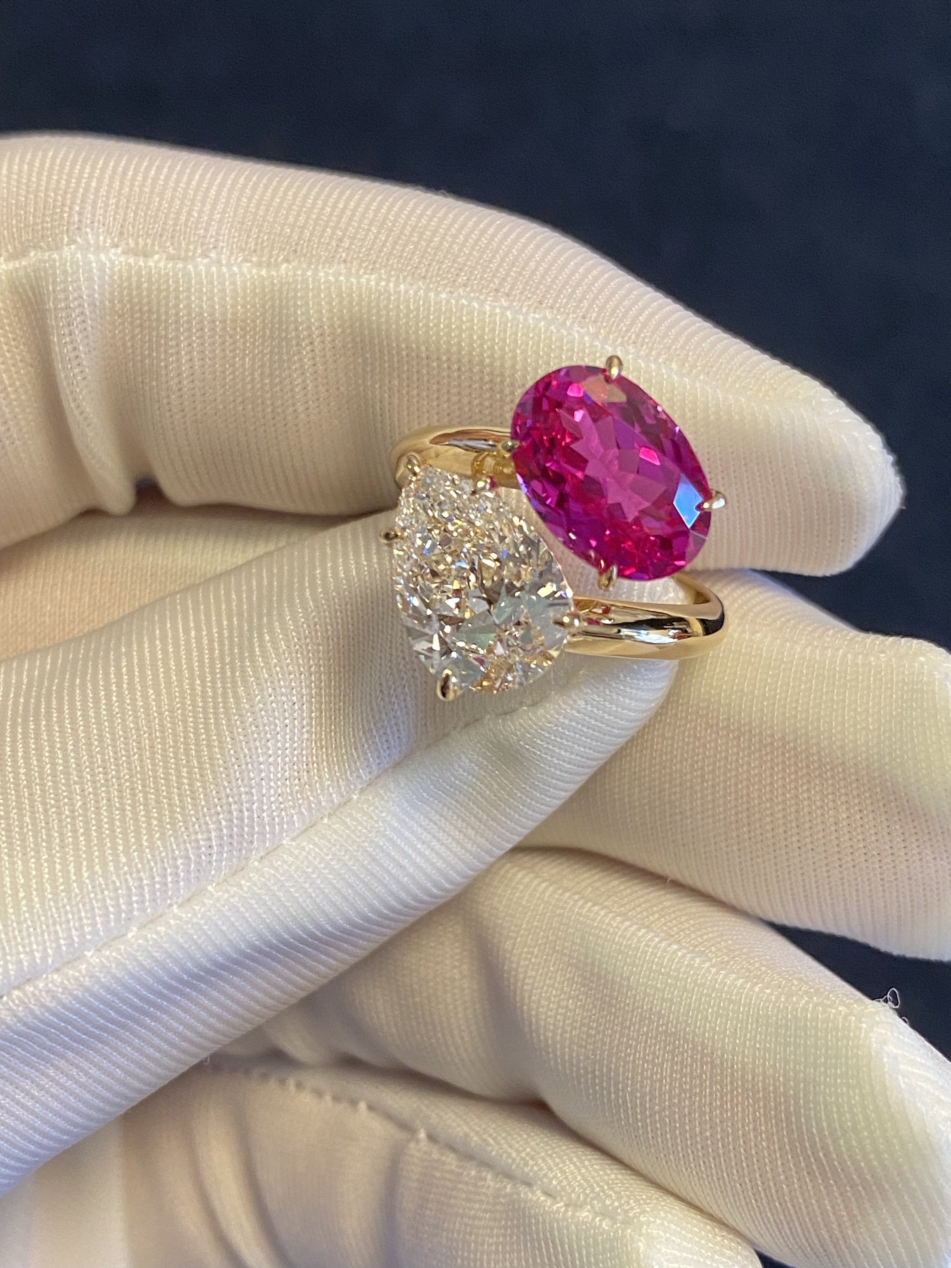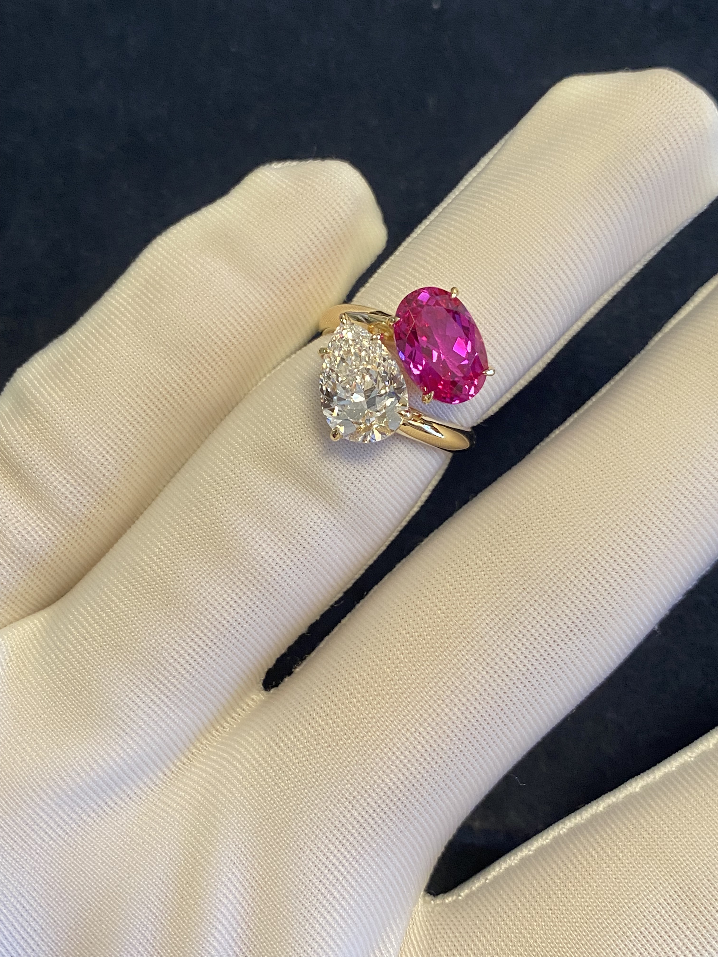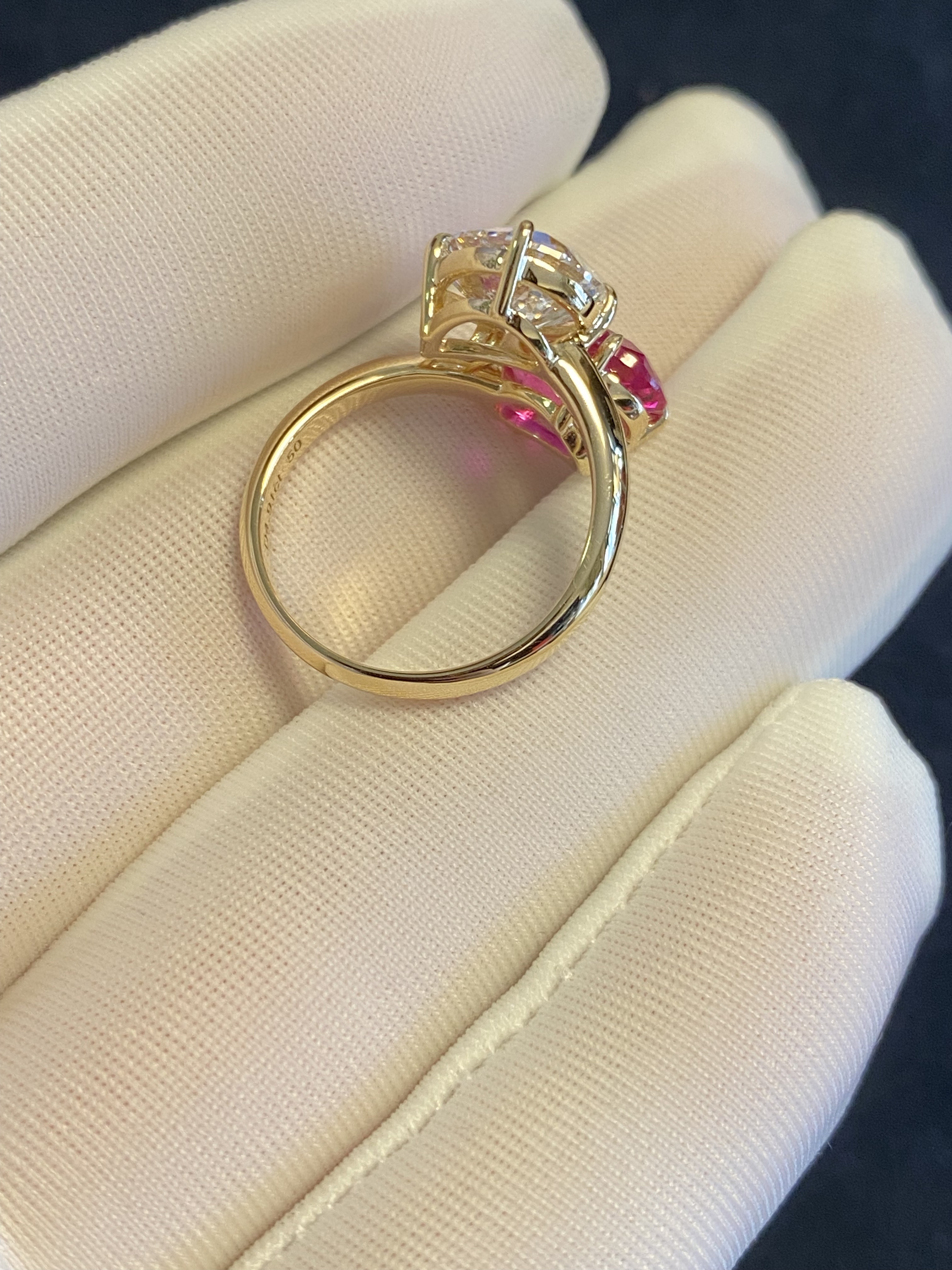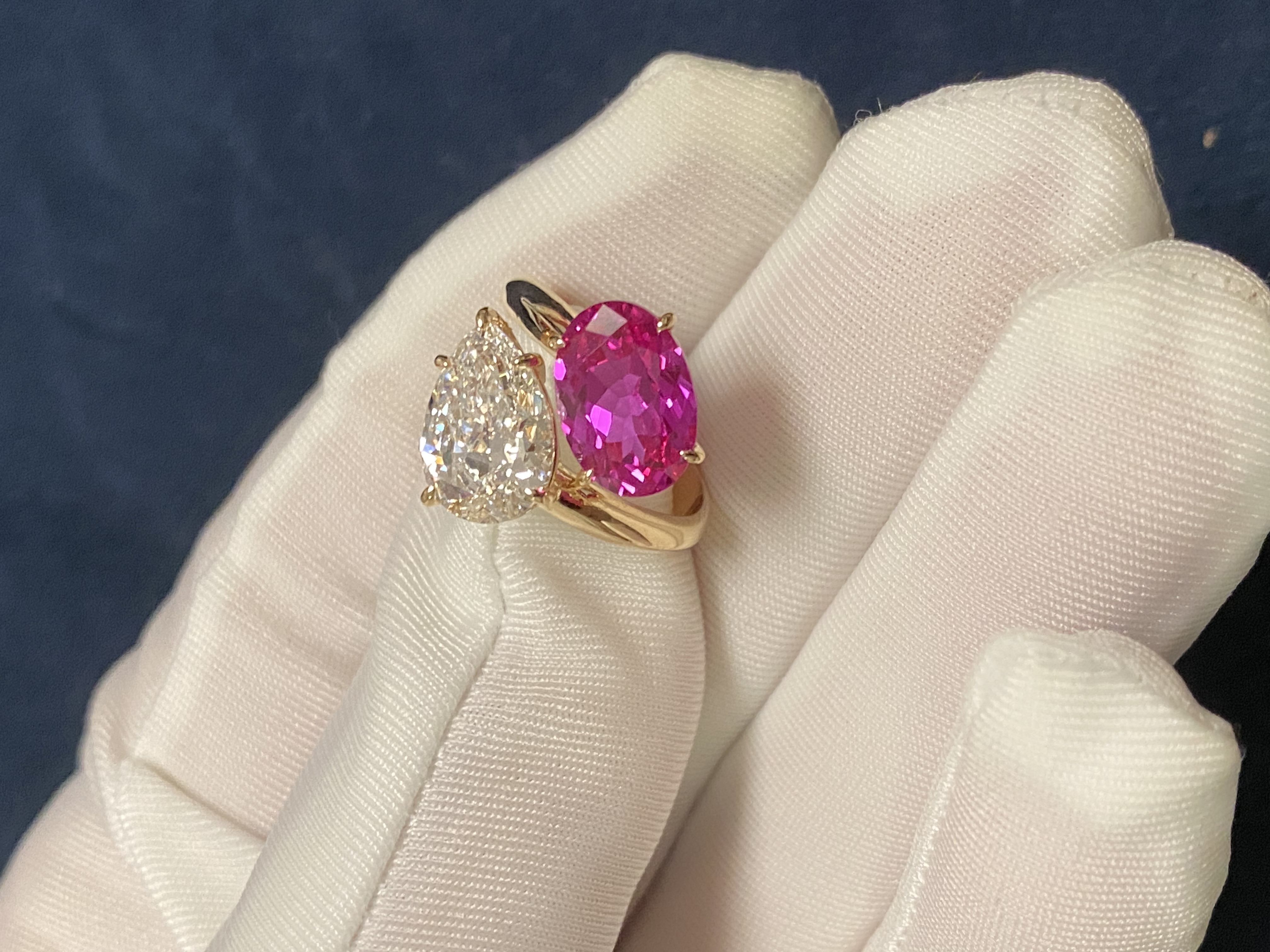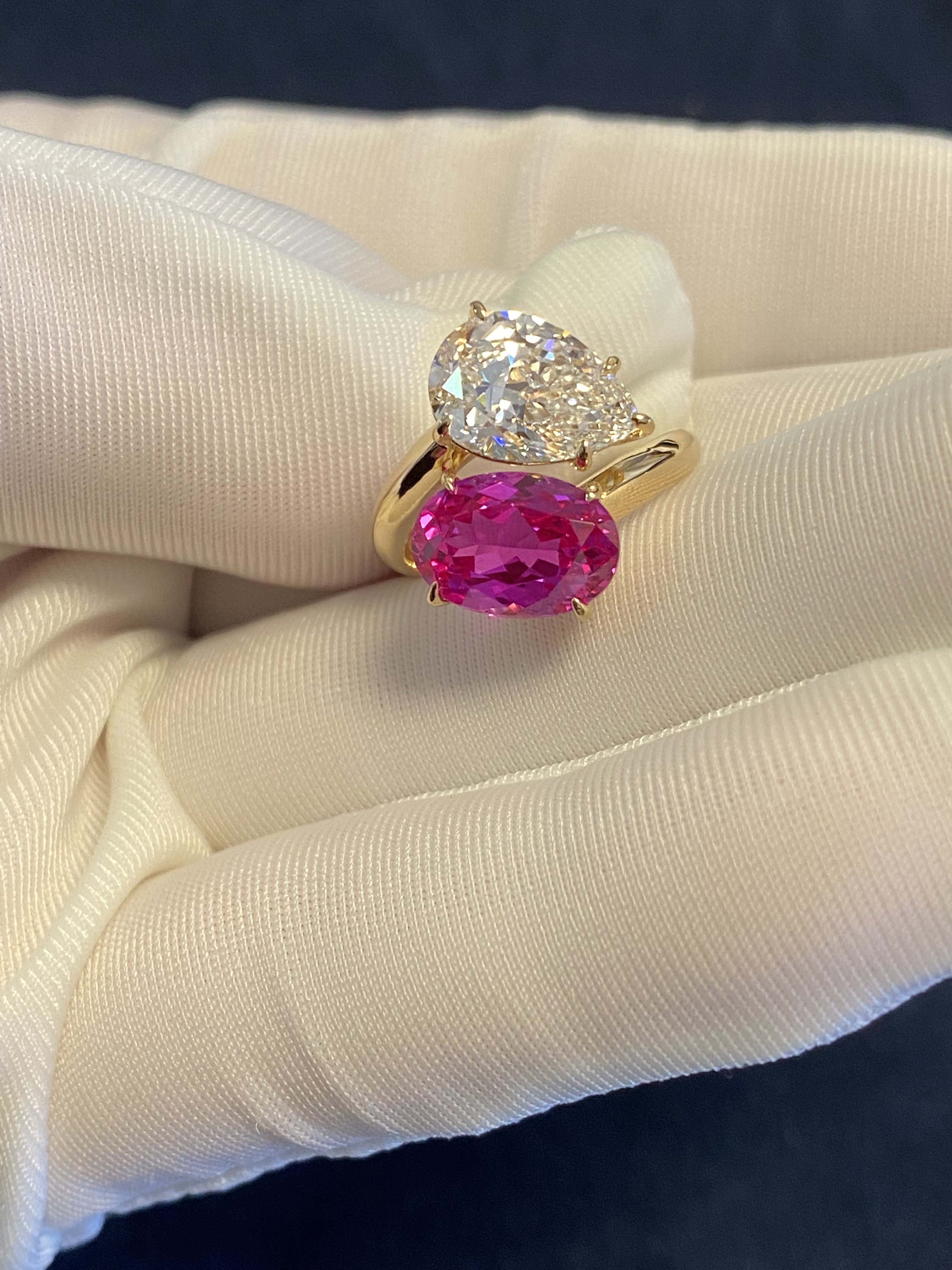 K Gold Double Stone Double-Set Lab-Grown Diamond Oval Hot Pink Pink Sapphire Birthstone Parent-Child Ring Toietmoi Double-Ended Ring
