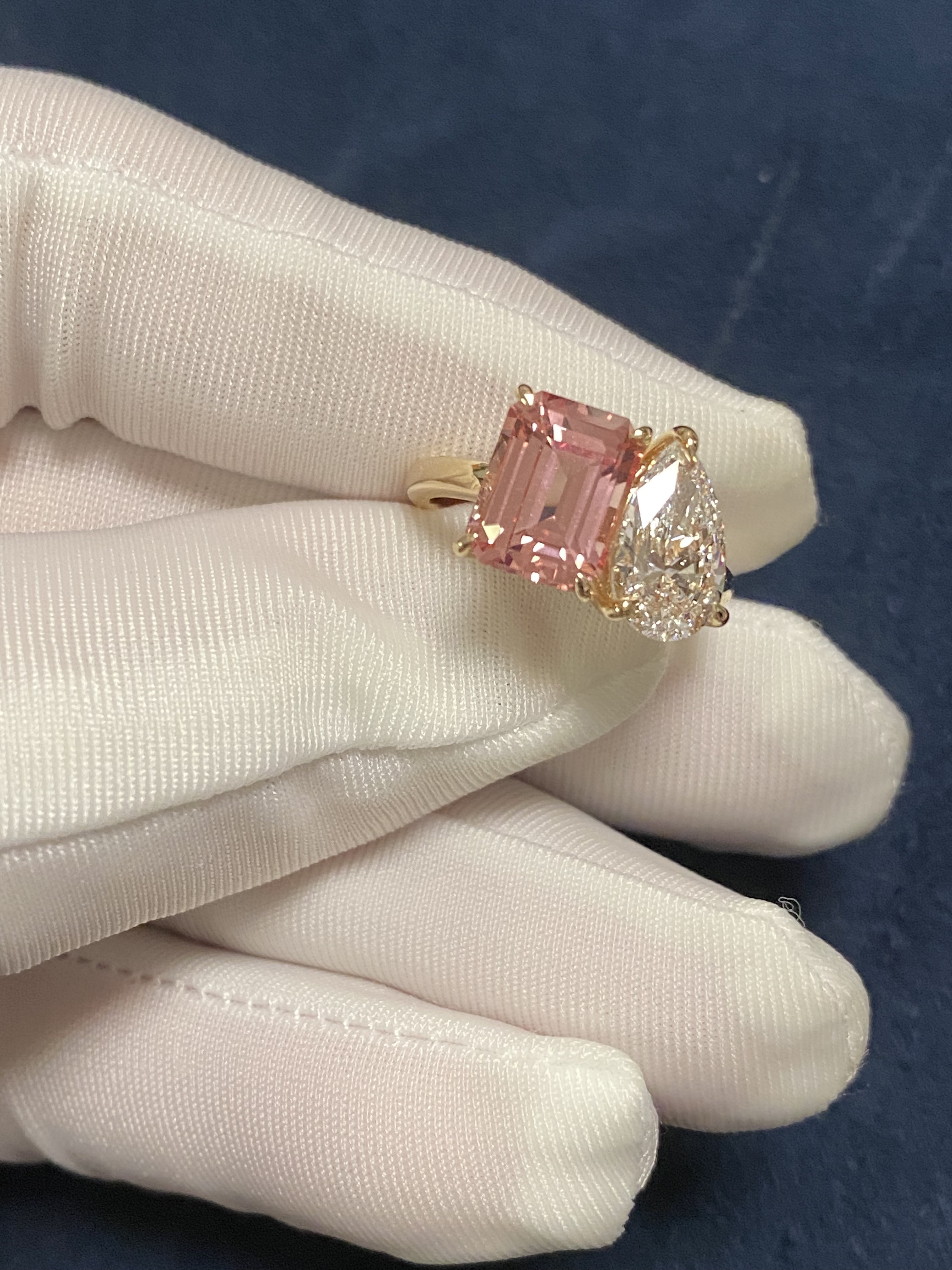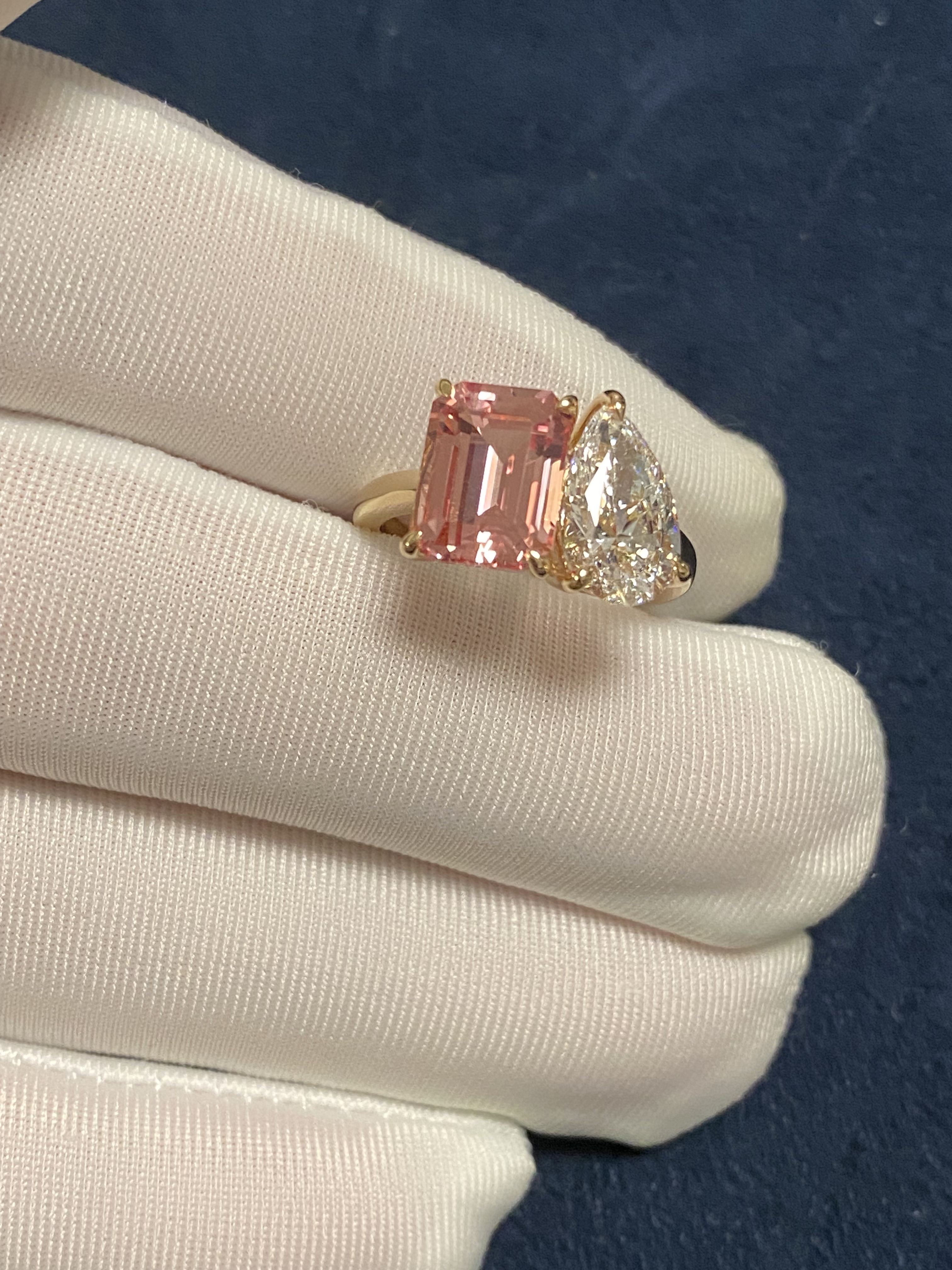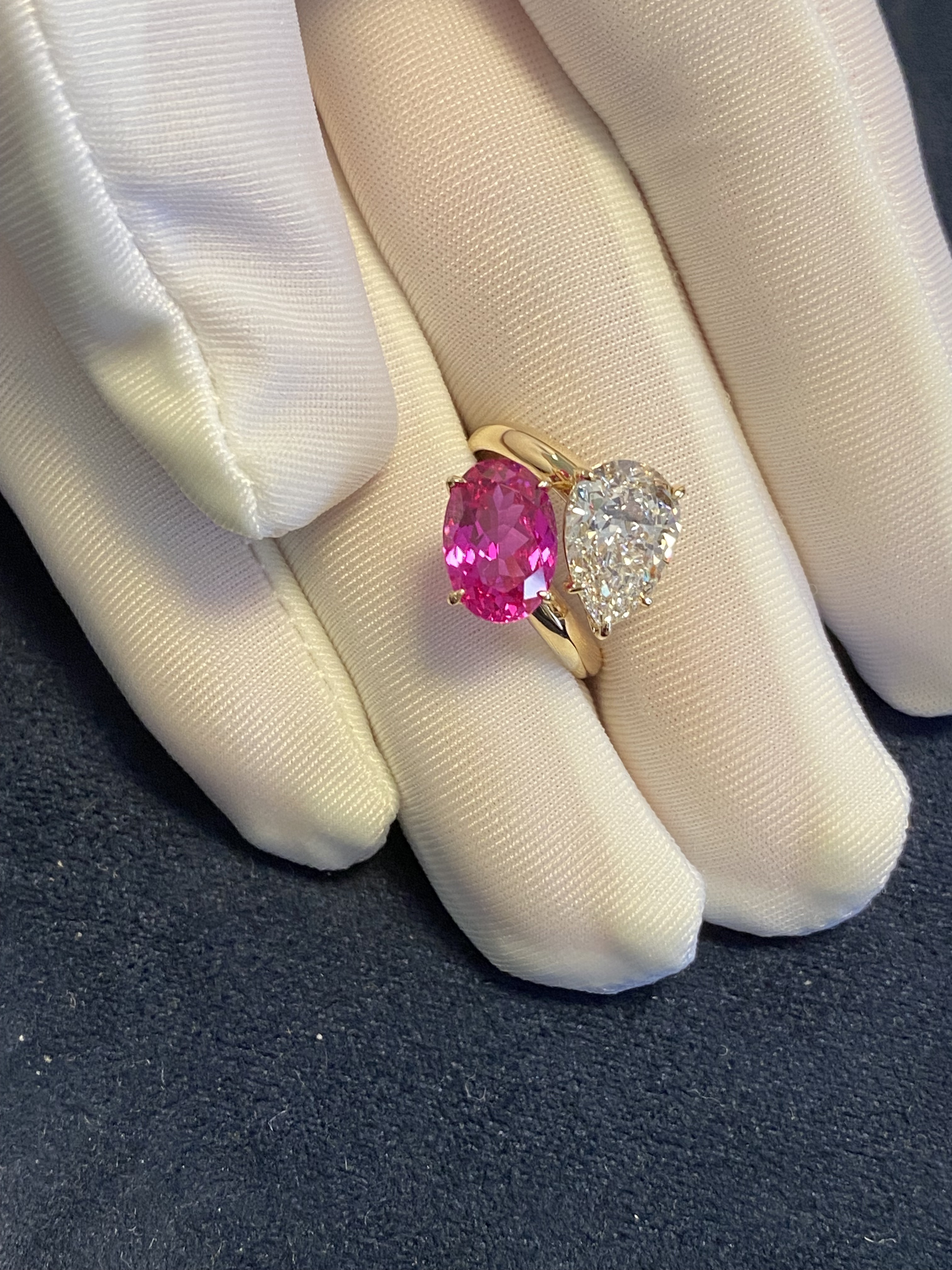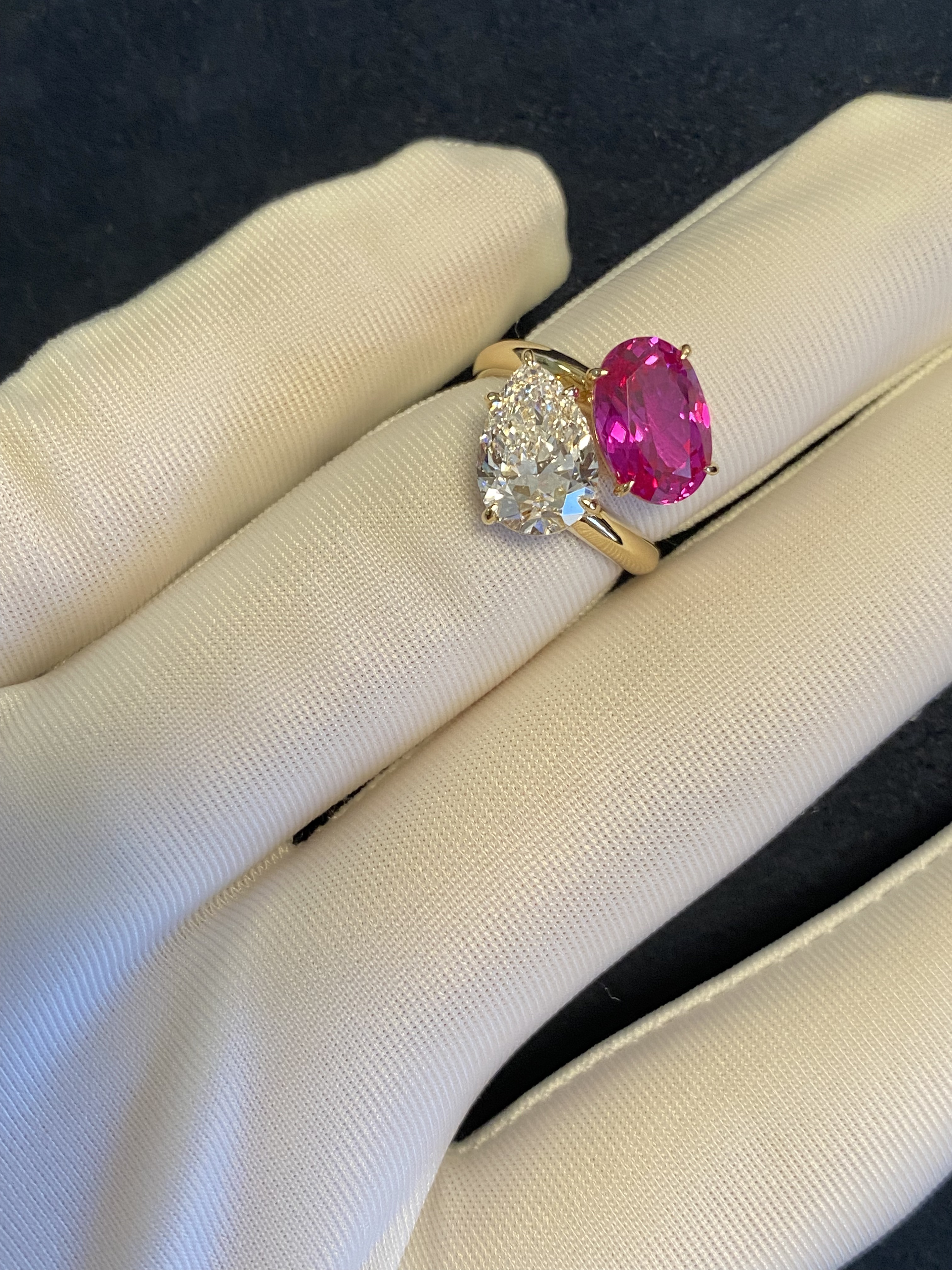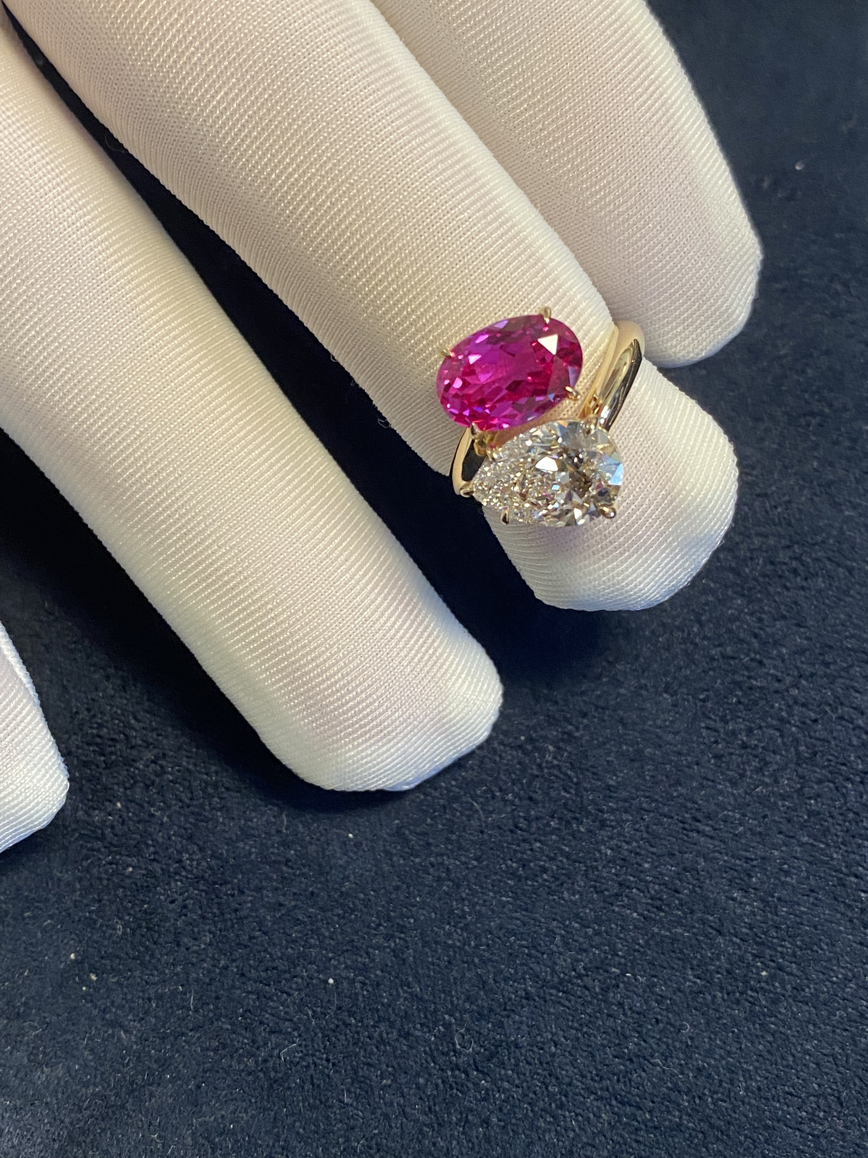K Gold Double Stone Double-Set Lab-Grown Diamond Oval Hot Pink Pink Sapphire Birthstone Parent-Child Ring Toietmoi Double-Ended Ring
