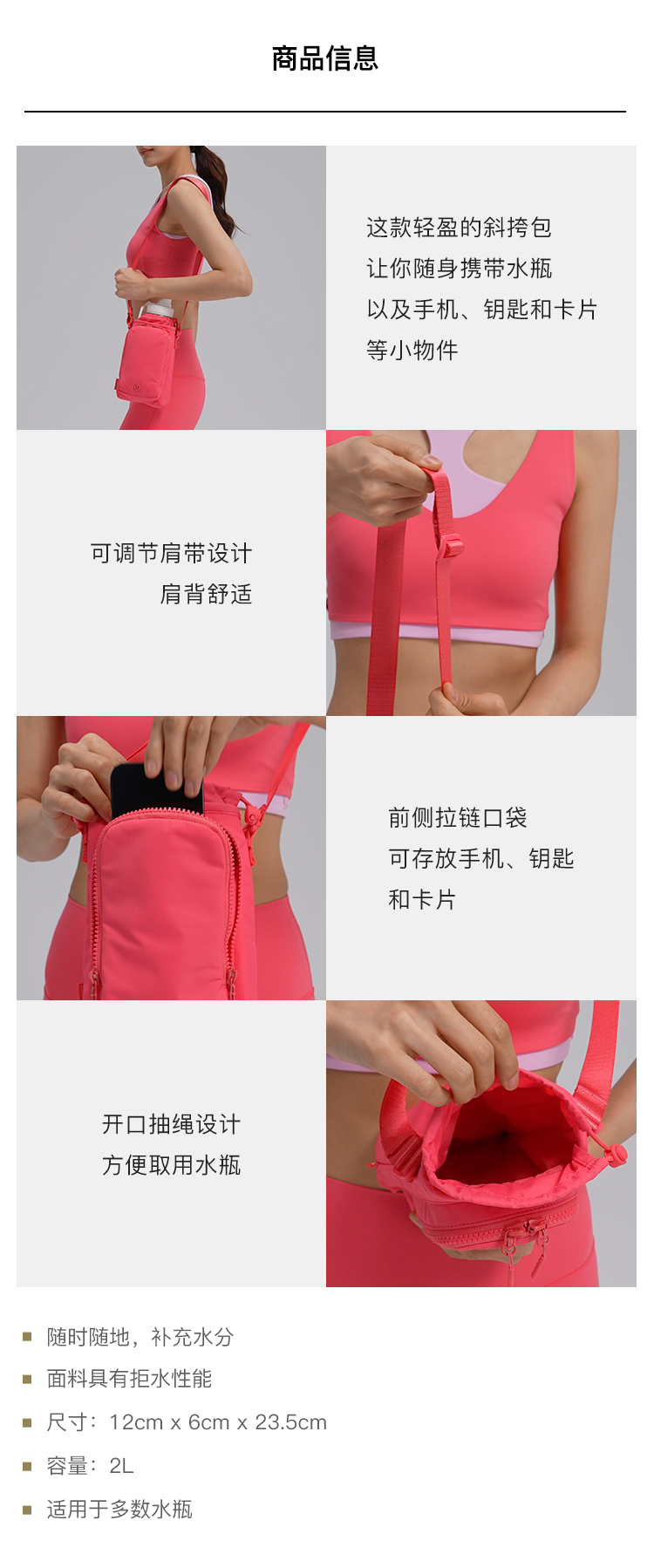 Water Bottle with Front Pocket Crossbody Water Bottle Bag丨Lululemon丨Lu9Bo7S