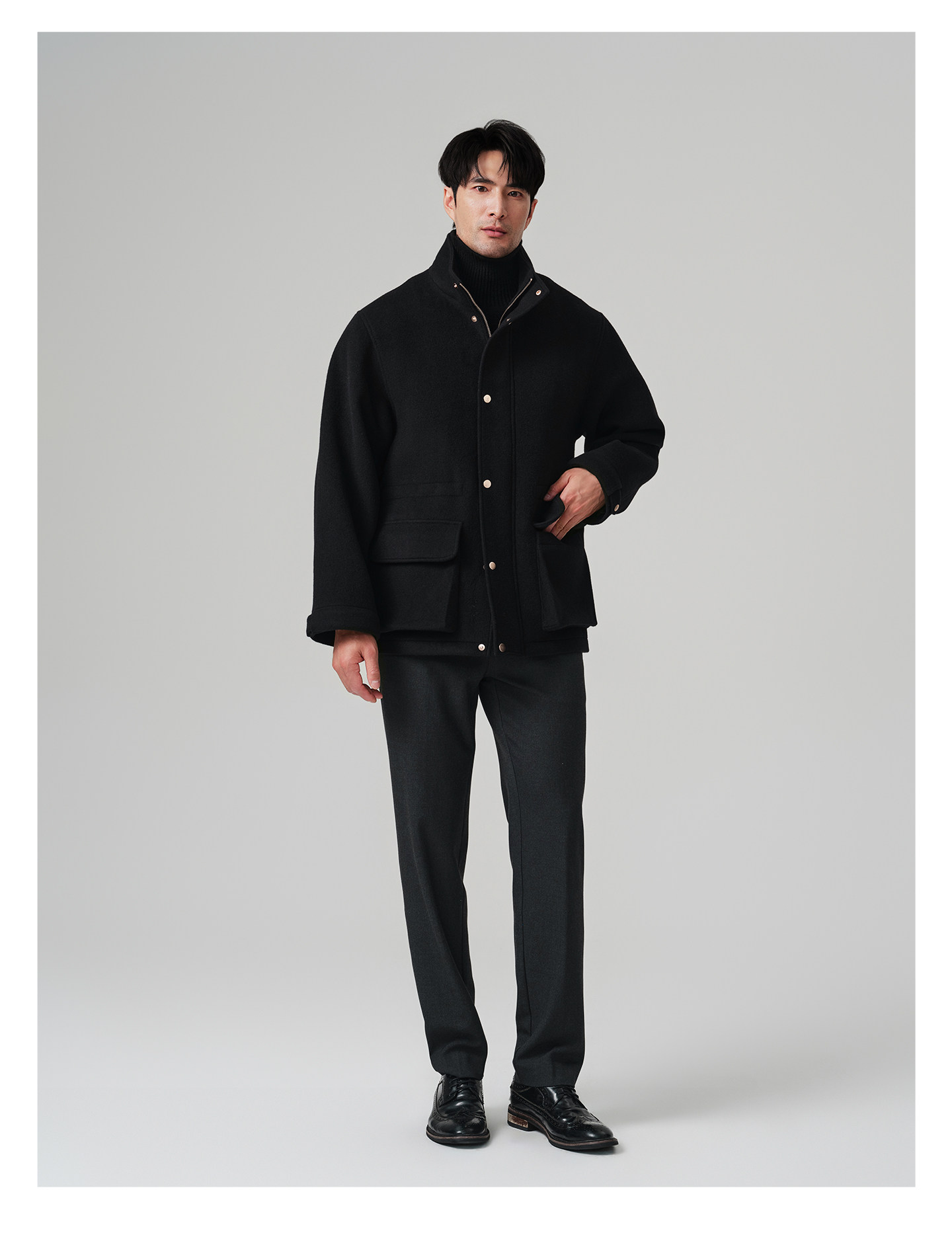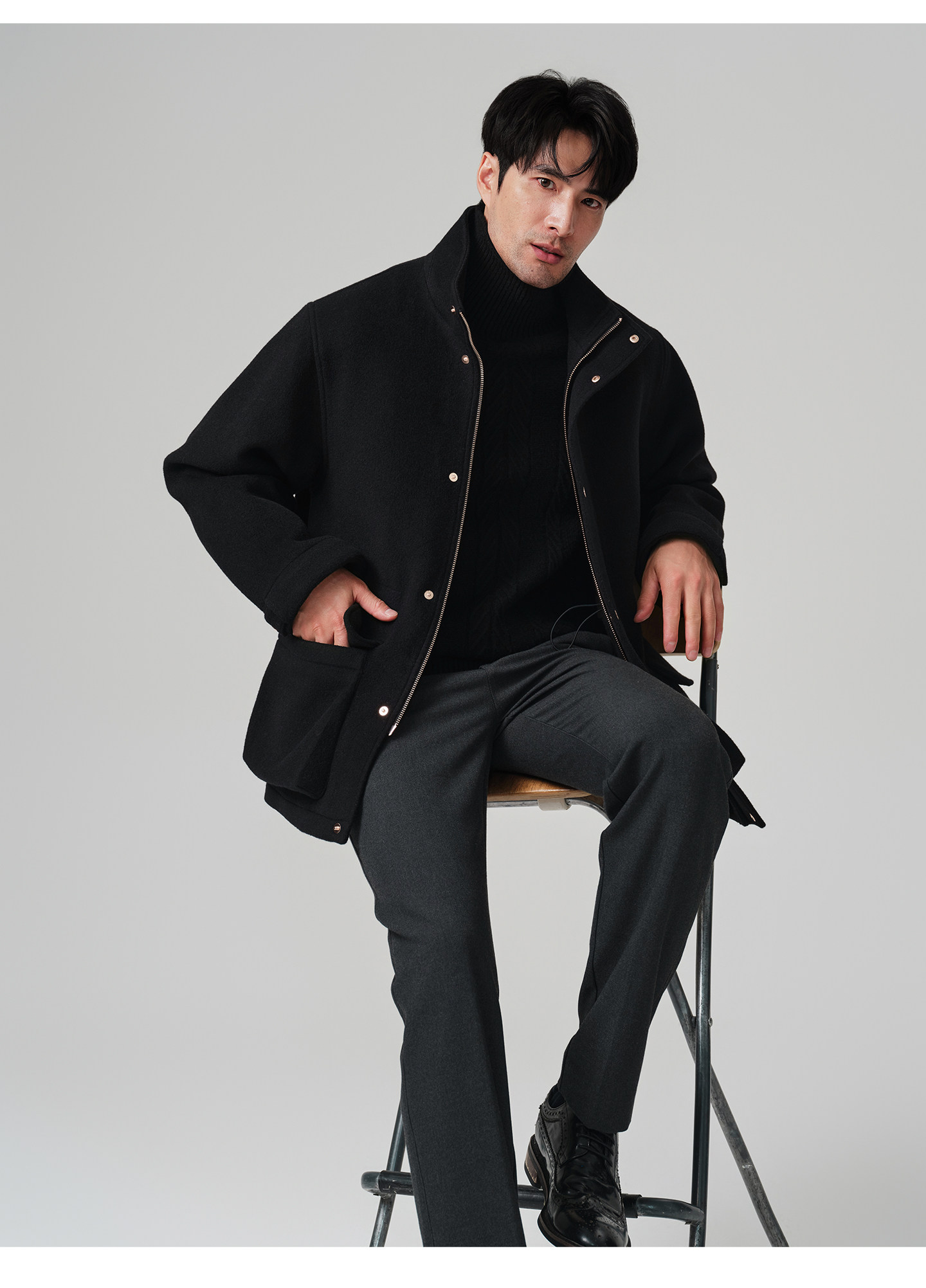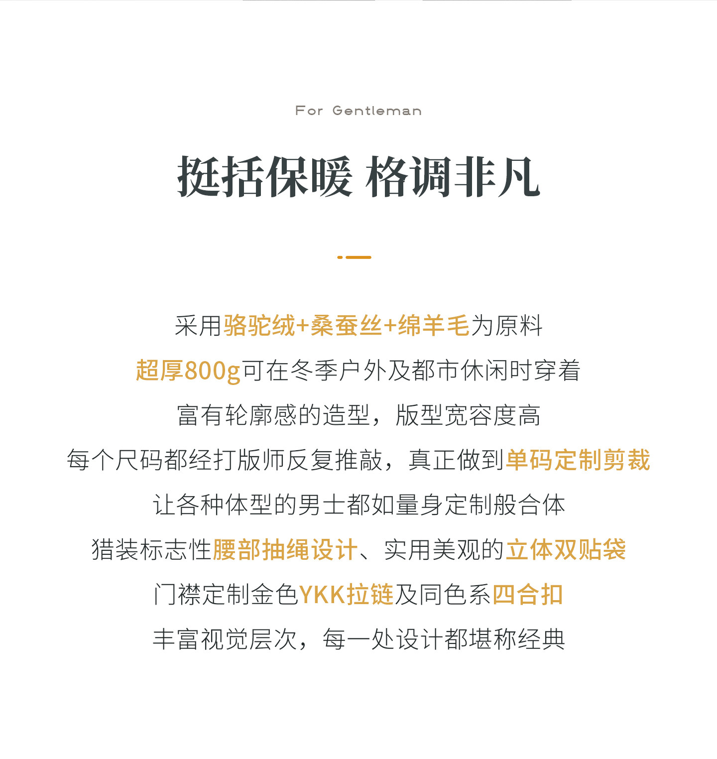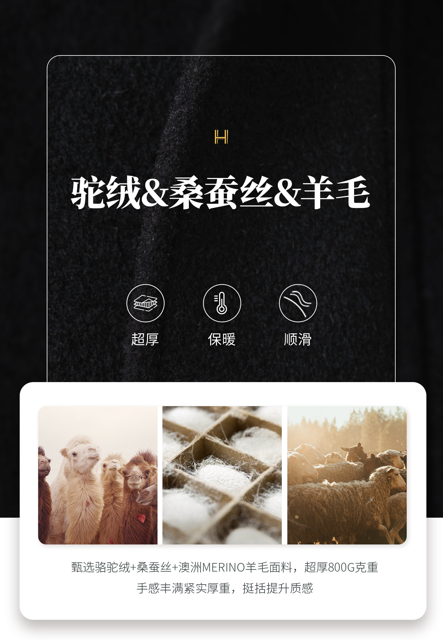 Hany [Ultra-Thick Camel Wool and Mulberry Silk] Hunting Jacket for Men, New Wool Coat, High-End Woolen Overcoat for Autumn and Winter