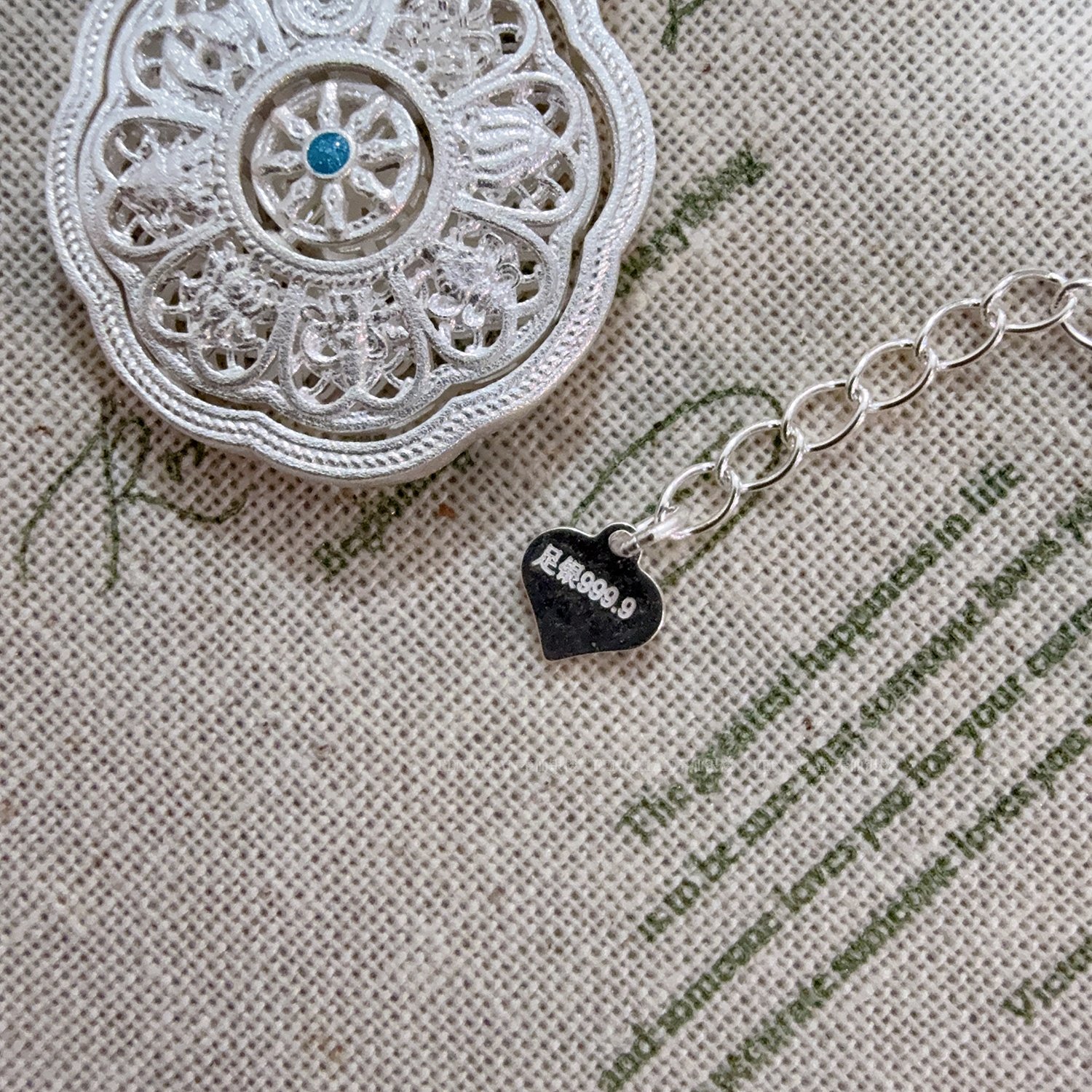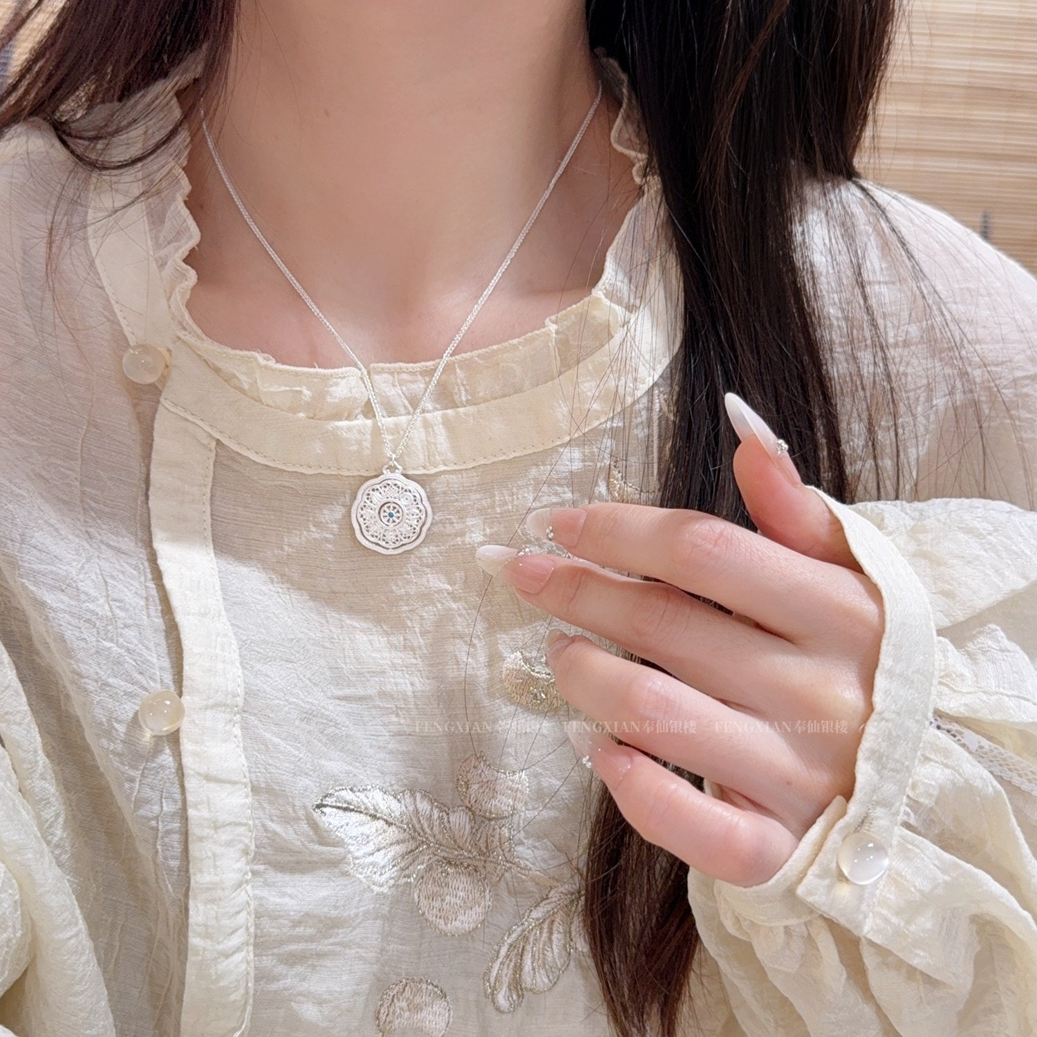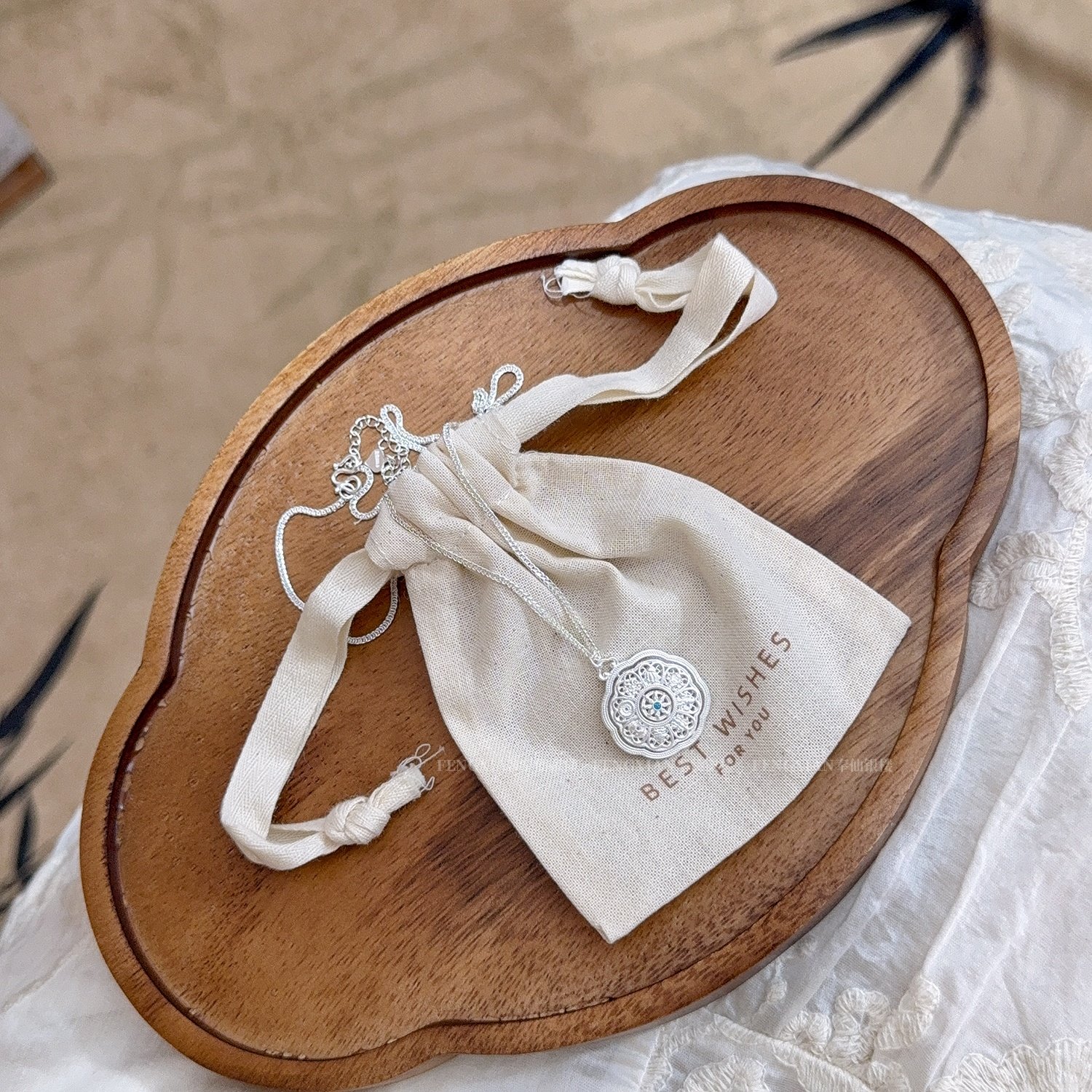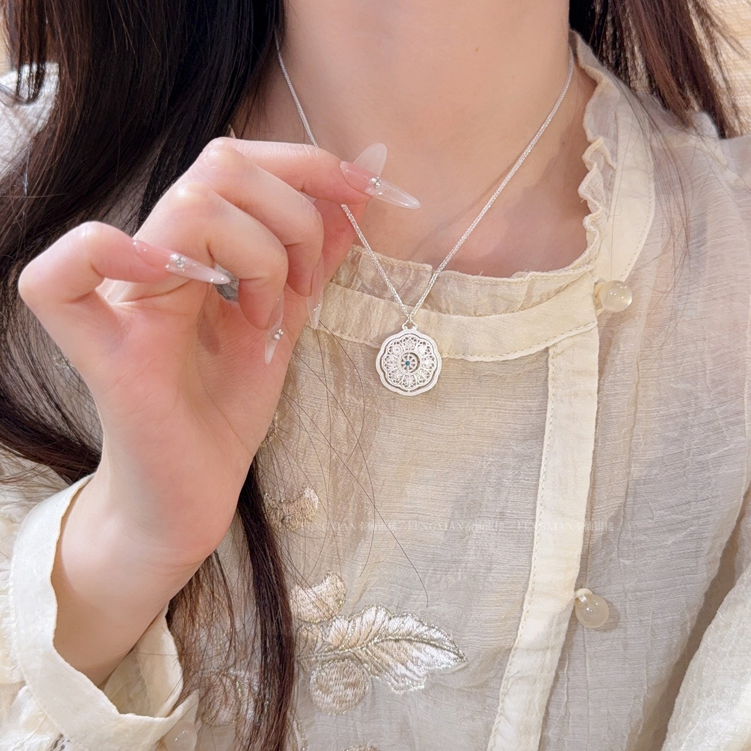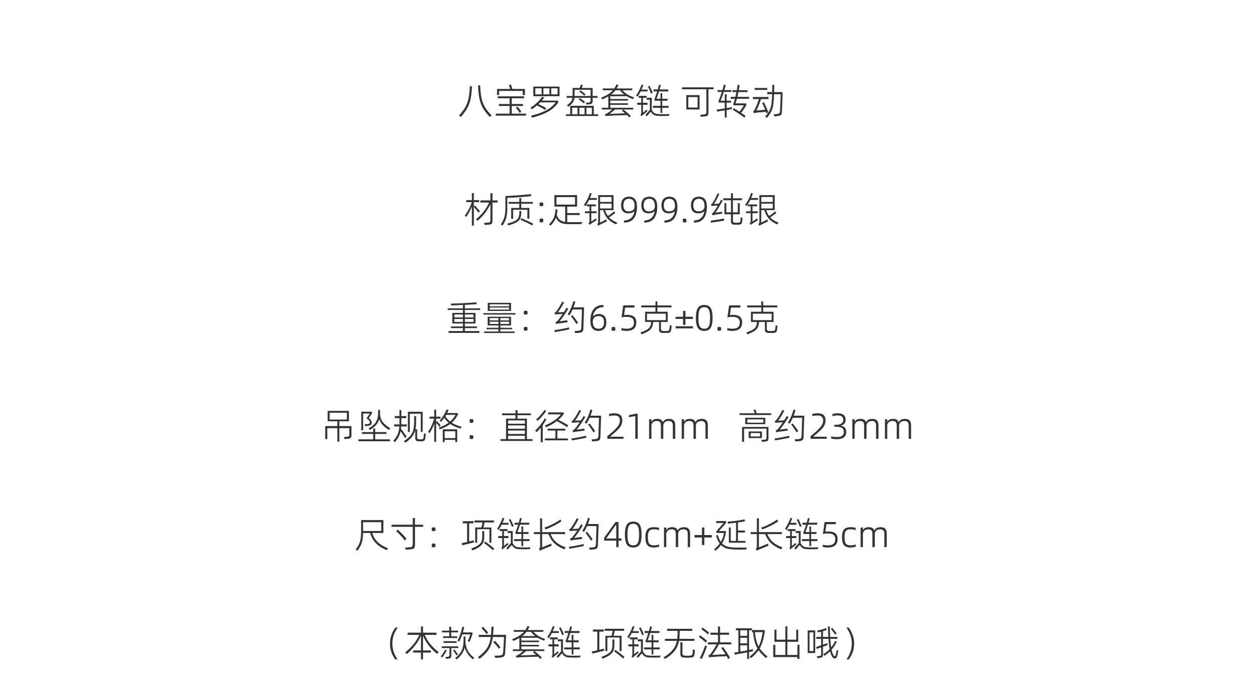 Zhuohuan Eight Treasures Compass Pure Silver 999.9 Sterling Silver Pendant Necklace Hollow Filigree Clavicle Chain New Chinese Style