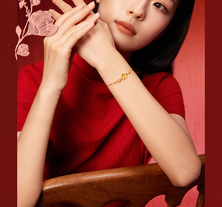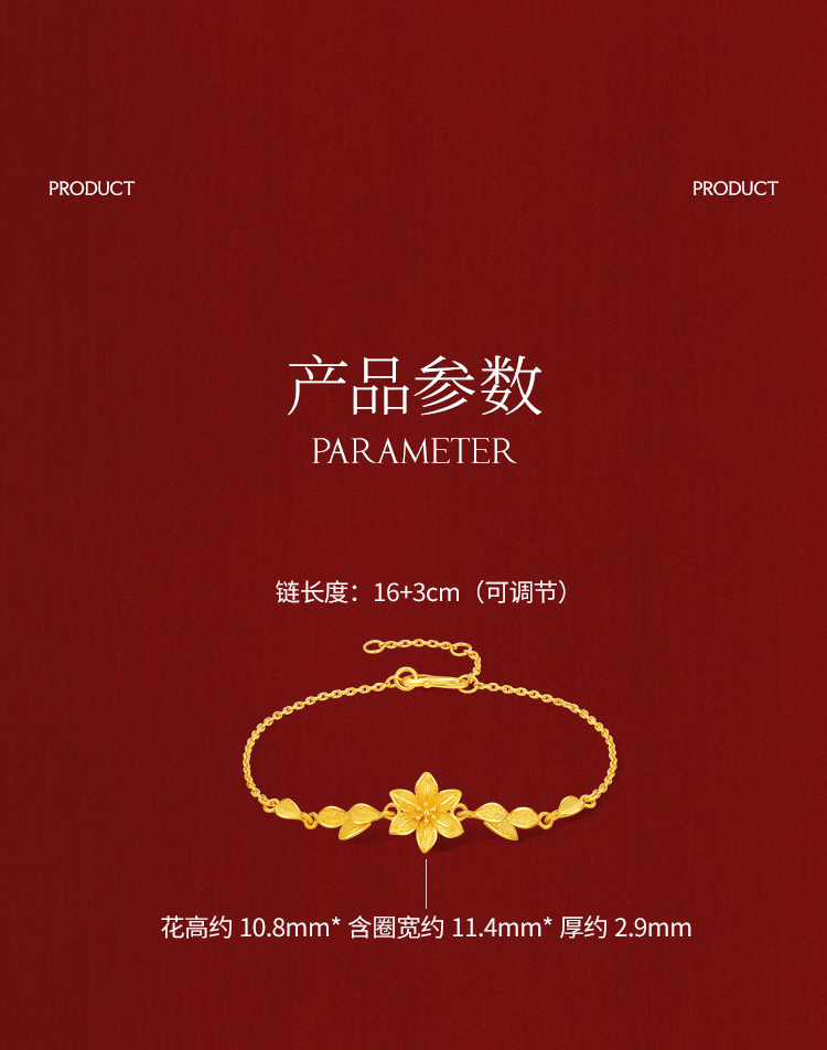 Zhou Liufu Gold Valued Full Gold Romantic Flower Oath Lily Bracelet Princess Wedding Period Finger South Series Holiday Gifts