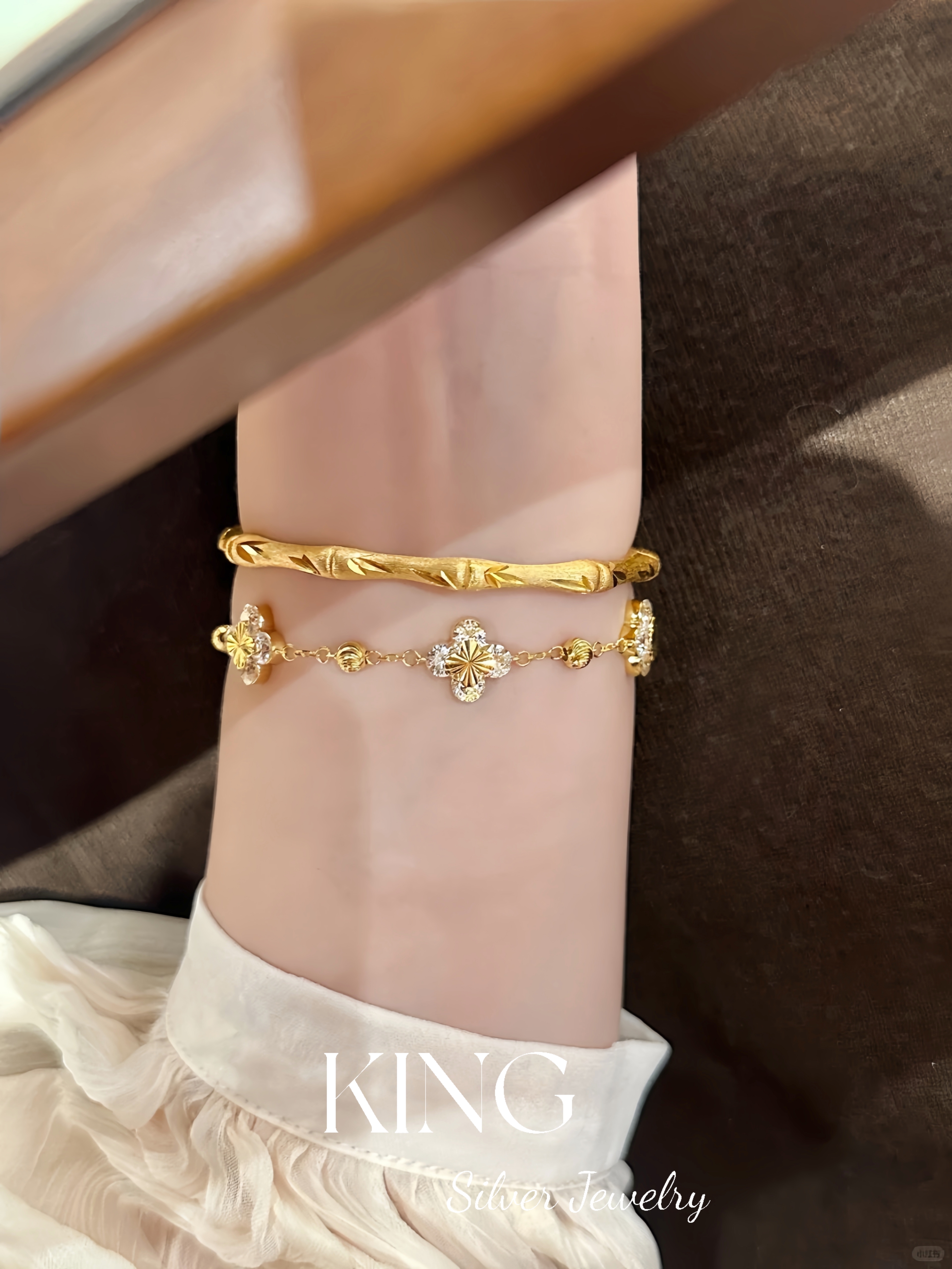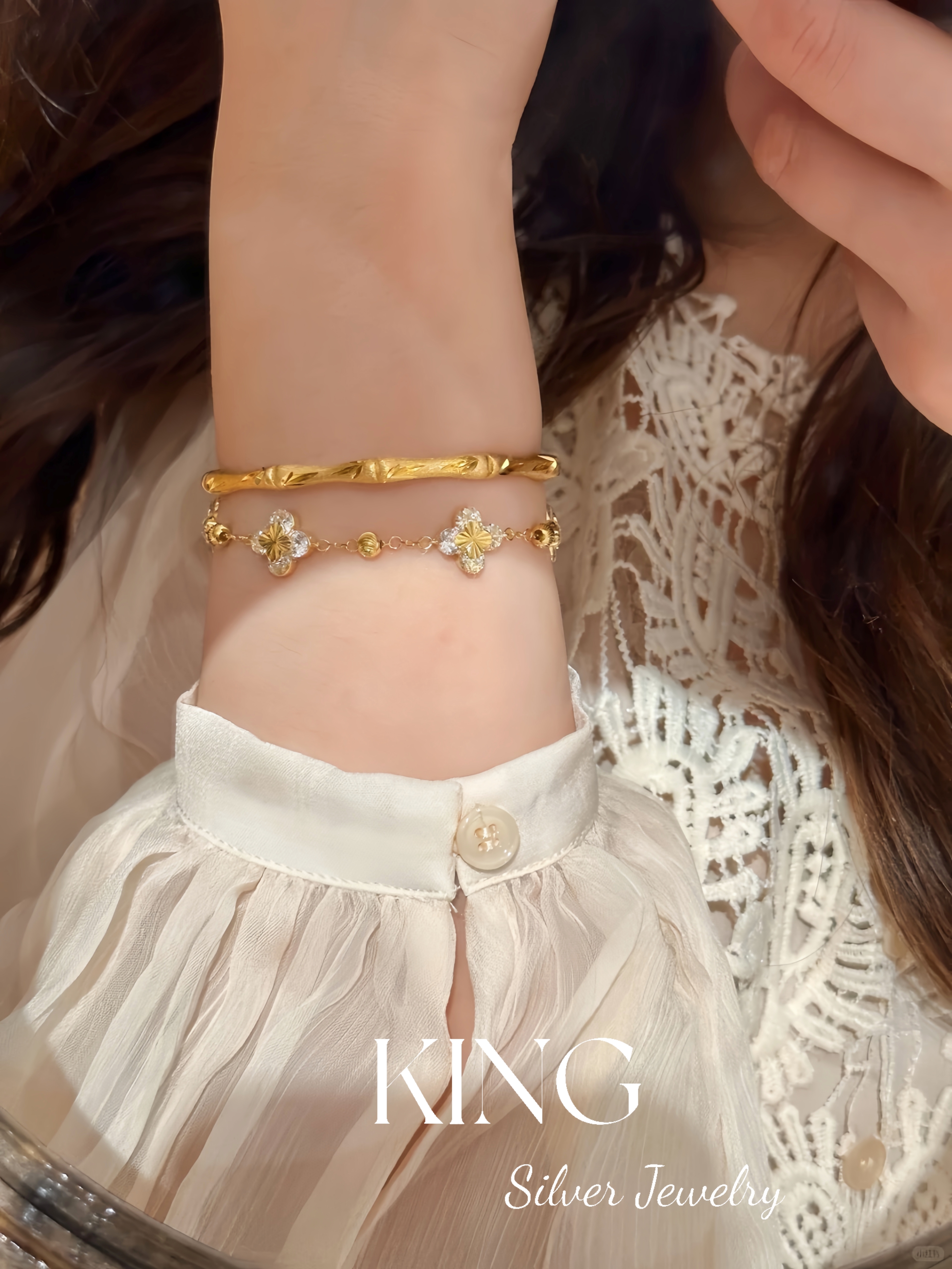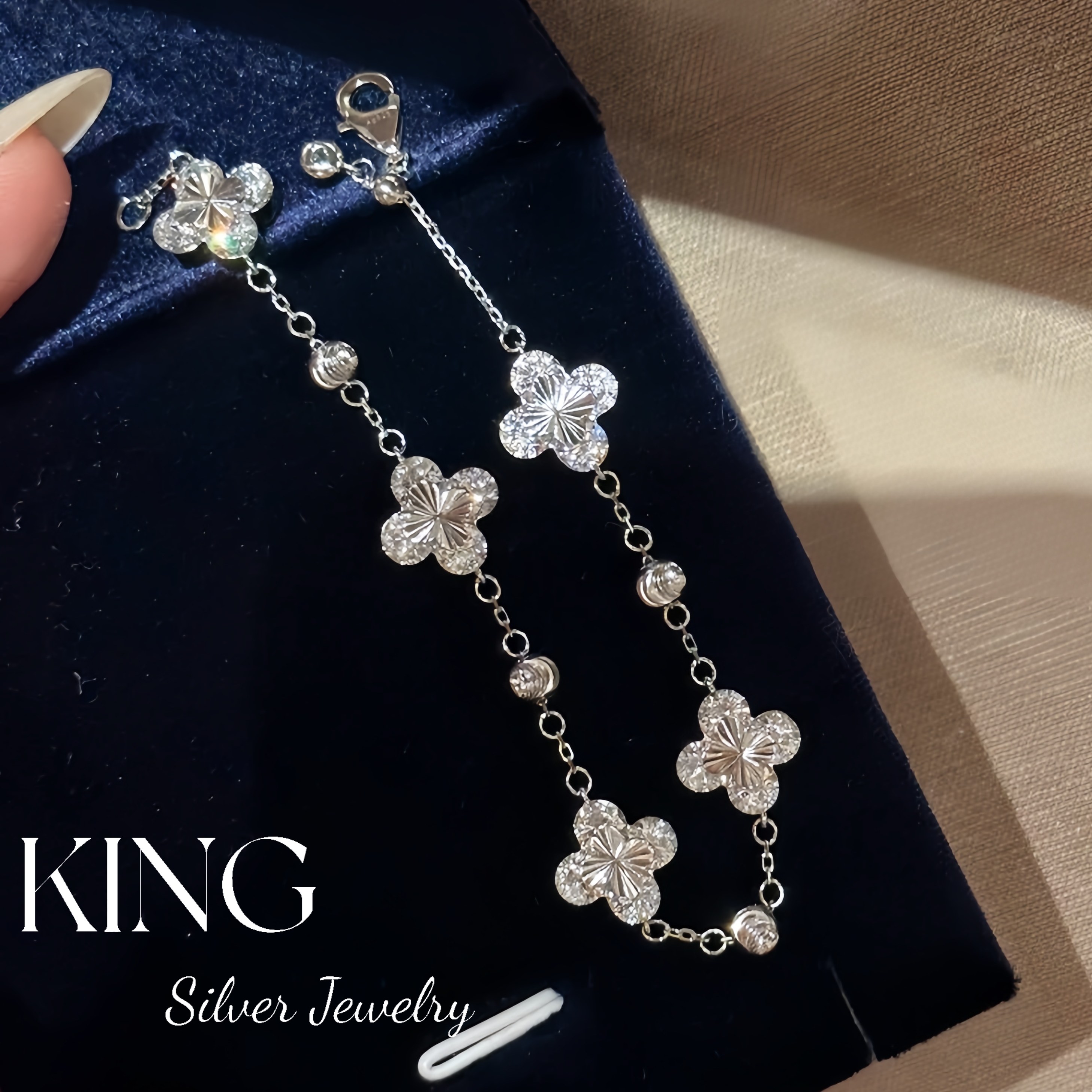 Four-leaf Zhiqiu | king Silver Jewelry S925 Silver Gold-plated Laser Four-leaf Flower CNC Female Fashion Sterling Silver Bracelet
