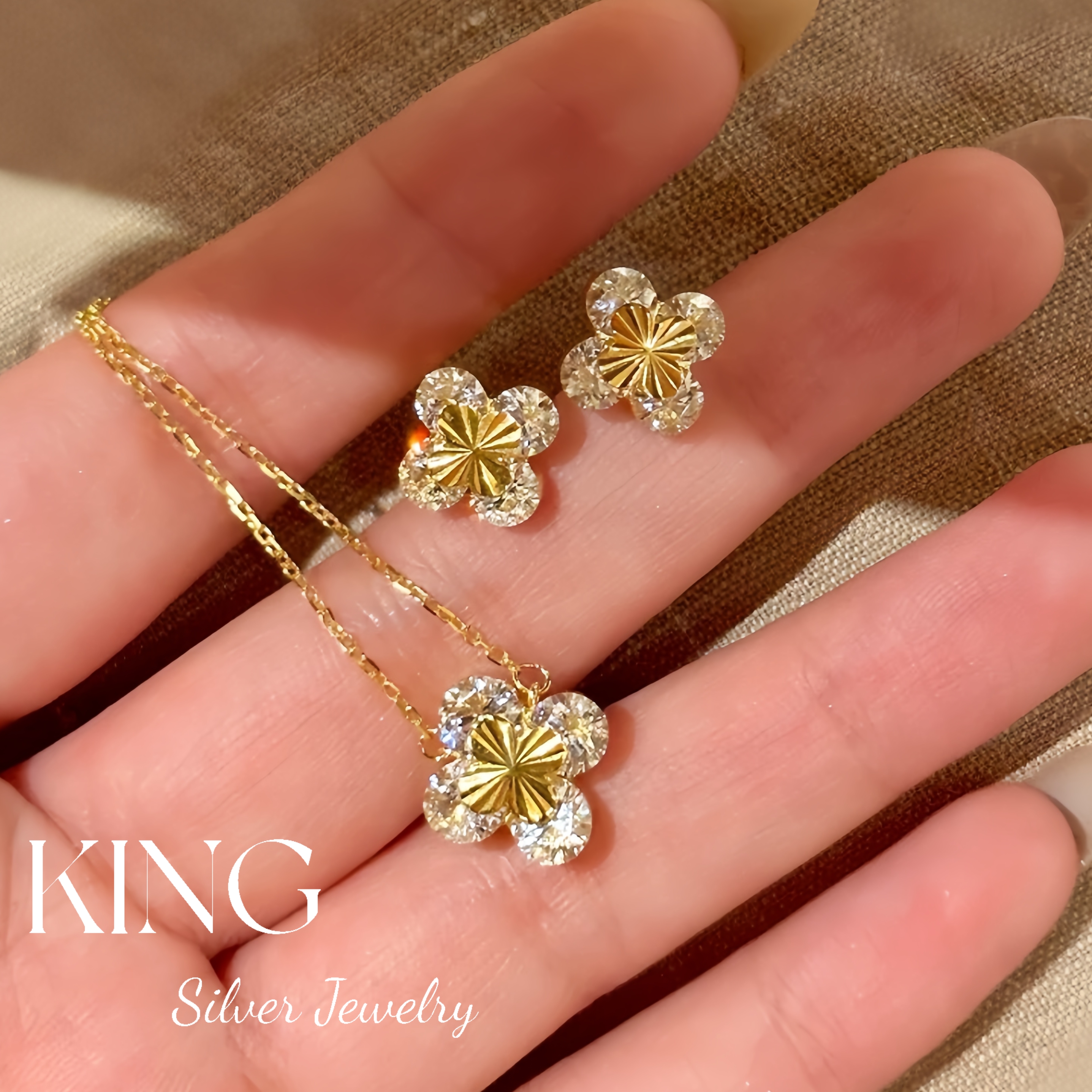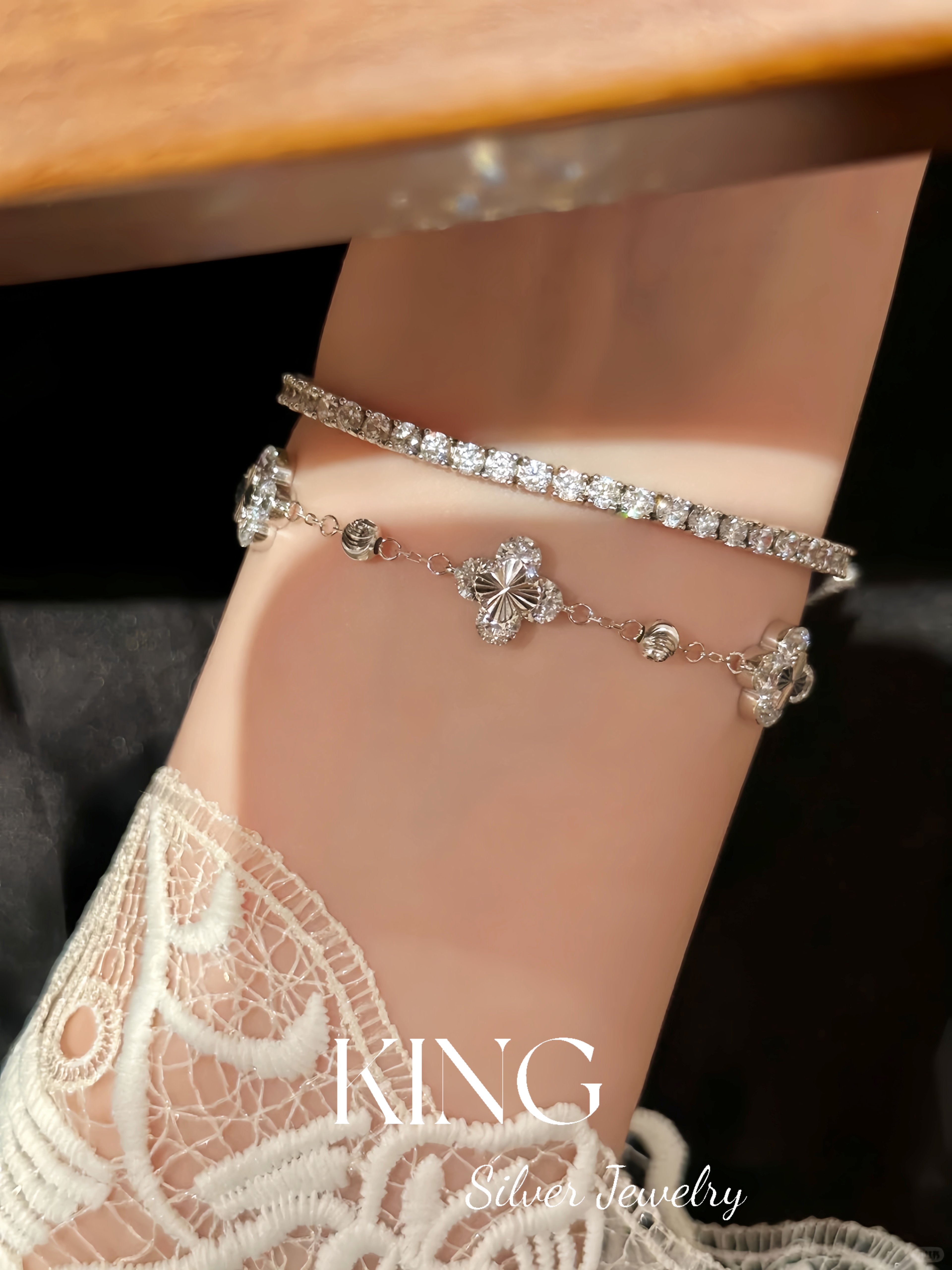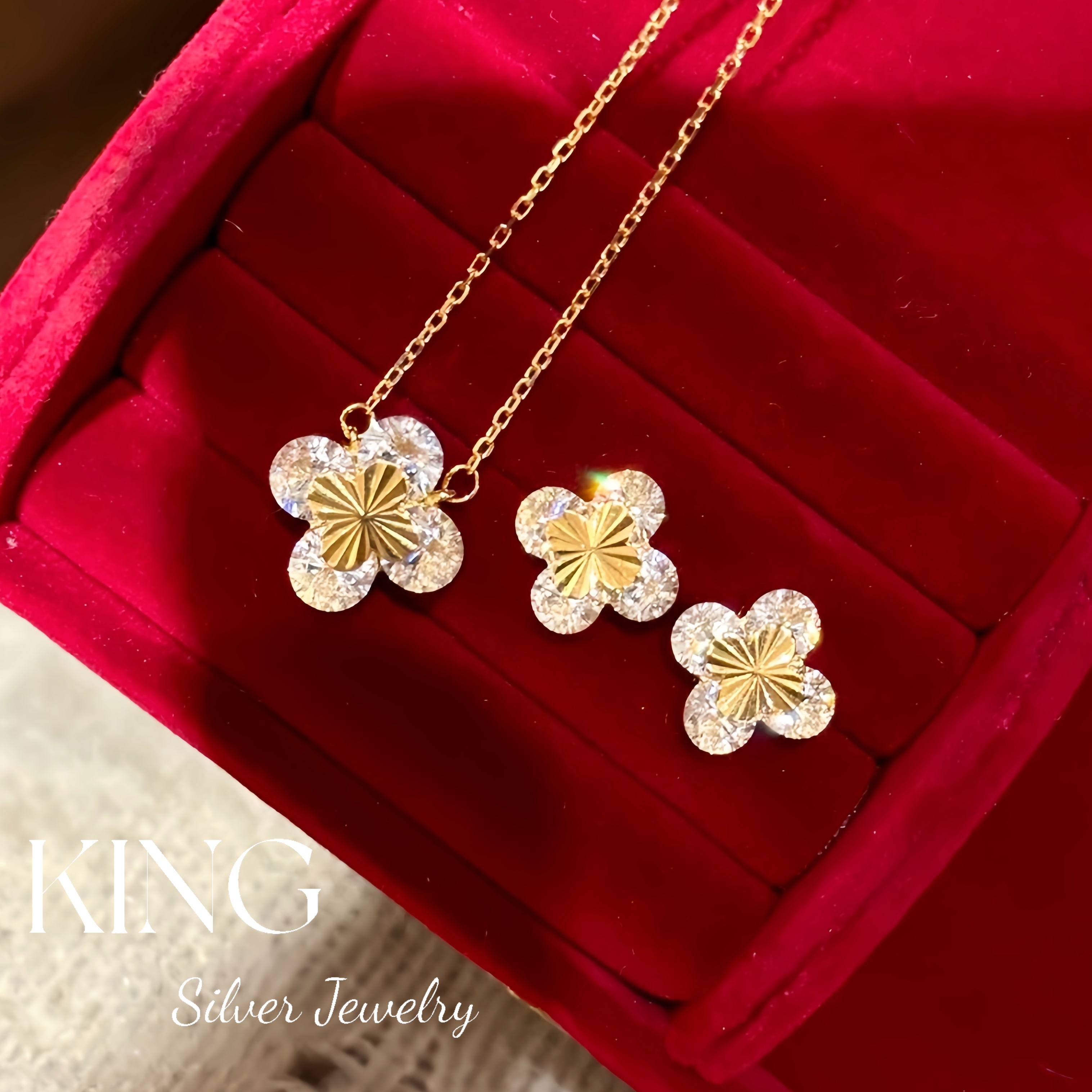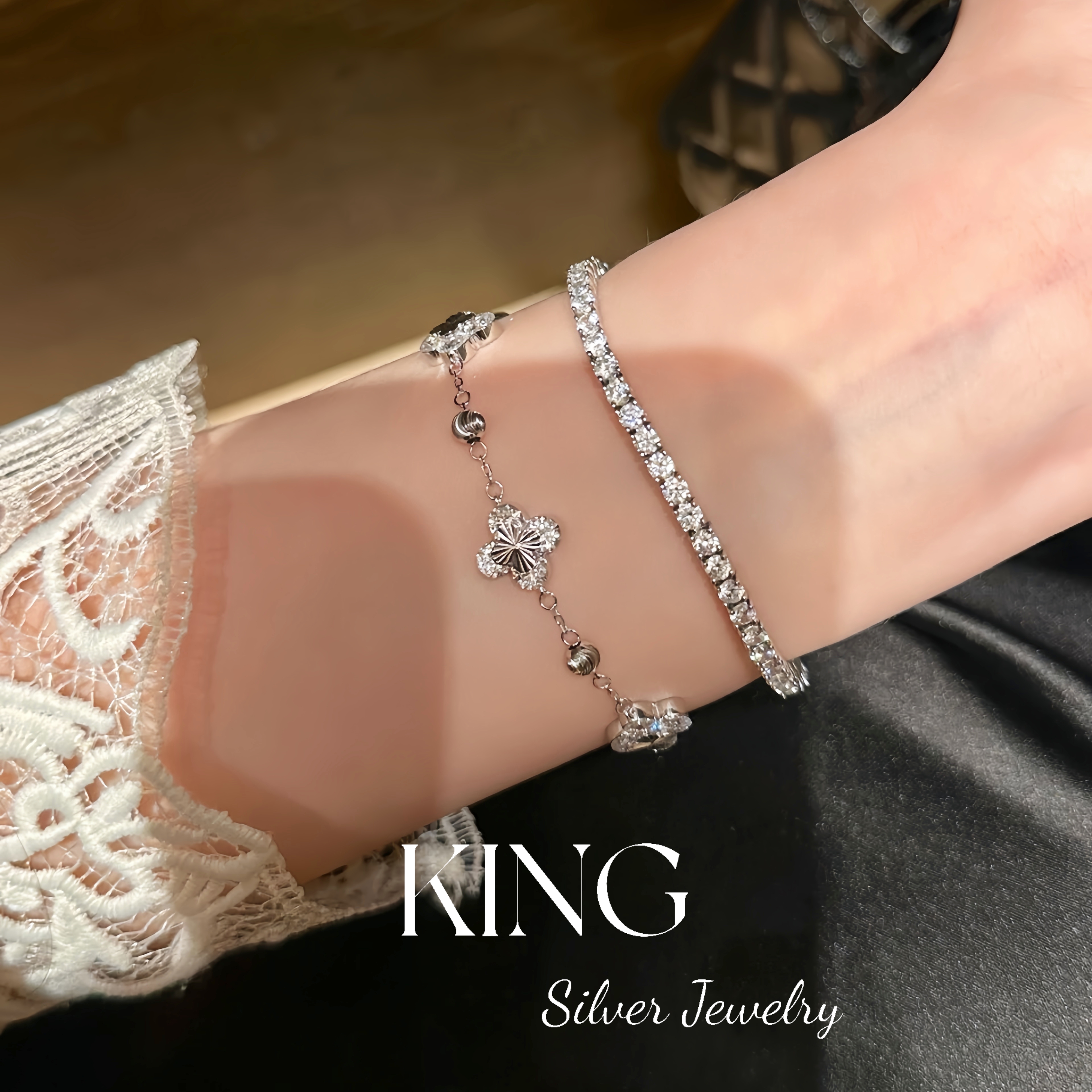 Four-leaf Zhiqiu | king Silver Jewelry S925 Silver Gold-plated Laser Four-leaf Flower CNC Female Fashion Sterling Silver Bracelet