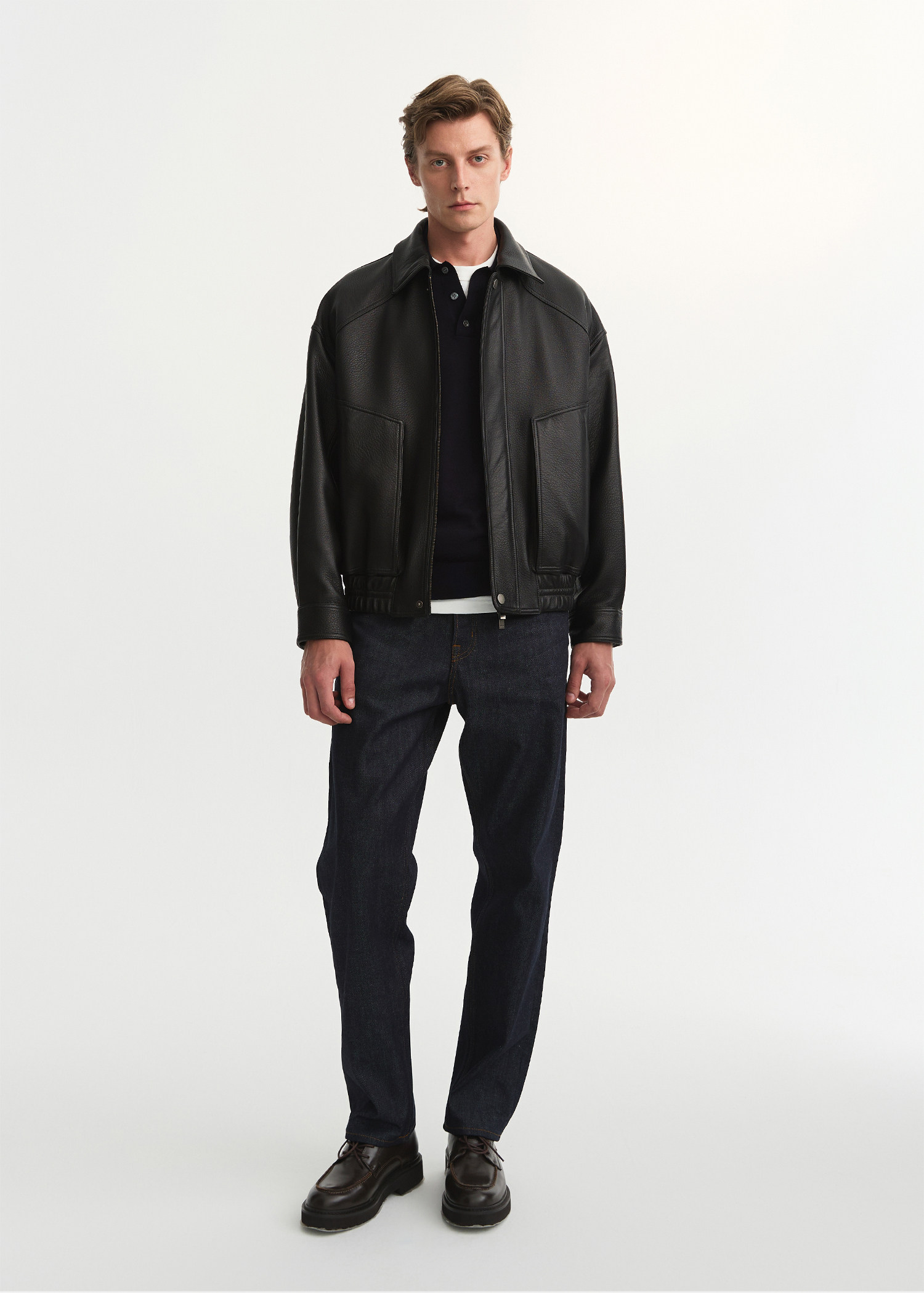 Andrea Moore/Andre Moore Men's Short Sheepskin Leather Jacket Genuine Leather Casual Biker Jacket