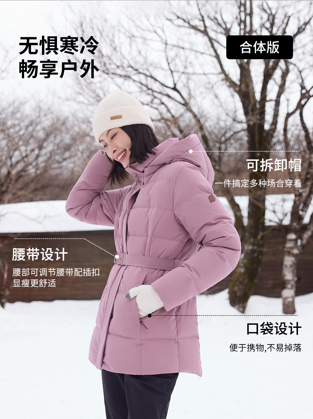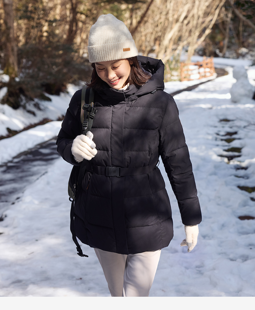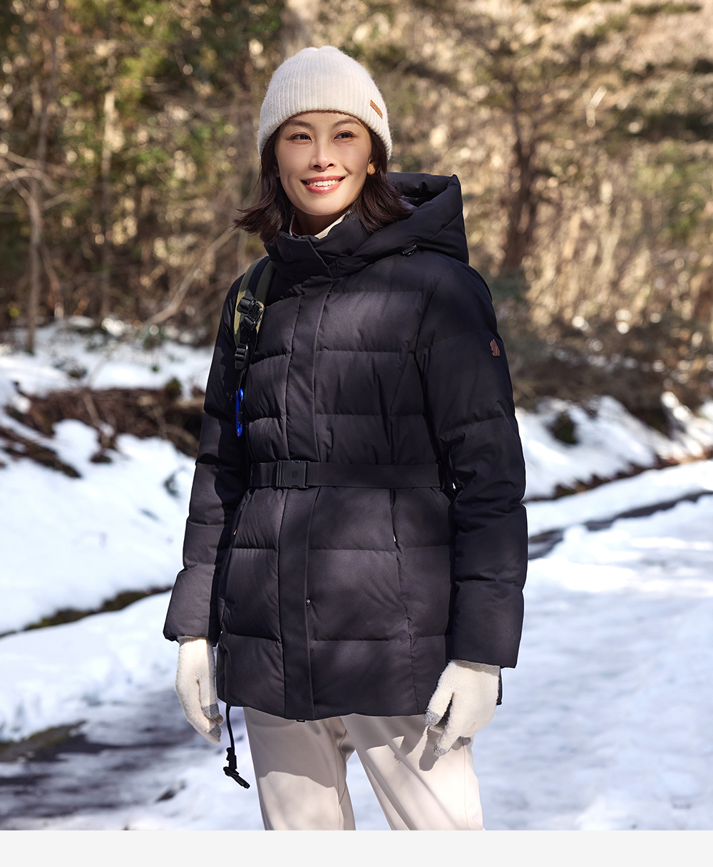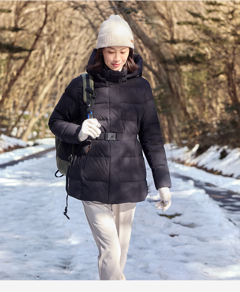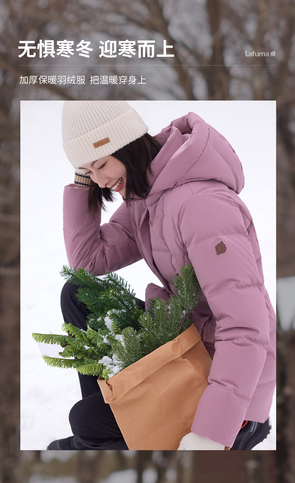 Lafuma Outdoor Winter Goose down Jacket for Women with Elastic Waist, Windproof, Water-Repellent and Warm Coat Top