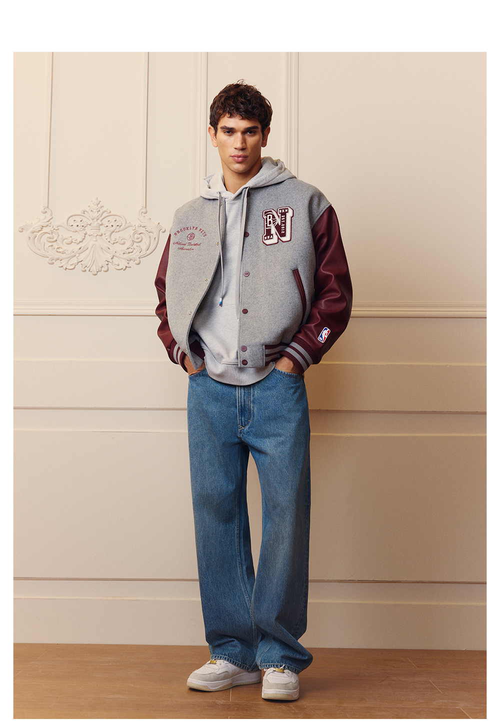 Jack Jones Outlets NBA Joint Men's woolen Coat Winter New arrival Embroider Baseball Collar Loose Outwear