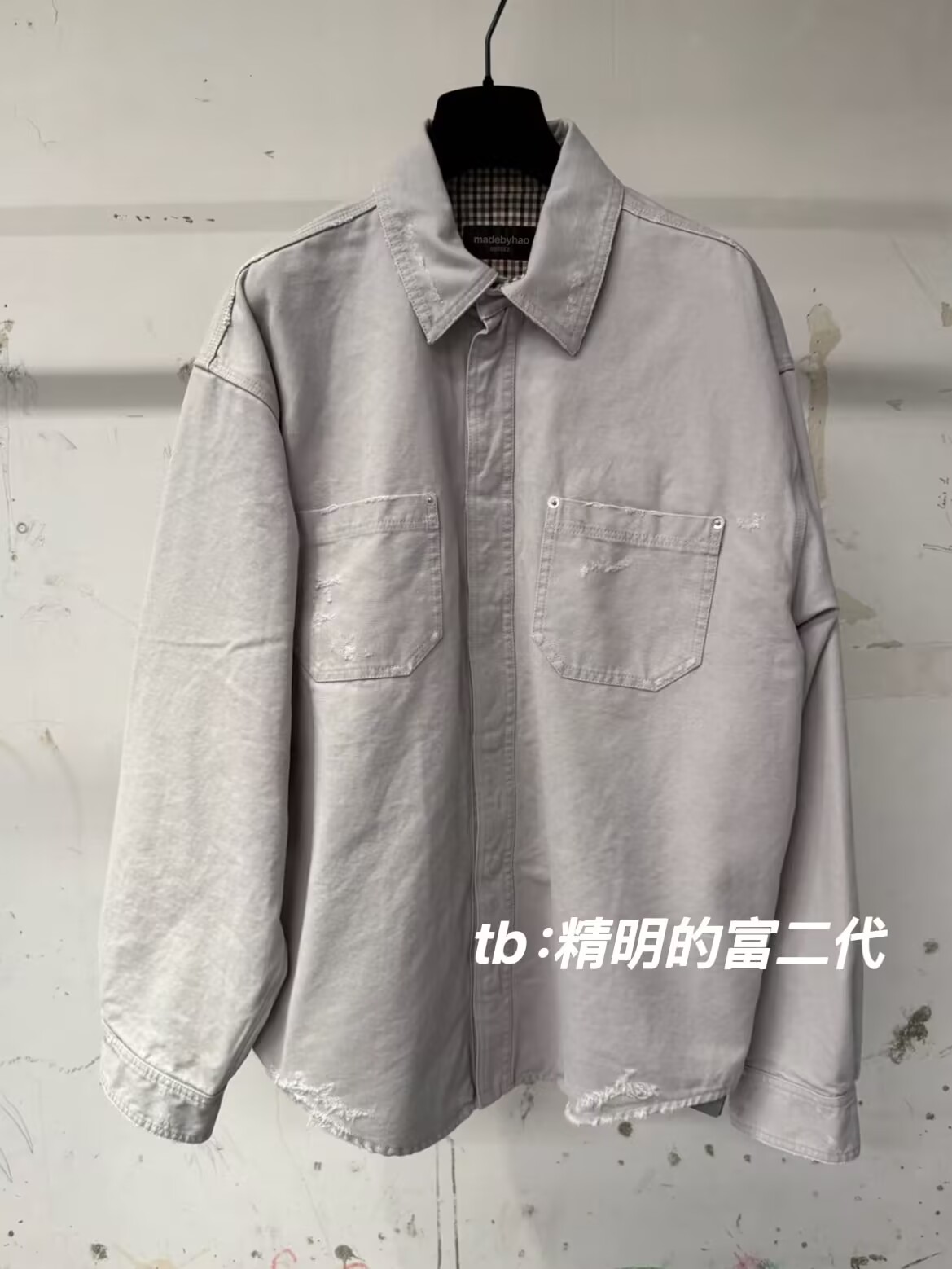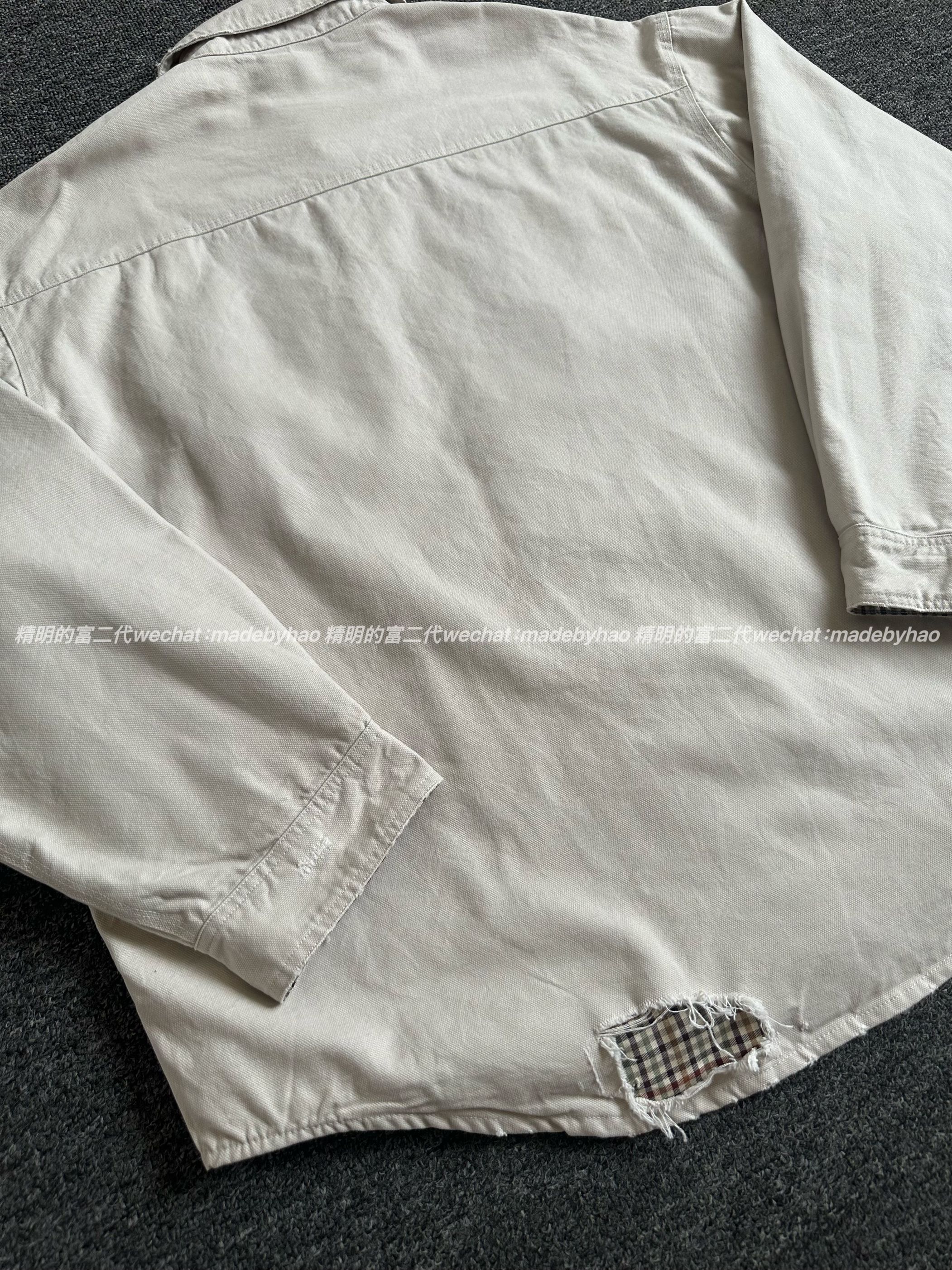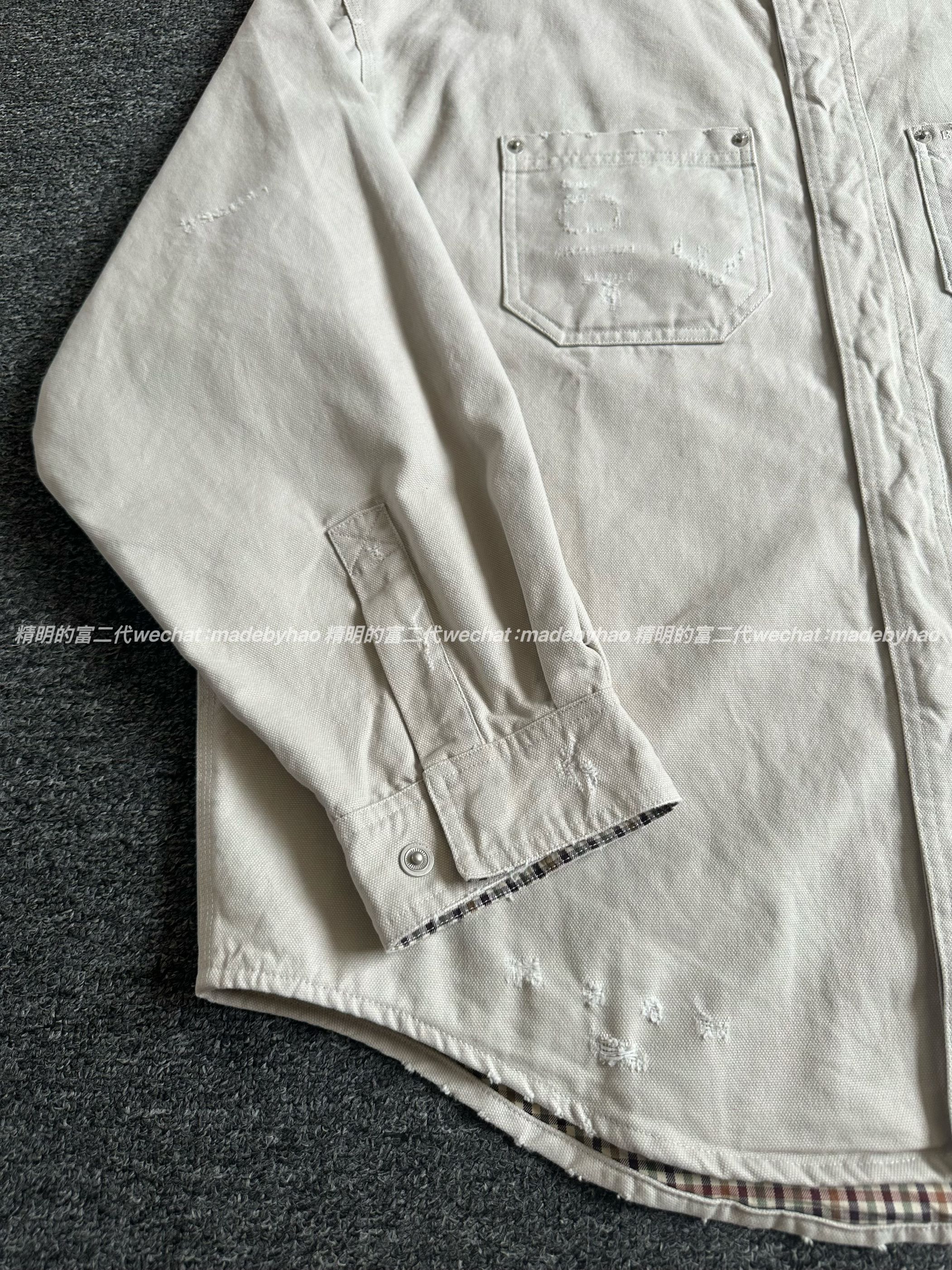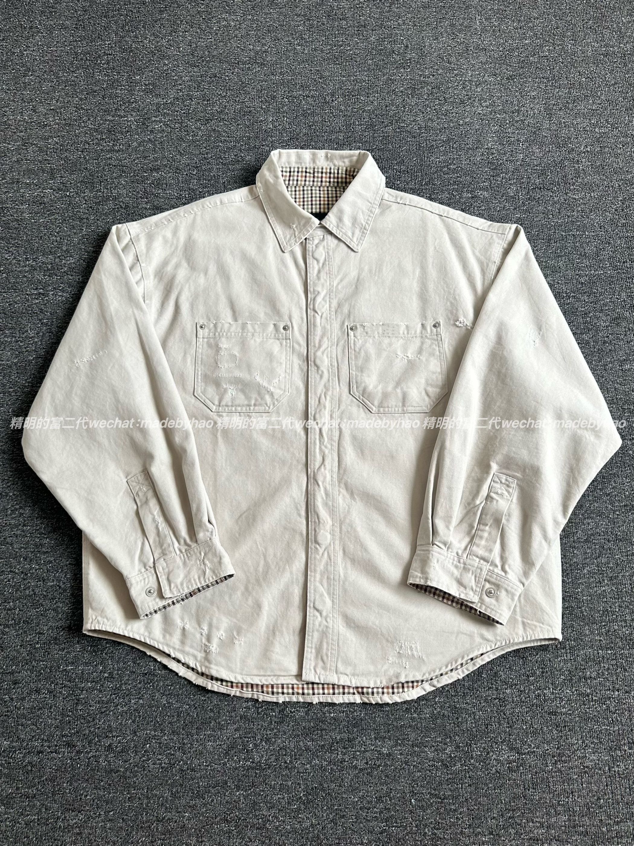 【Ceiling Top】25Fw Retro Canvas Distressed Plaid Patchwork Shirt Jacket Unisex