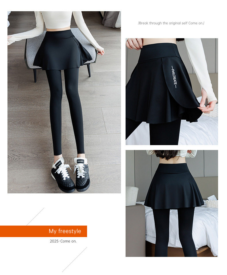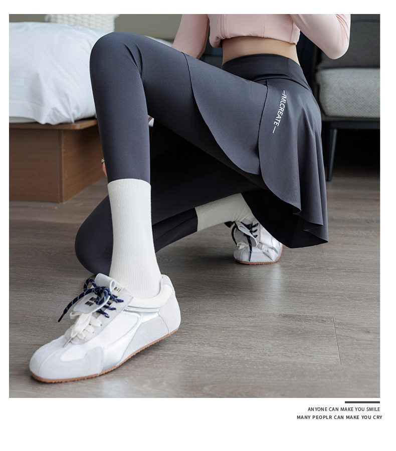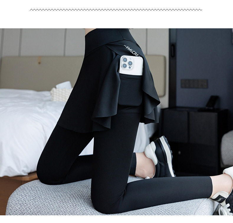 Pocket Shark Skirt Pants Can Be Worn Outside 2025 New Running Pants Fake Two-Piece Sports Body Shaping Pants Leggings