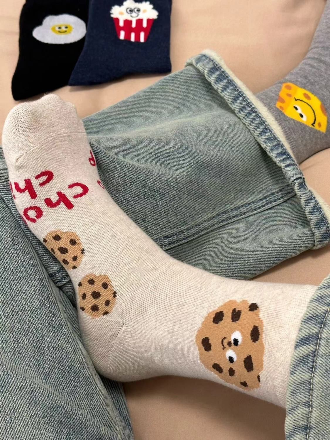 New Fashionable Versatile Women's Socks Cute Donut Pizza Cartoon Girl Socks Colorful Casual Letter Socks for Women