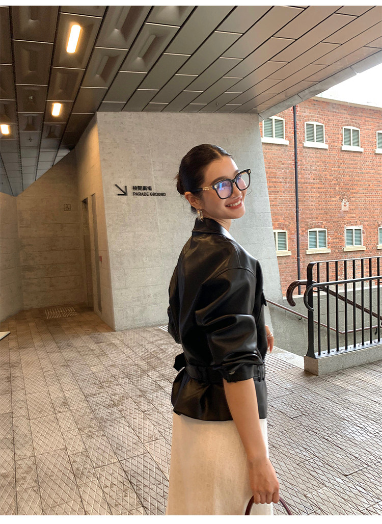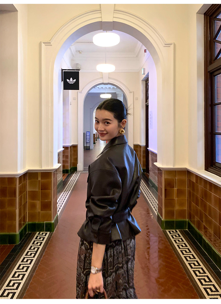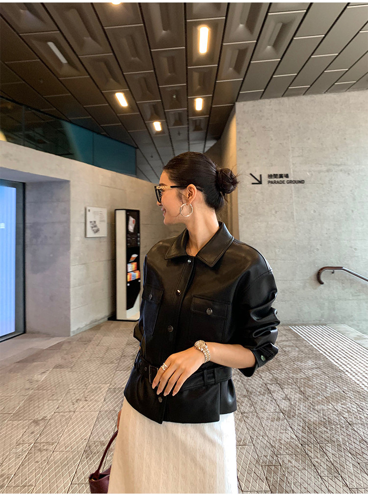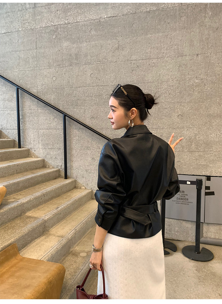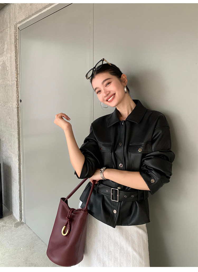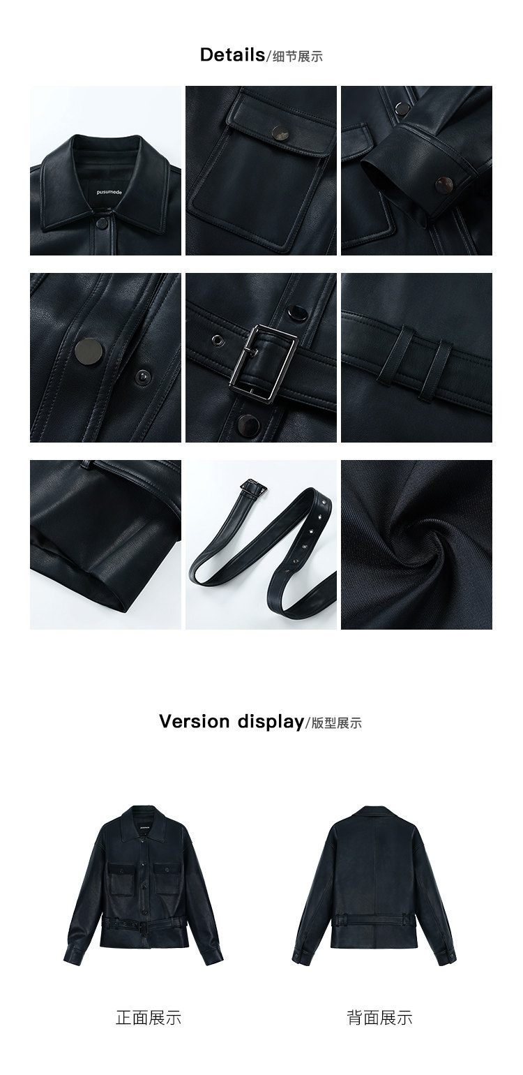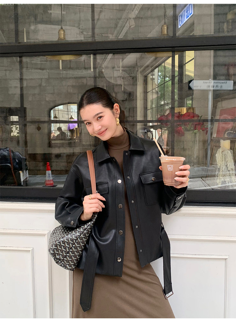 Pusumede Cool and Stylish Black Leather Jacket for Women with Detachable Belt Pu Leather Short Jacket