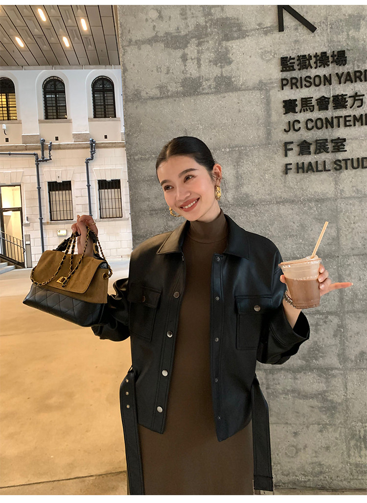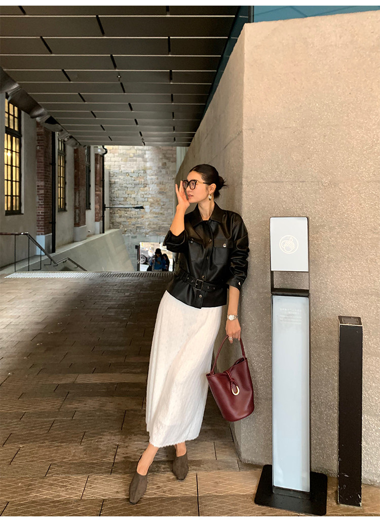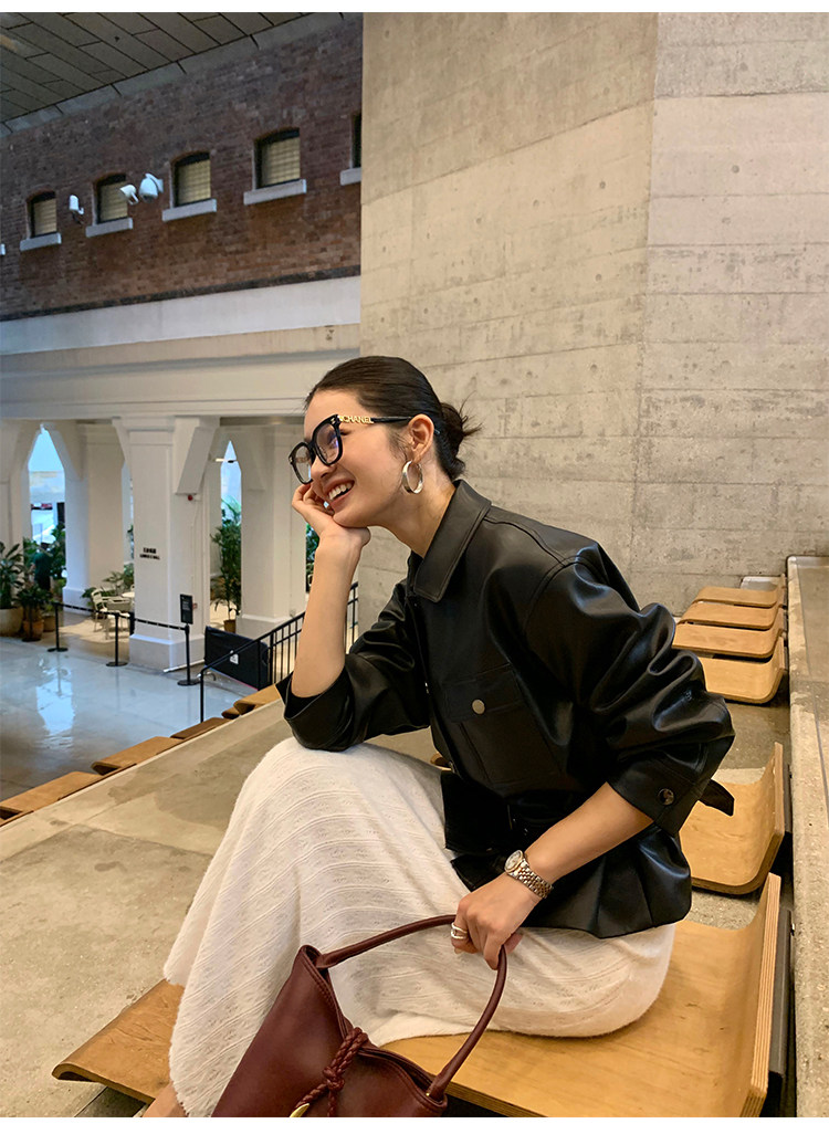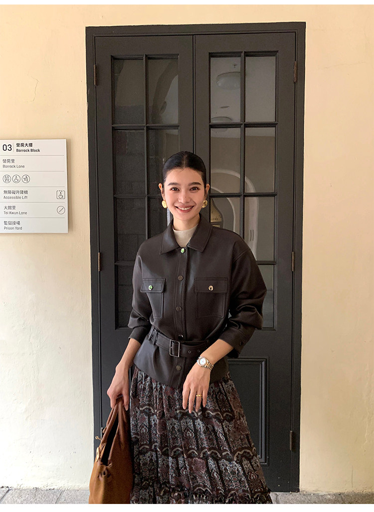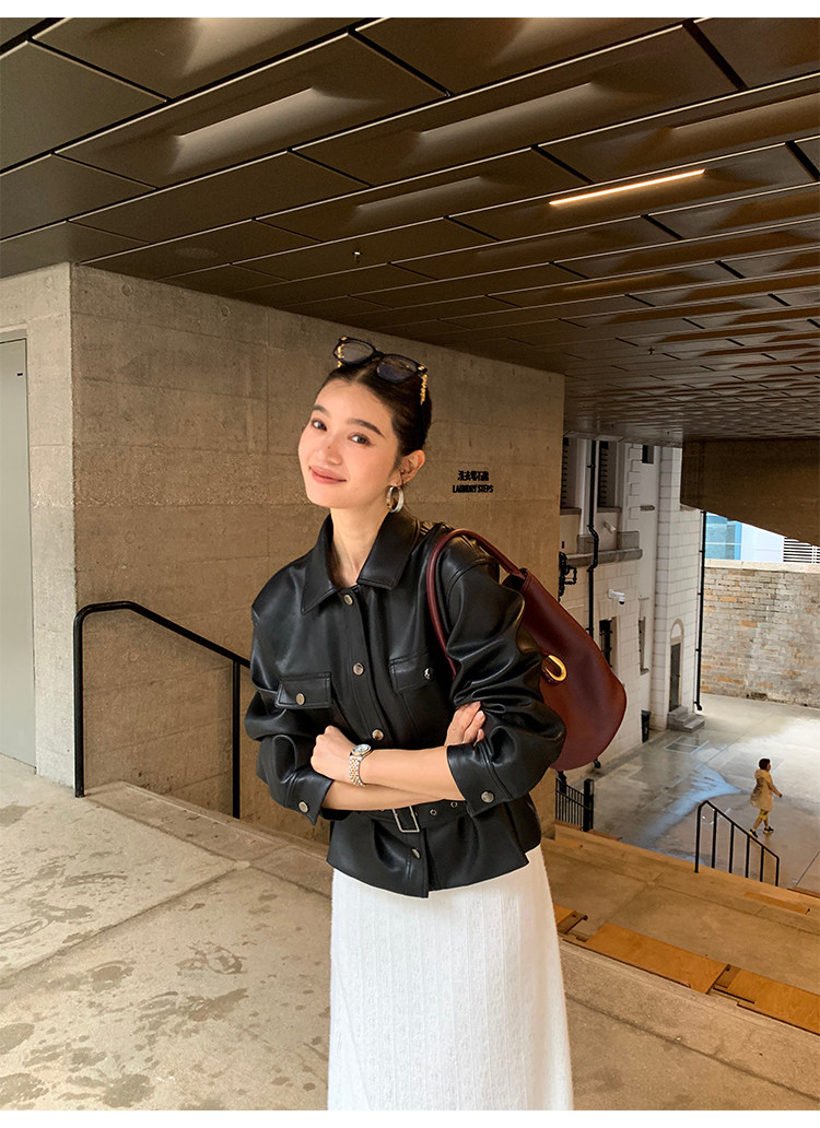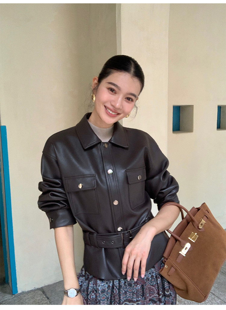 Pusumede Cool and Stylish Black Leather Jacket for Women with Detachable Belt Pu Leather Short Jacket